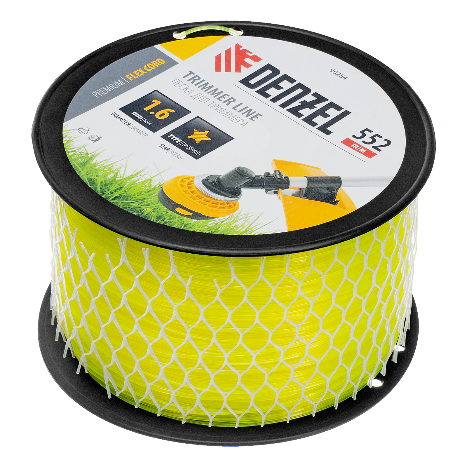 Леска для триммера Denzel FLEX CORD 96284 с сечением «звезда», диаметром 1,6 мм и длиной 552 м, на DIN-катушке, предназначена для скашивания газонной травы. Эффективна даже на замусоренной территории. Заправляется в катушку электрических триммеров мощностью от 0,5 до 1,2 кВт.