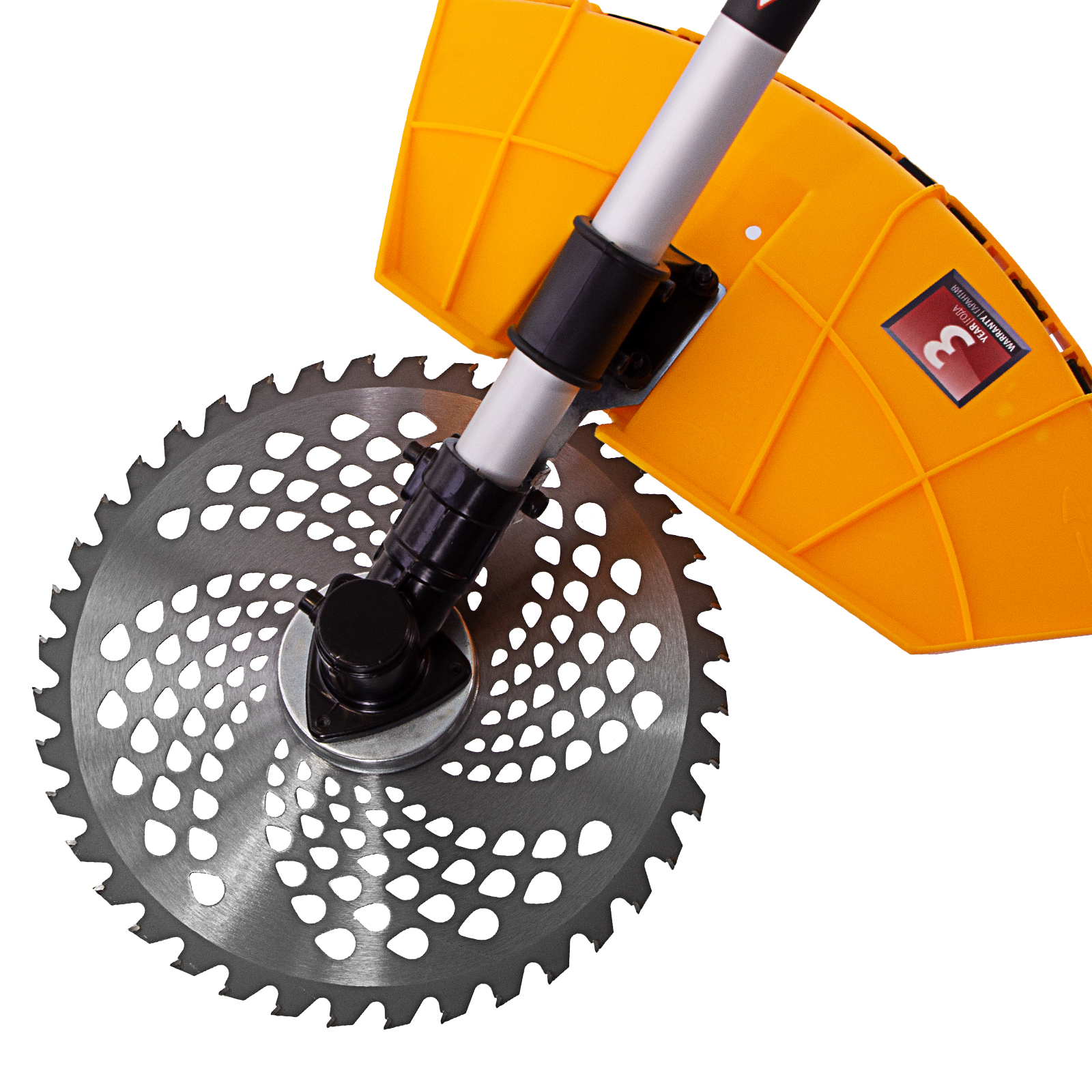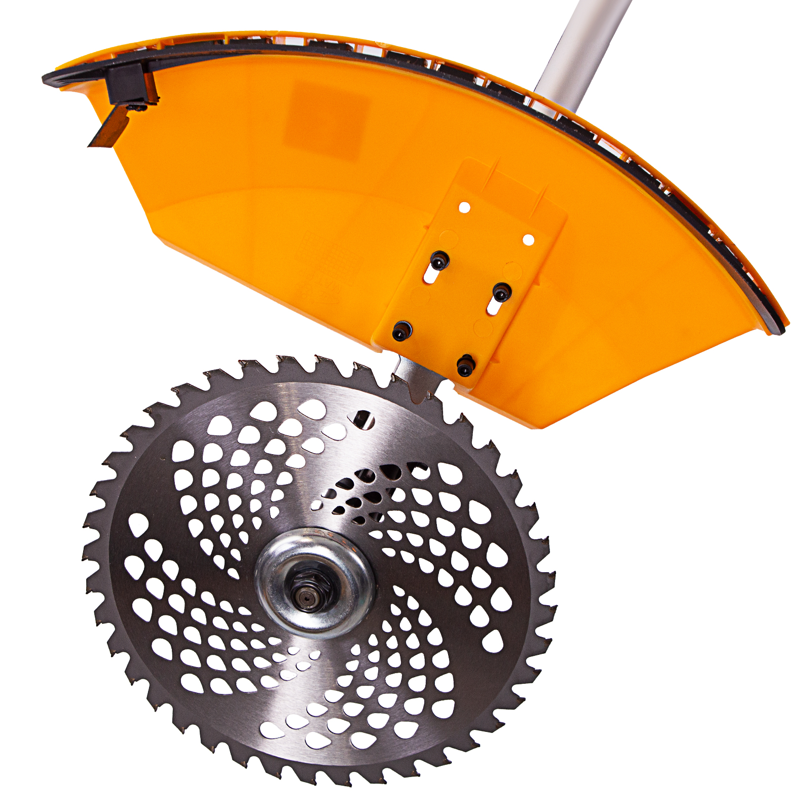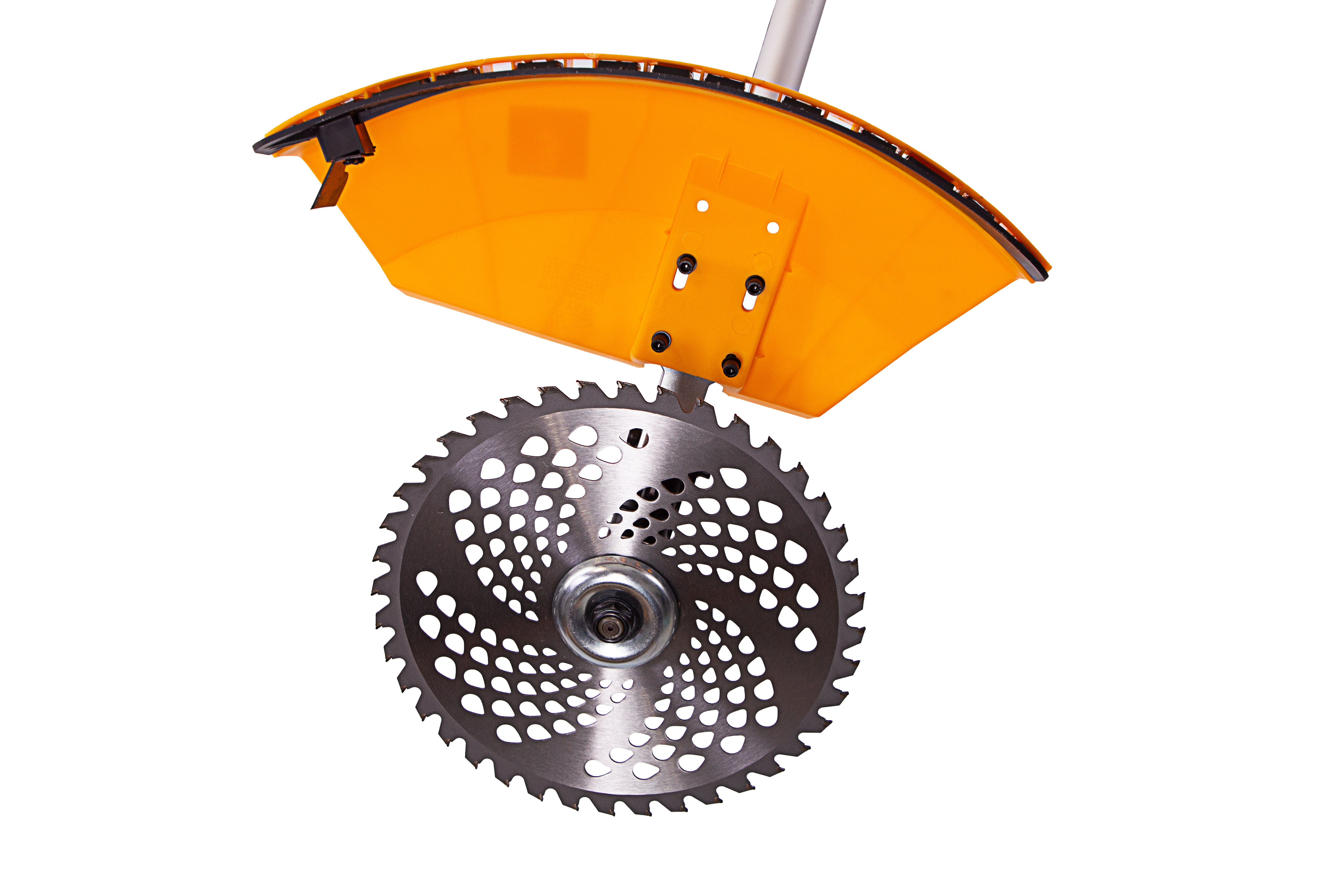 - Безопасность — прочный пластиковый кожух защищает пользователя от вылетающей травы и мелких частиц.