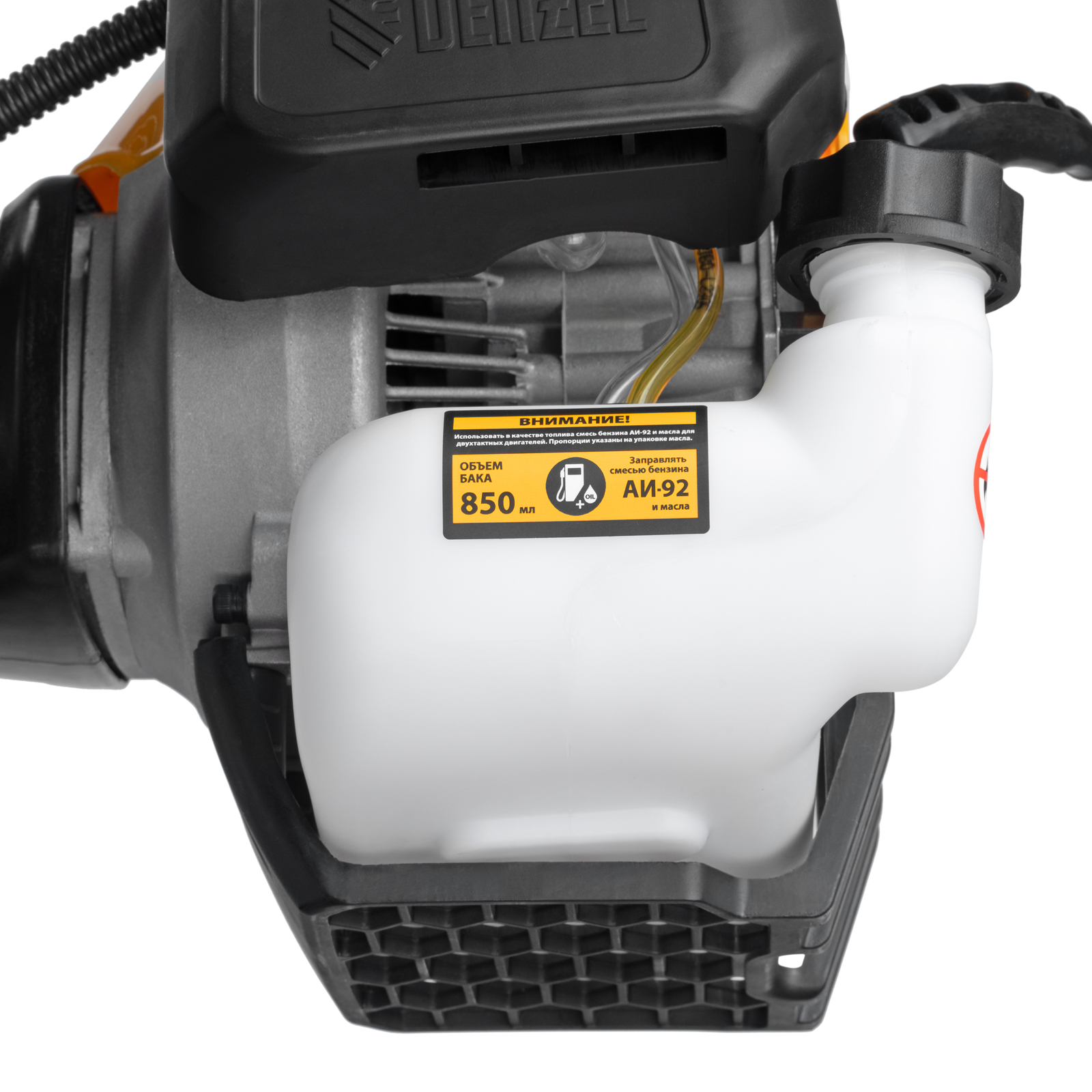 - Экономичность — расход топлива составляет 1,2 л/ч, поэтому бензотриммер способен проработать при полной нагрузке 40 минут без дозаправки.