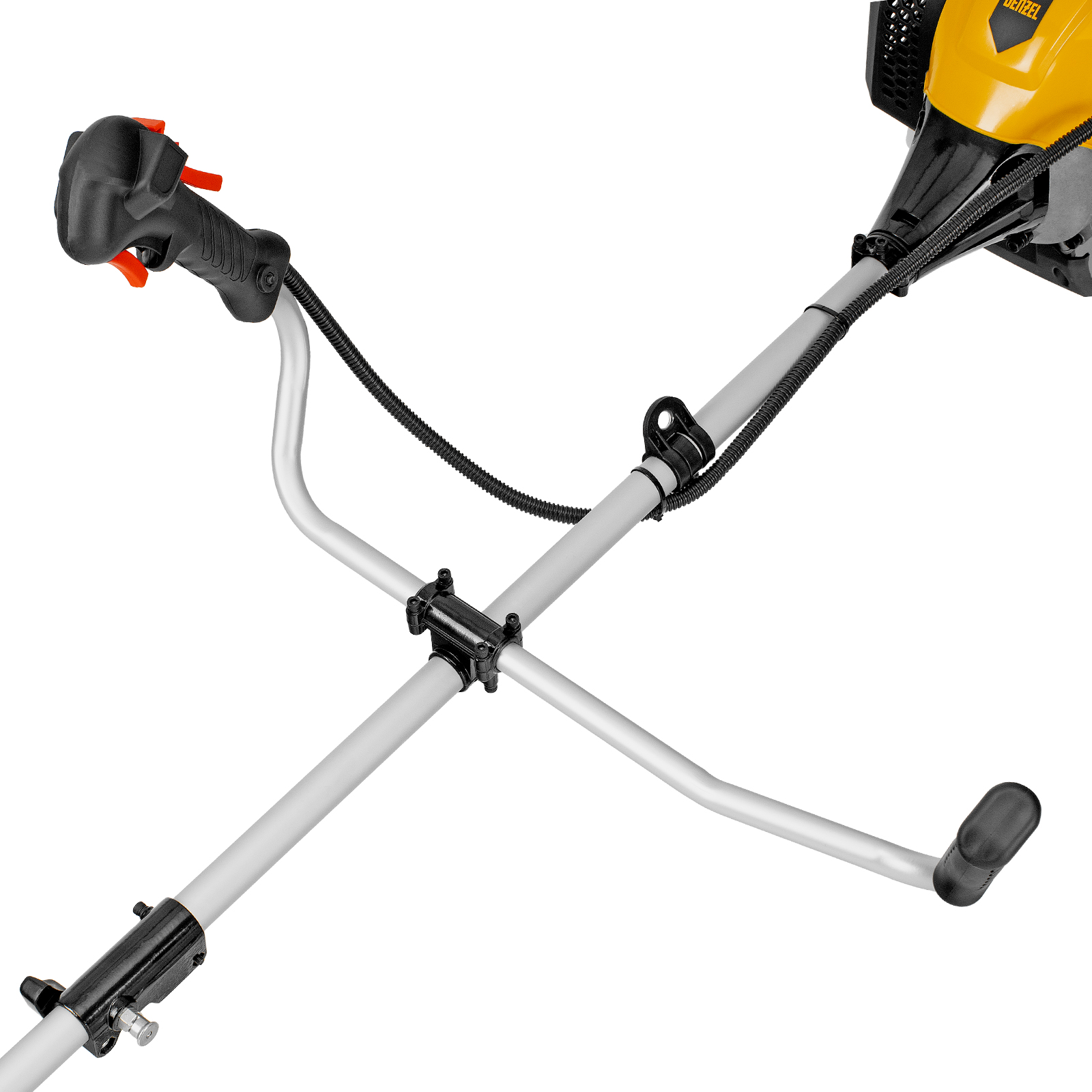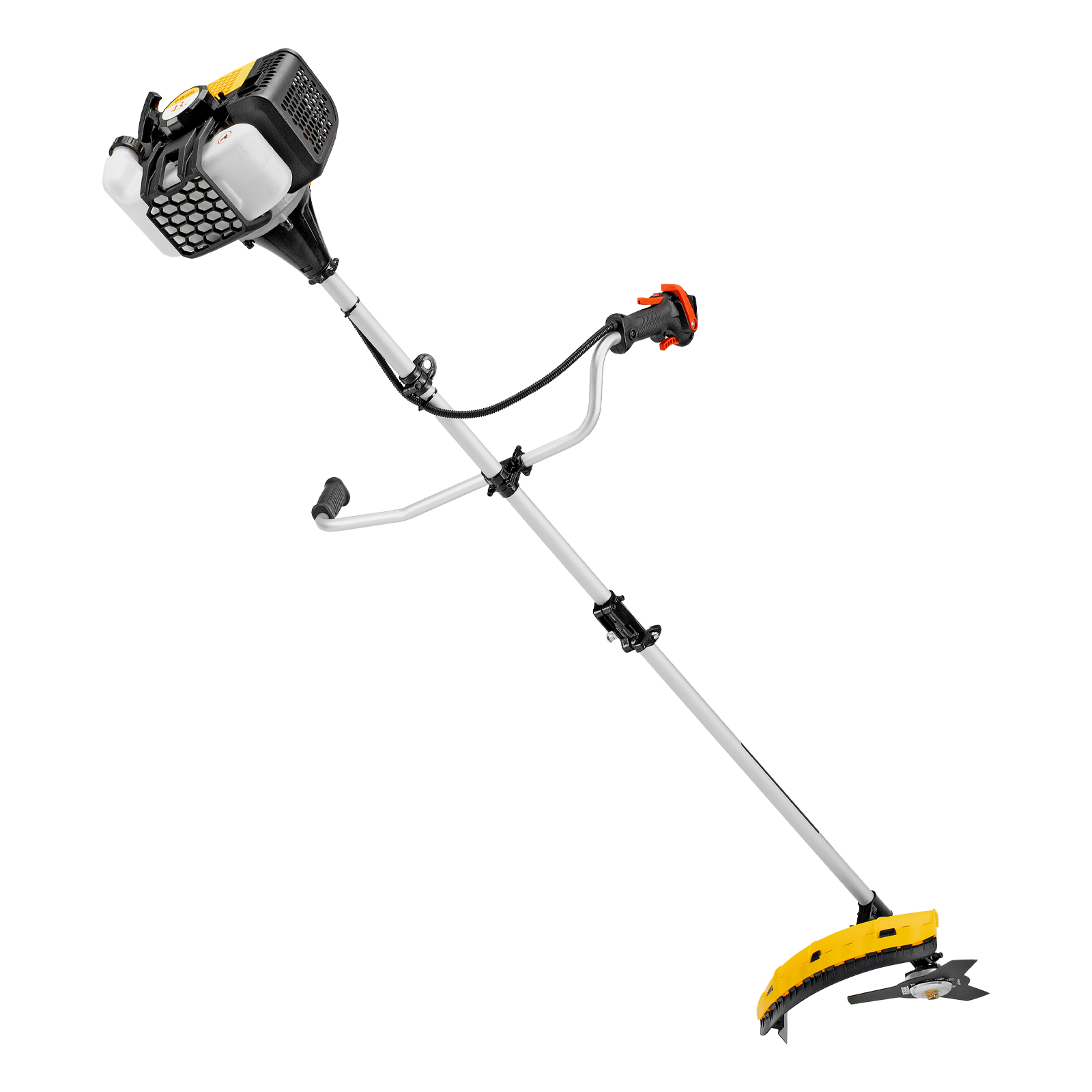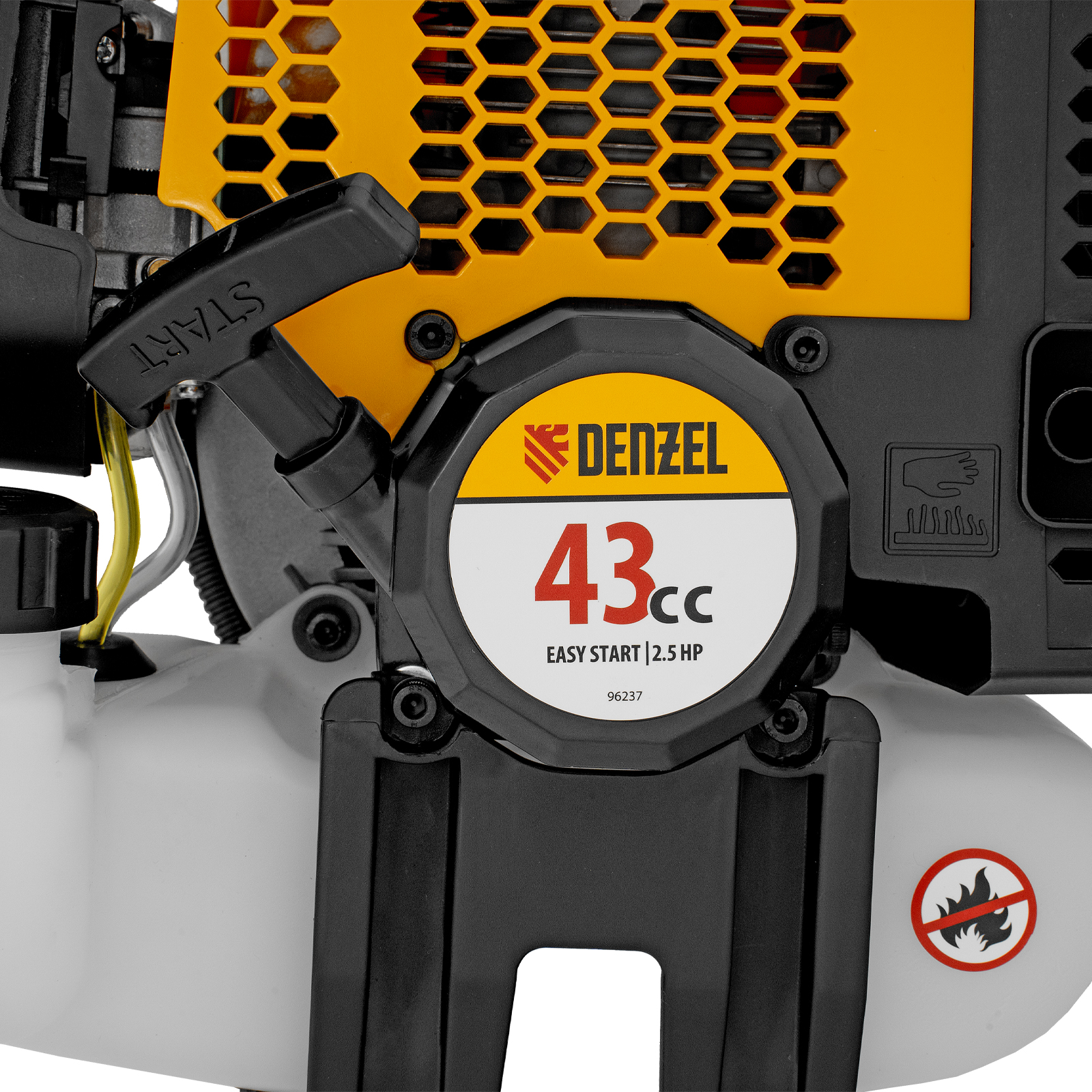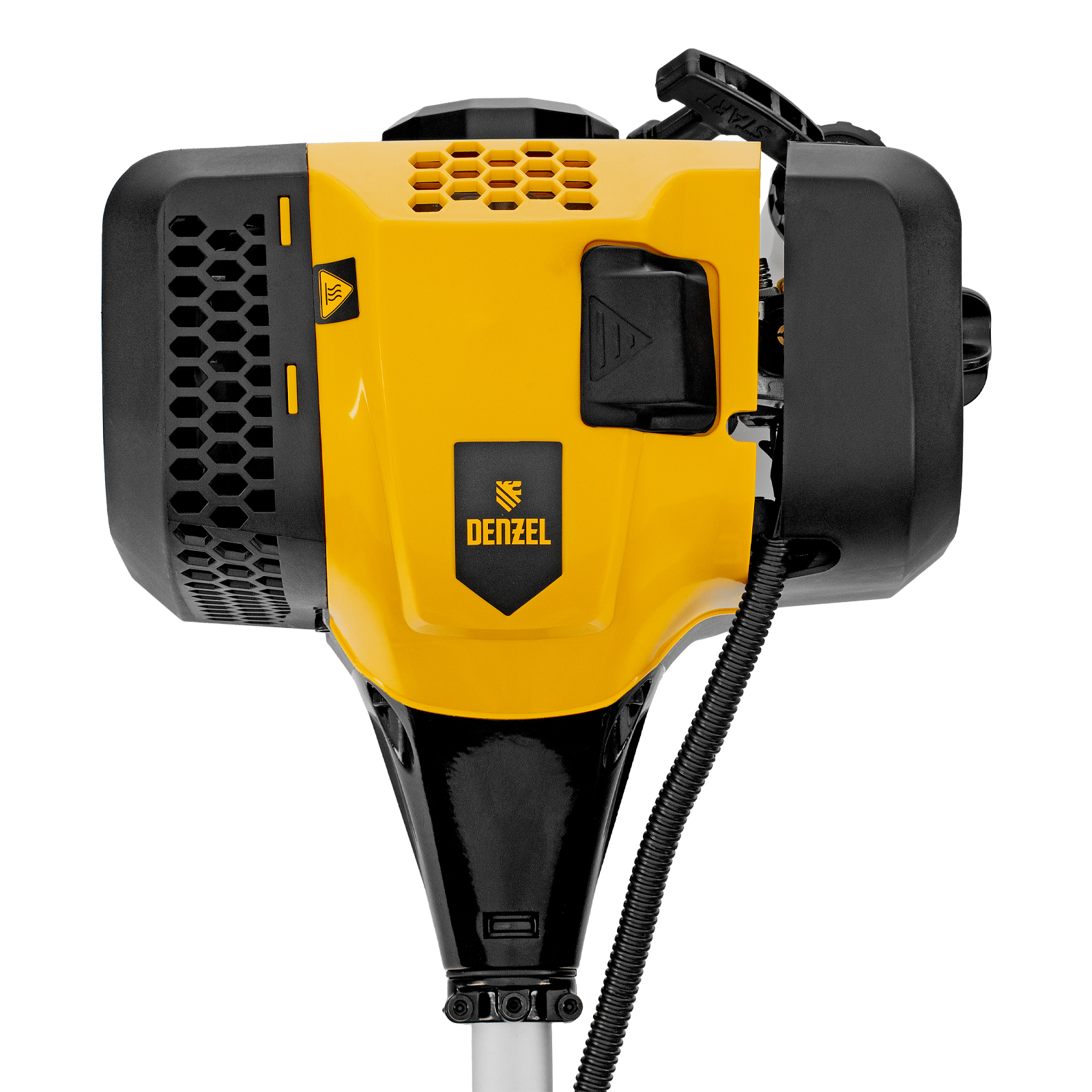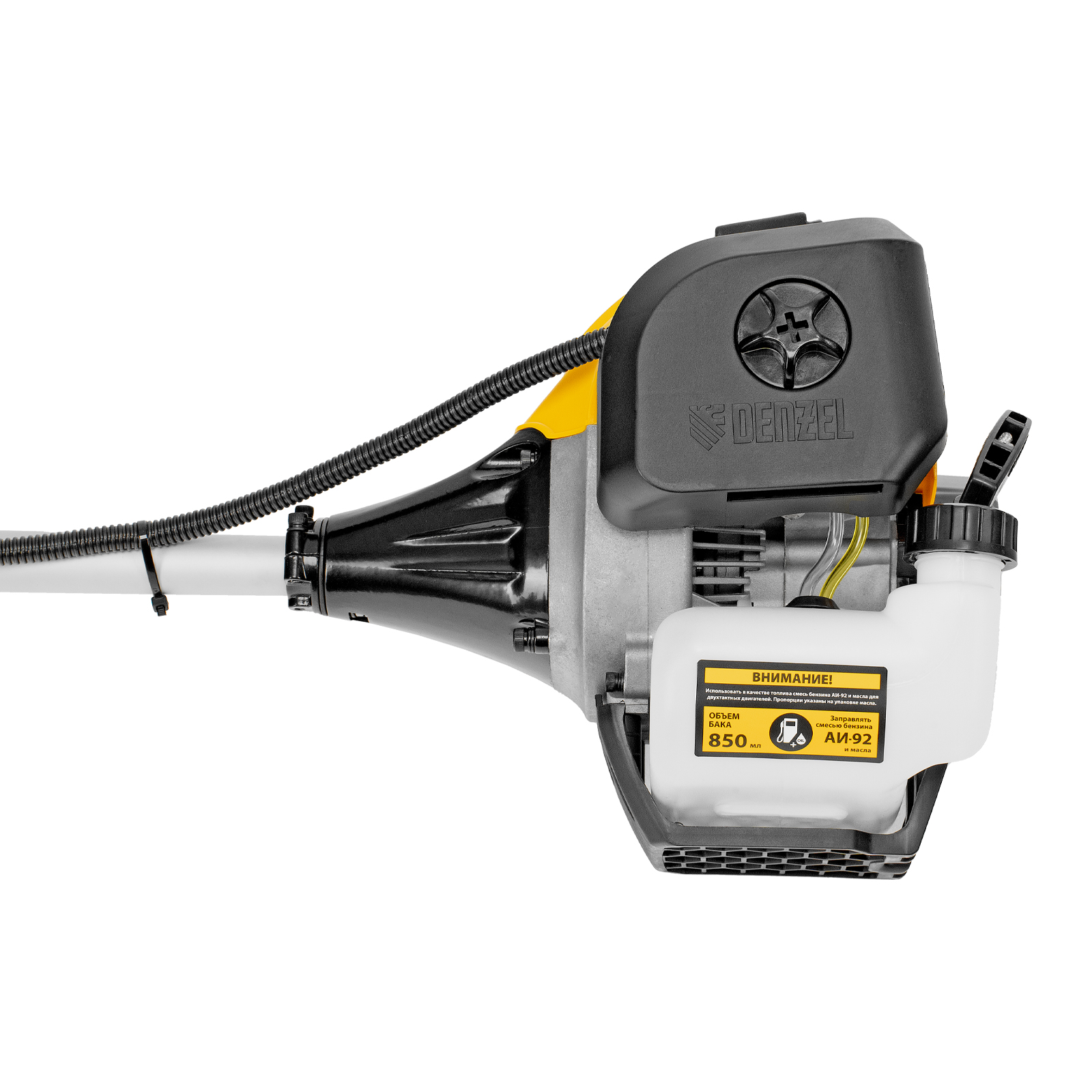 Бензиновый триммер Denzel DGT 430S 96237 с двигателем объемом 43 см3, мощностью 2,5 л. с., с разъемной штангой, состоит из 2 частей. Оптимально подходит для ухода за газоном, скашивания травы всех типов, в том числе с жесткими стеблями (полыни, крапивы, лебеды), борьбы с борщевиком, а также срезания кустарника и молодых побегов деревьев с диаметром стволов до 10 мм. Триммером удобно работать в недоступных для колесной газонокосилки мест: вокруг деревьев, около стен и заборов, у кромок дорожек. Экономичный двигатель мощностью 2,5 л.с. отличается высоким ресурсом и долговечностью. Триммер комплектуется 3 оснастками: усиленной полиамидной катушкой, трехлопастным ножом и пильным диском.
