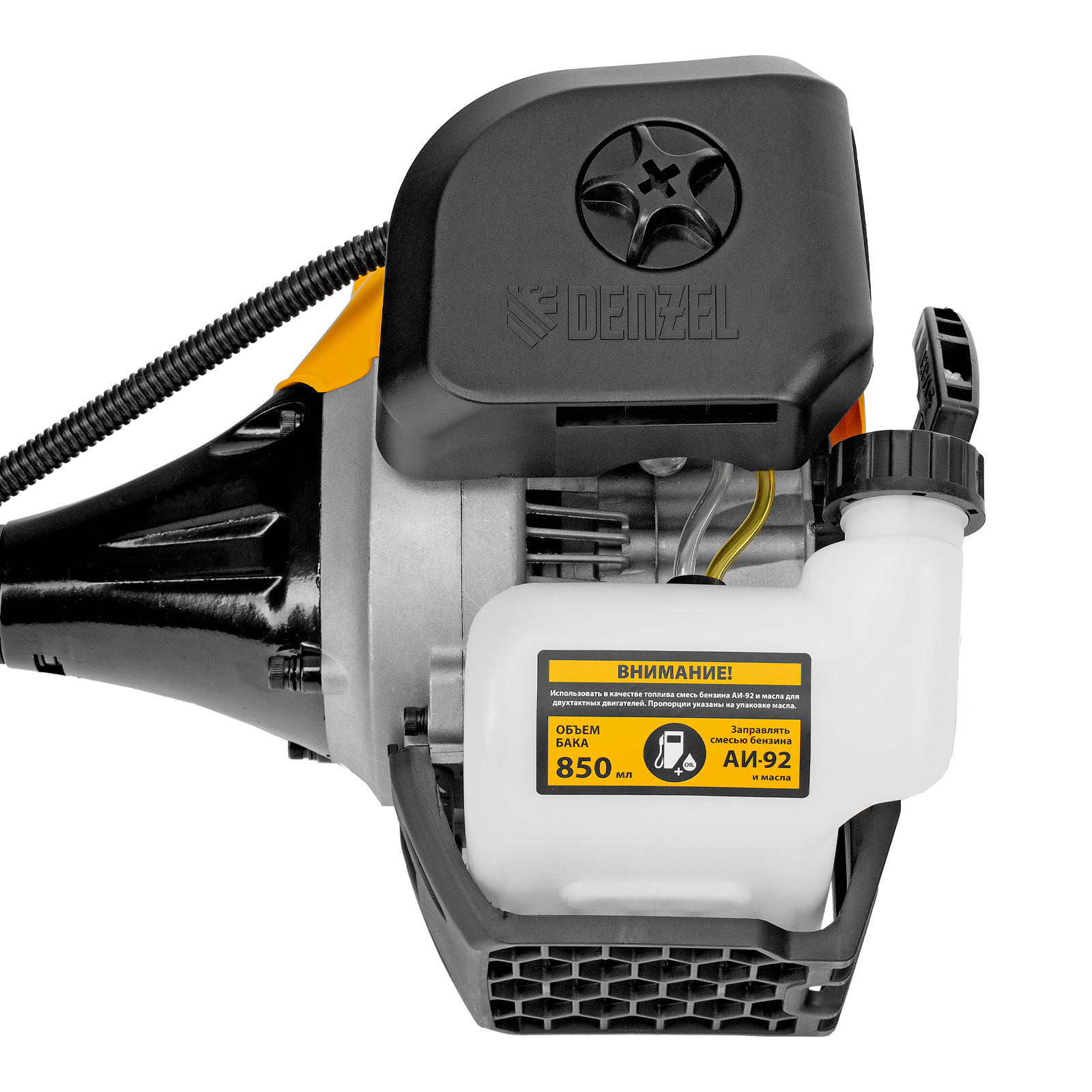 Бензиновый триммер Denzel DGT-520 96238 с неразъемной штангой состоит из 2 частей и оснащен мощным двигателем объемом 52 см3 и мощностью 3 л. с., при этом отличается легкостью и экономичным расходом топлива. Детали двигателя покрыты хромом, что значительно увеличивает ресурс инструмента. Усиленная катушка из полиамида, трехлопастный нож и пильный диск позволяют легко справляться со скашиванием травы всех типов, в том числе с жесткими древовидными стеблями (полыни, крапивы, лебеды, борщевика), а также срезанием кустарника и молодых побегов деревьев с диаметром стволов до 10 мм. Триммер удобен для работы в недоступных для колесной косилки местах. Хорошая сбалансированность инструмента, современная антивибрационная система, подвесной двухплечевой ремень и удобное управление позволяют работать с комфортом даже продолжительное время.