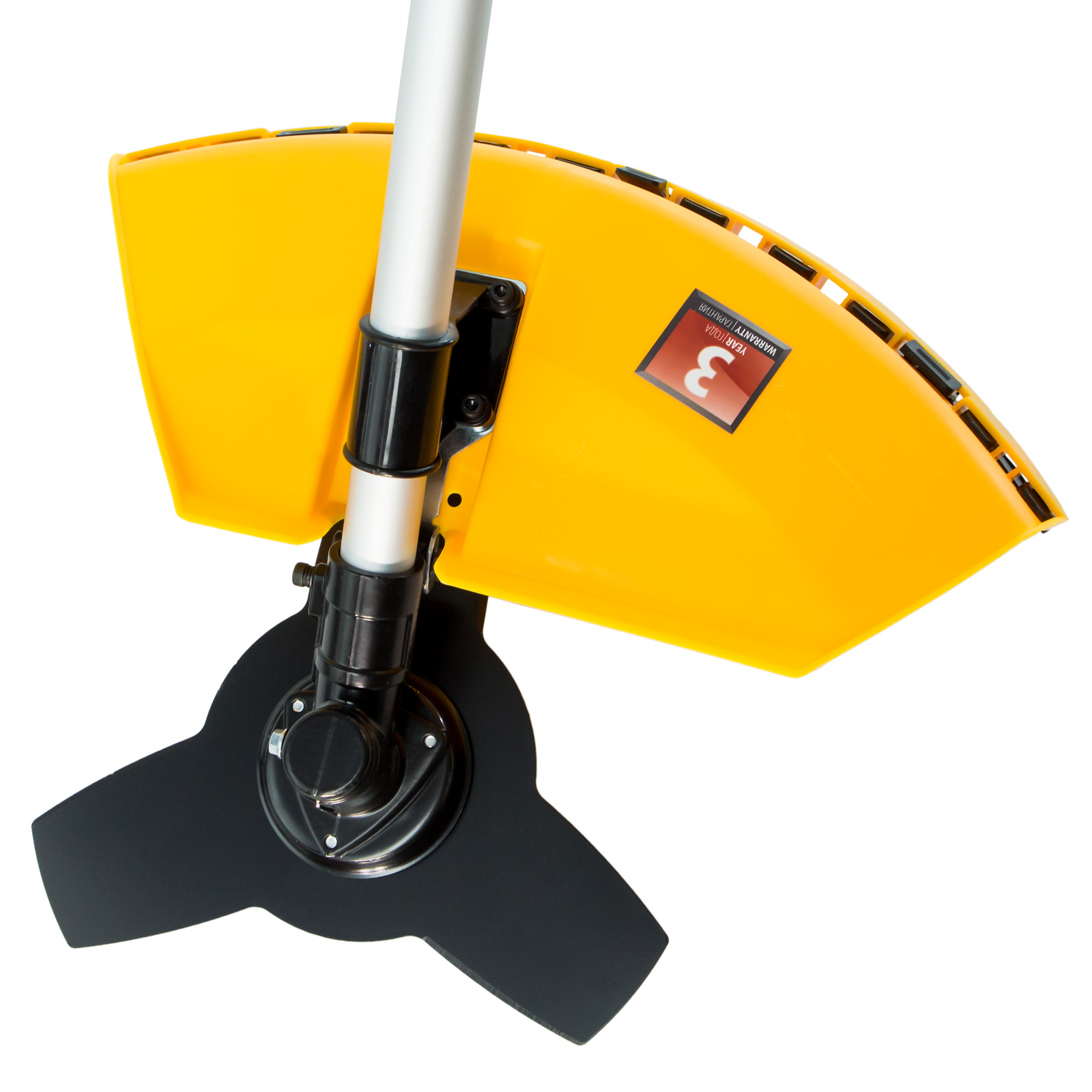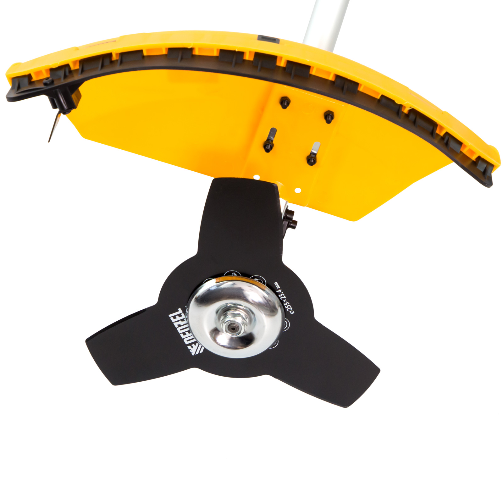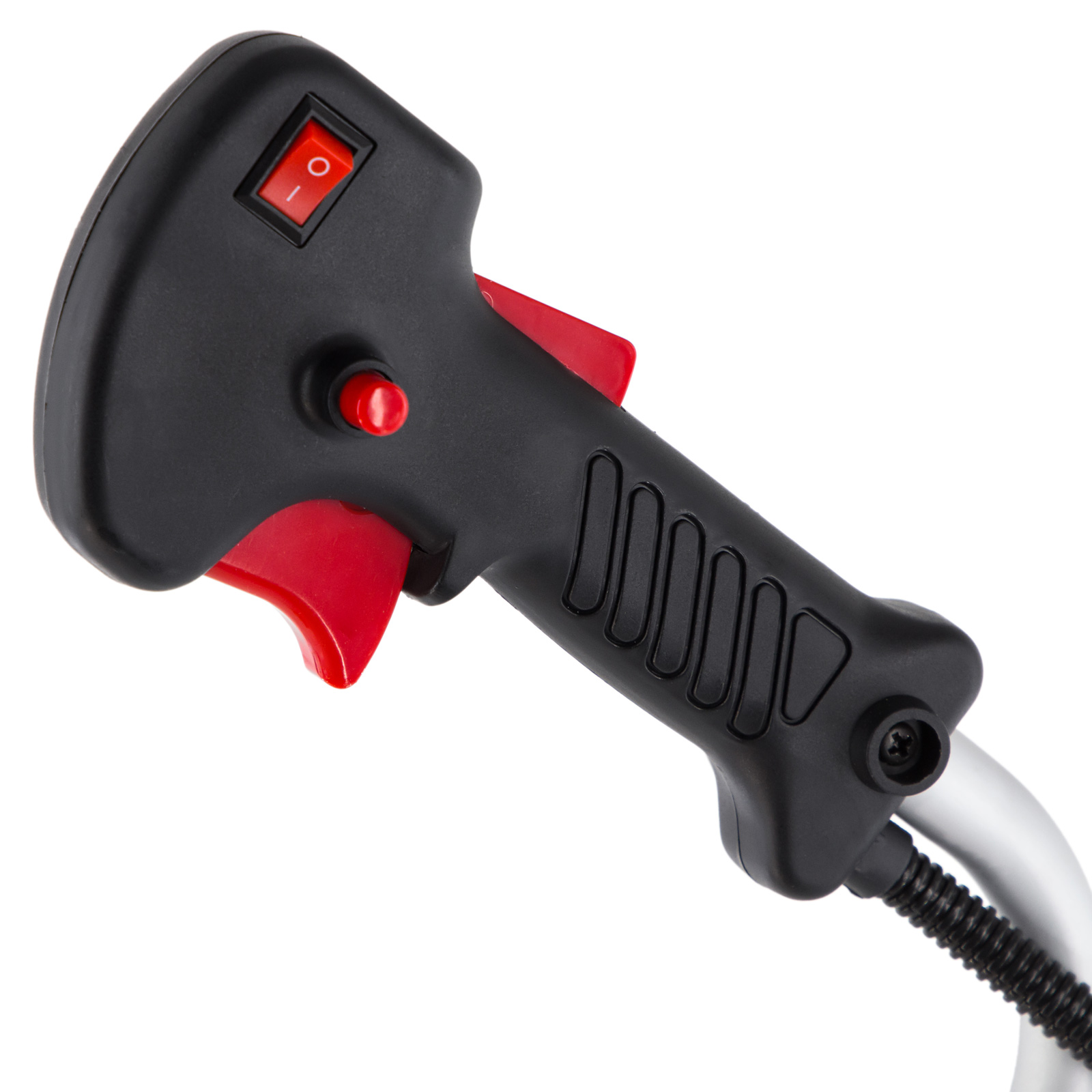 - Автоматическое подравнивание лески — ограничительный нож на кожухе отрезает лишний корд, что позволяет предотвратить перегрузку и перегрев двигателя.