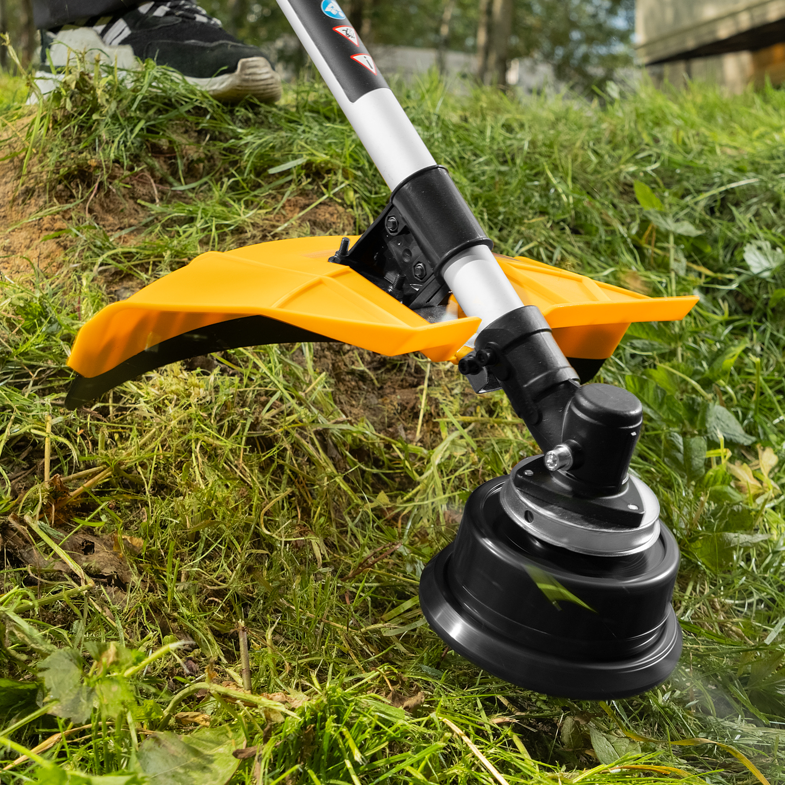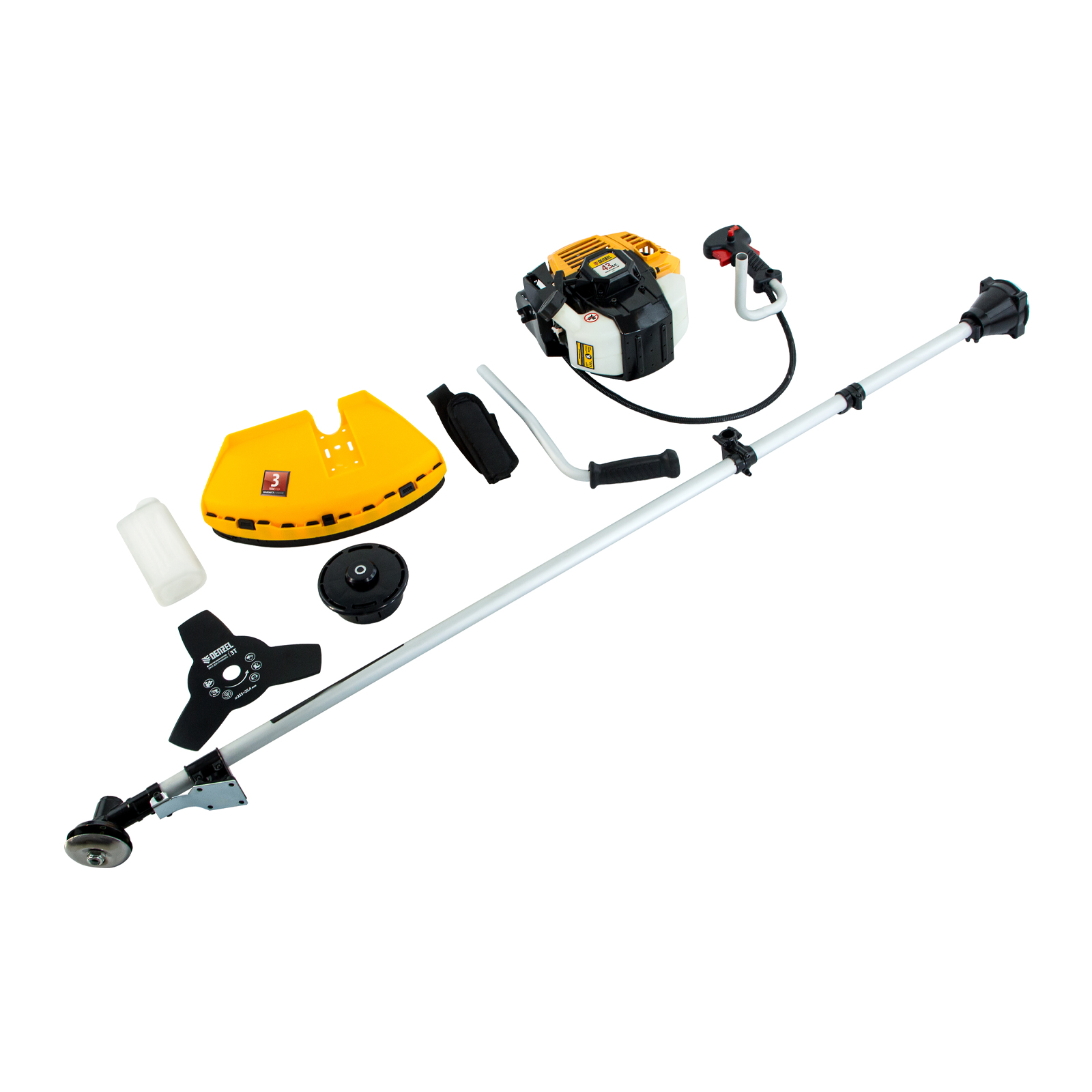 - Легкая установка насадок — бензотриммером удобно обрабатывать участки с разными типами растительности.
