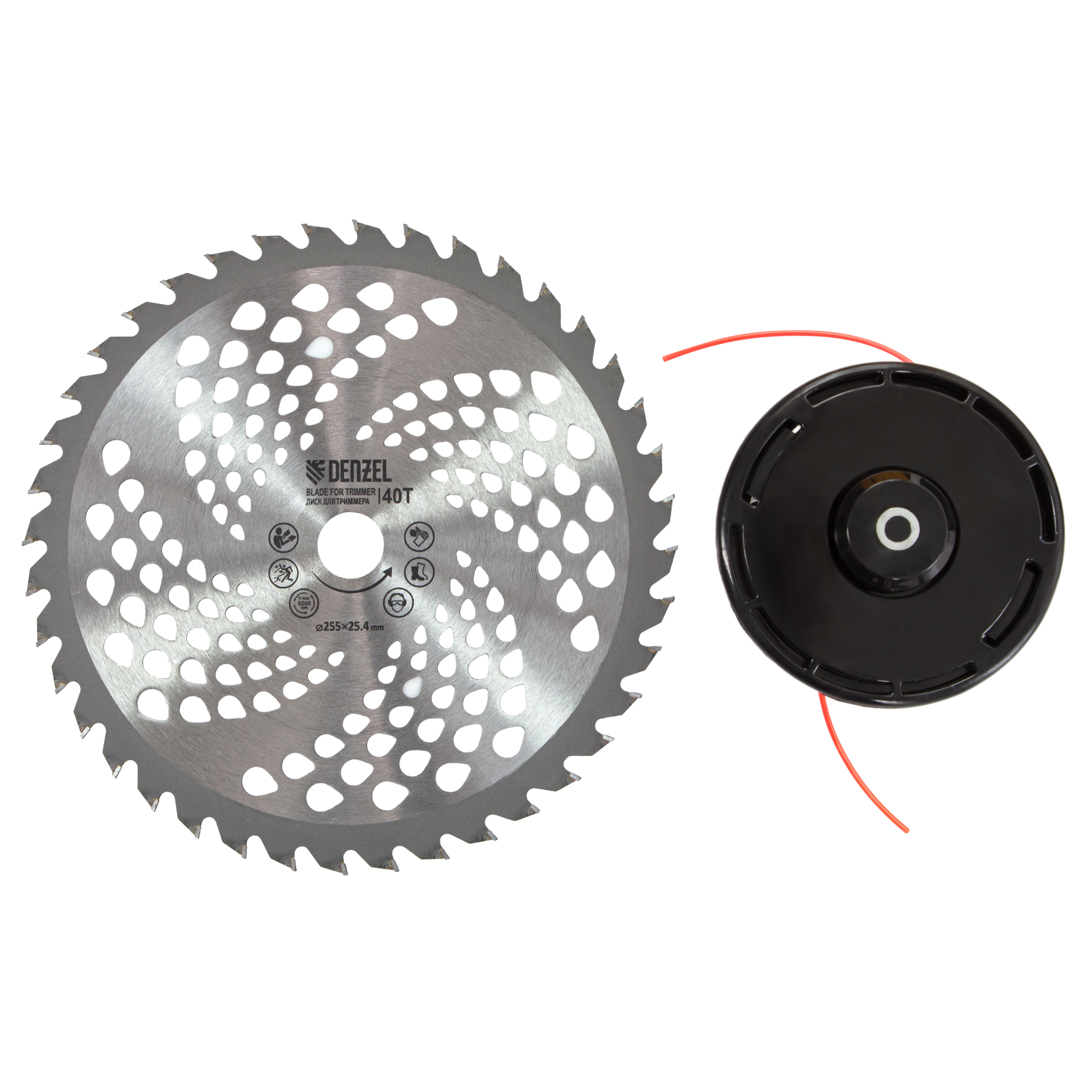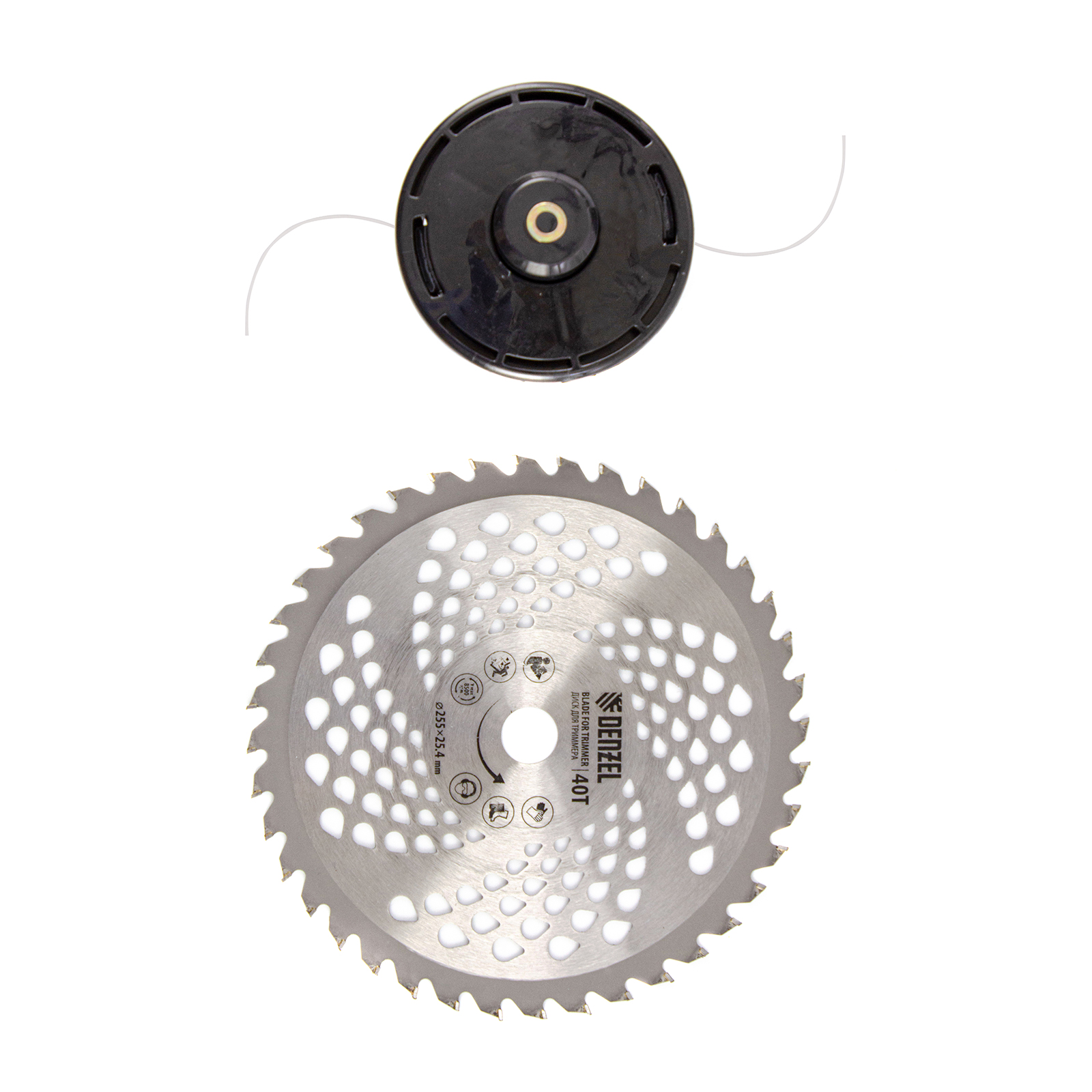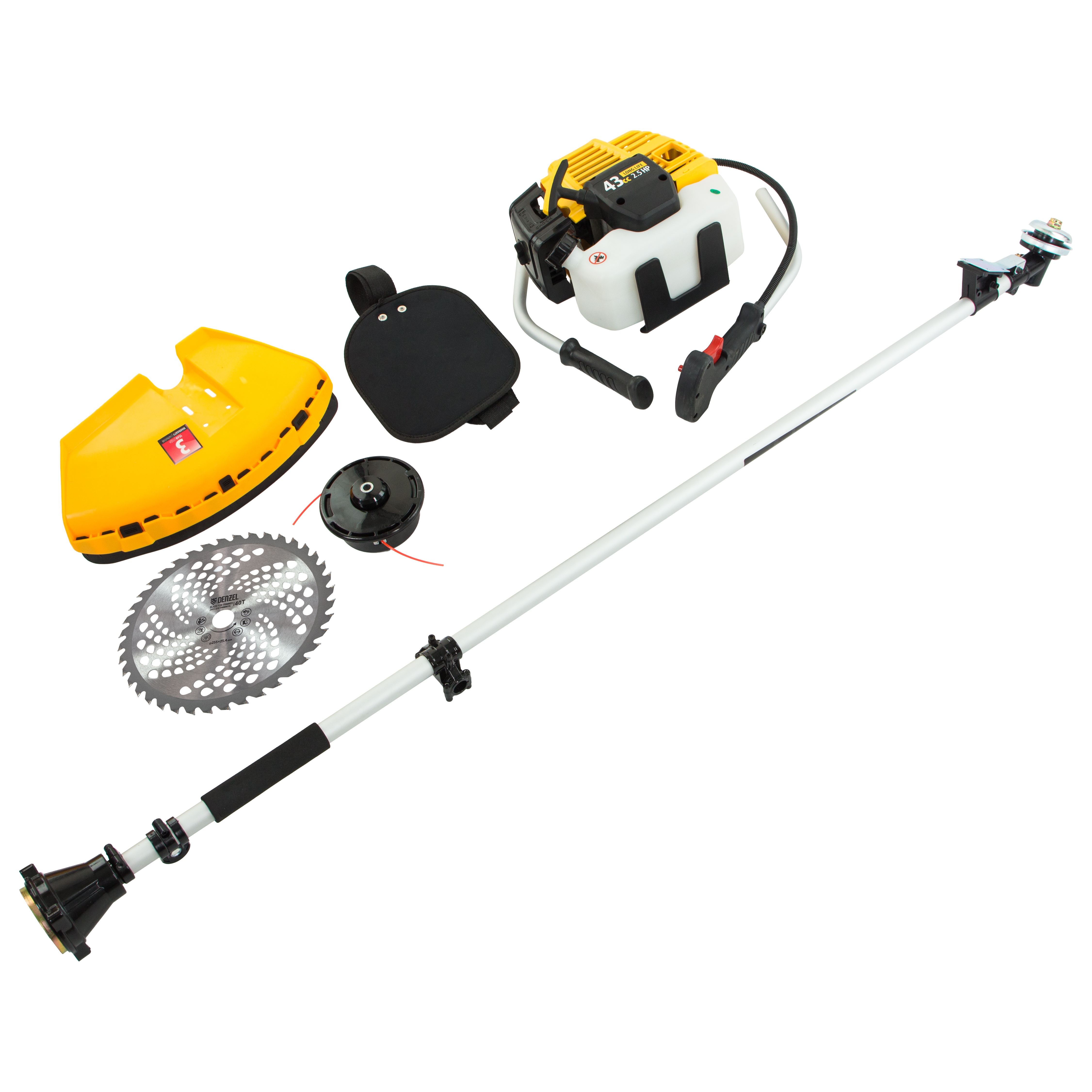 Бензиновый триммер Denzel DT-43 96224 оснащен экономичным, надежным и простым в эксплуатации двигателем мощностью 2,5 л.с. и объемом 43 см³, имеет неразъемную штангу и поставляется комплектом из 2 частей. Оптимален для подравнивания газона и скашивания травы с жесткими древовидными стеблями (полыни, крапивы, лебеды, борщевика), а также срезания кустарника и молодых побегов деревьев с диаметром стволов до 10 мм. Эффективно скашивает траву в труднодоступных местах: вдоль кромок дорожек, стен строений и вокруг деревьев. В комплекте катушка с леской и пильный диск, ширина скашивания составляет 420 мм и 255 мм соответственно.