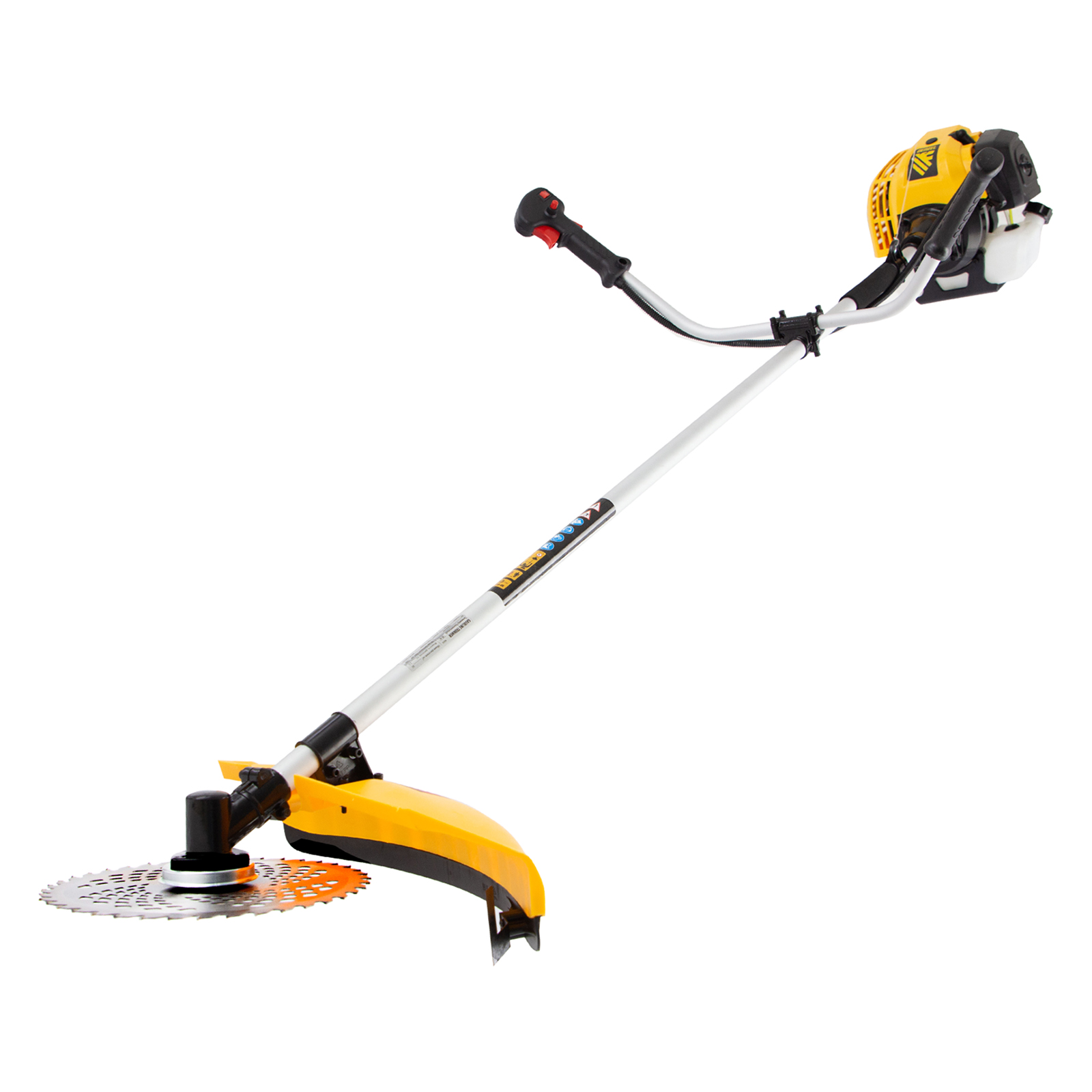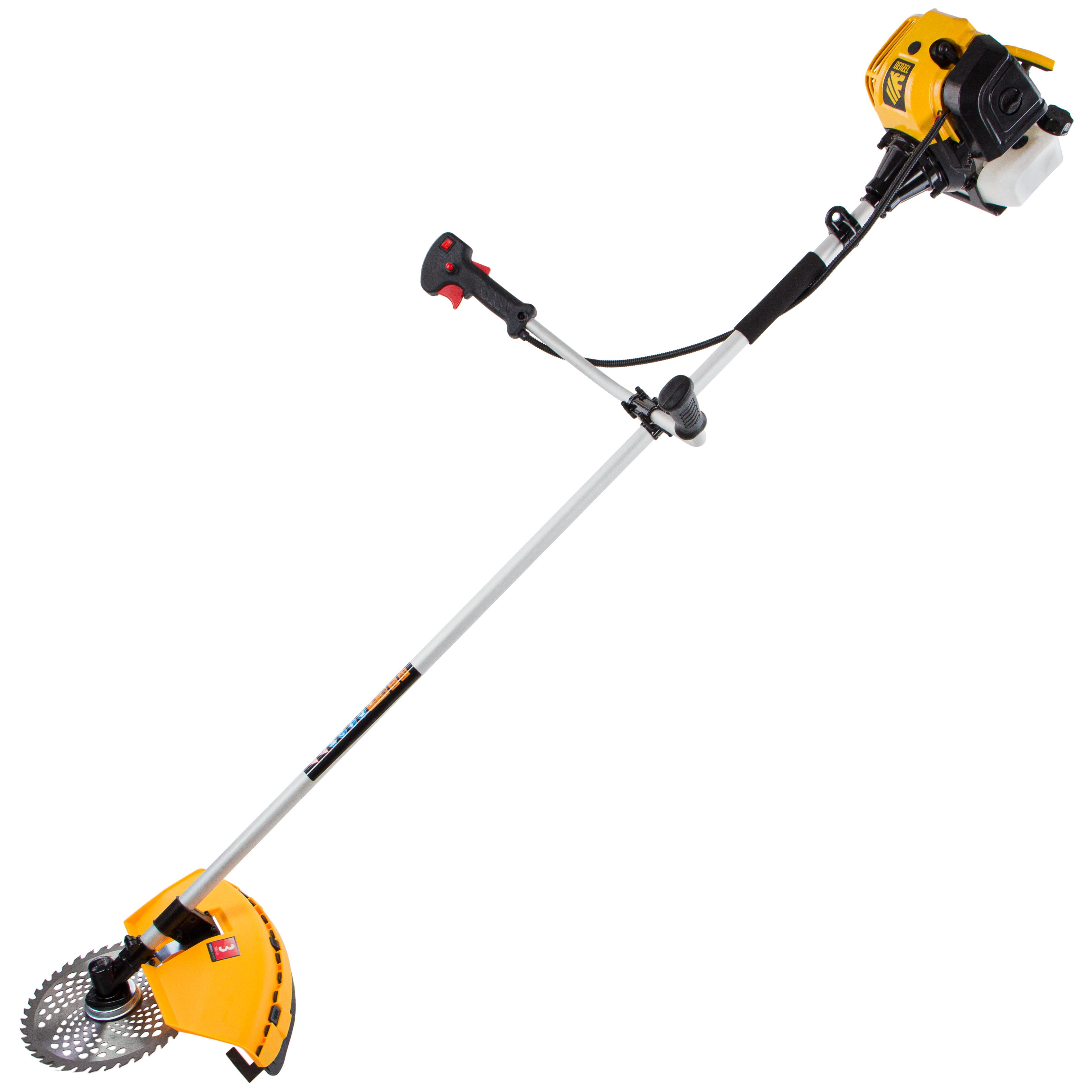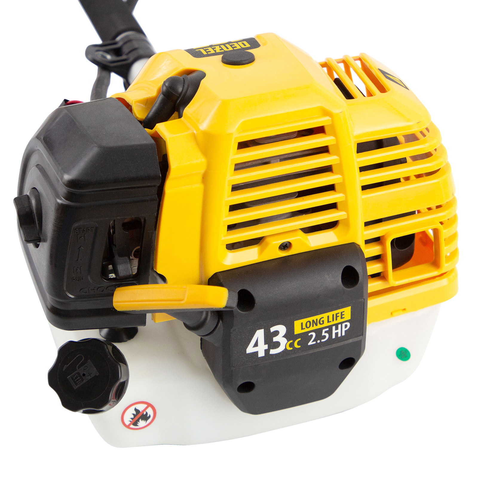 Бензиновый триммер Denzel DT-43 96224 оснащен экономичным, надежным и простым в эксплуатации двигателем мощностью 2,5 л.с. и объемом 43 см³, имеет неразъемную штангу и поставляется комплектом из 2 частей. Оптимален для подравнивания газона и скашивания травы с жесткими древовидными стеблями (полыни, крапивы, лебеды, борщевика), а также срезания кустарника и молодых побегов деревьев с диаметром стволов до 10 мм. Эффективно скашивает траву в труднодоступных местах: вдоль кромок дорожек, стен строений и вокруг деревьев. В комплекте катушка с леской и пильный диск, ширина скашивания составляет 420 мм и 255 мм соответственно.