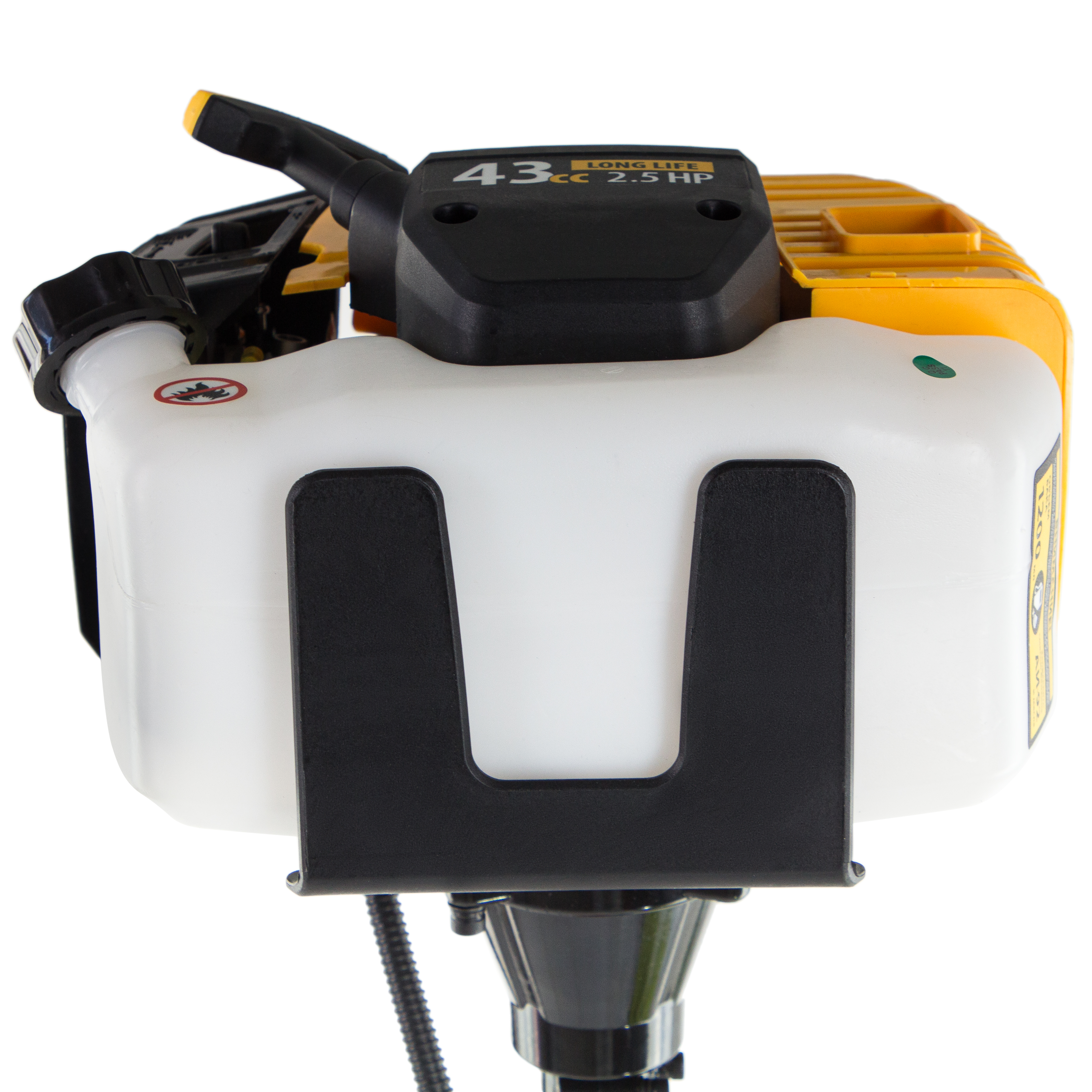- Удобный контроль уровня топлива — бак изготовлен из полупрозрачного пластика.