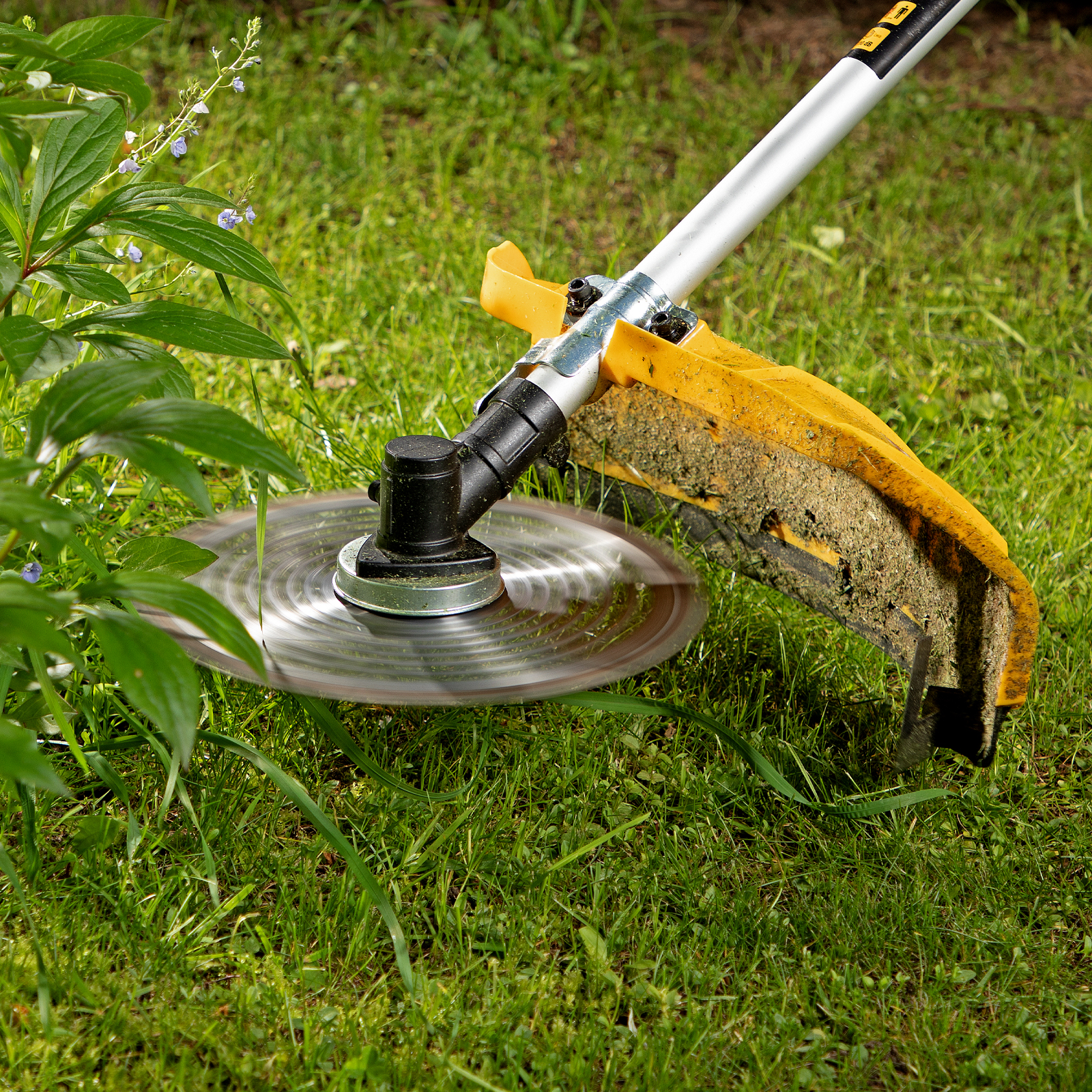 - Легкая установка оснастки — триммер удобен для обработки участков с разным типом растительности.