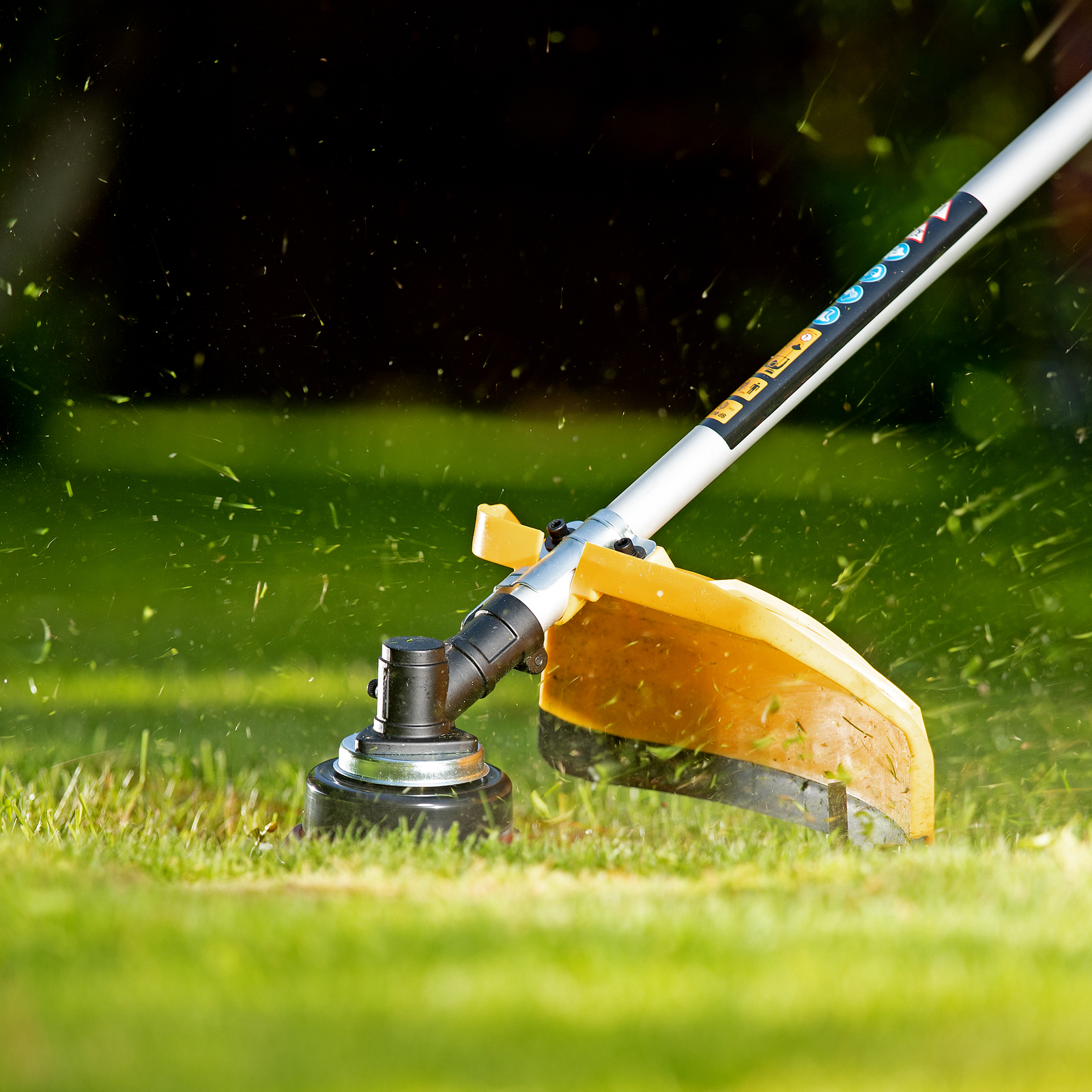 - Автоматическое укорачивание лески — специальный нож на защитном кожухе обрезает лишние «хвосты», предохраняя двигатель от перегрузки и перегрева.