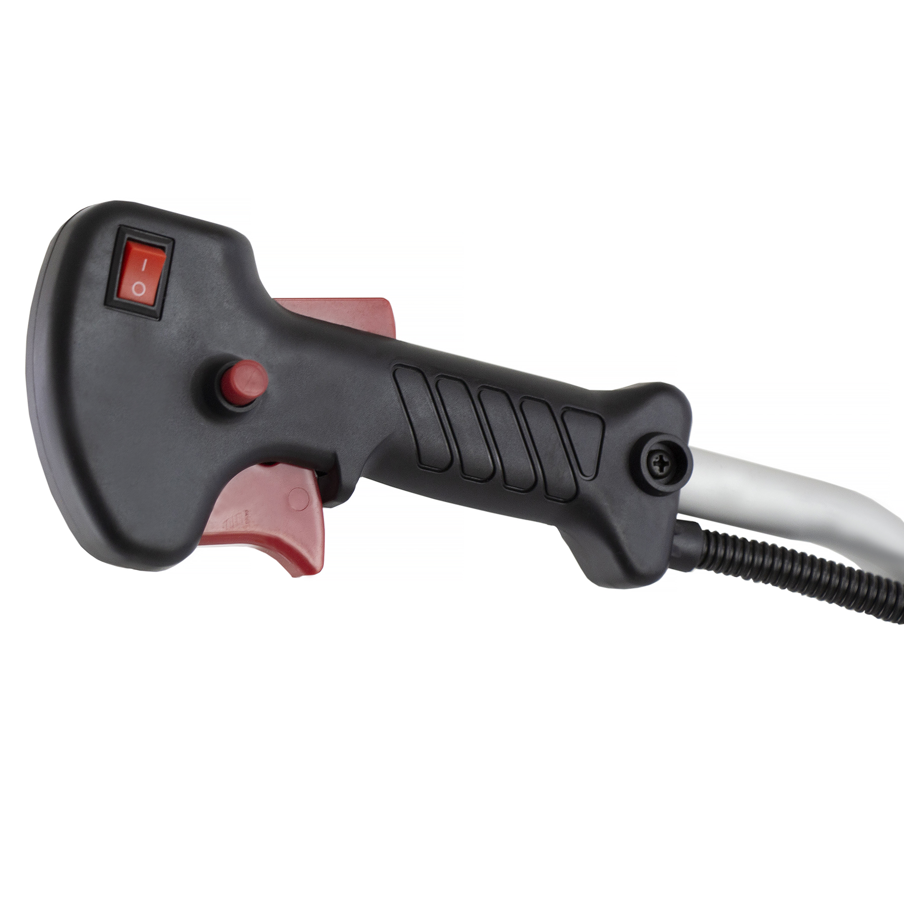 - Эргономичность — велосипедная рукоятка имеет асимметричную форму, поэтому триммер удобно удерживать и направлять.