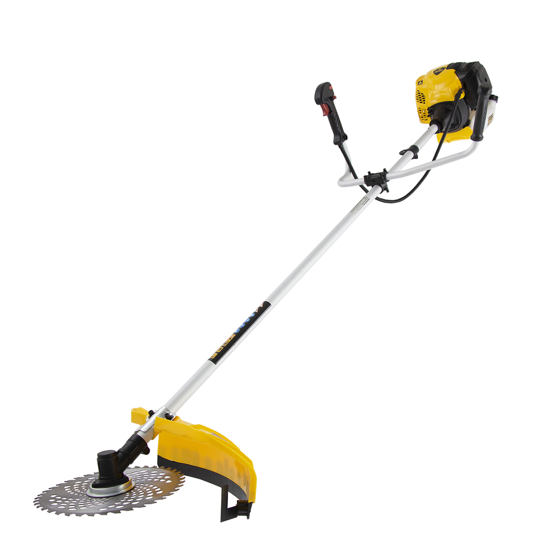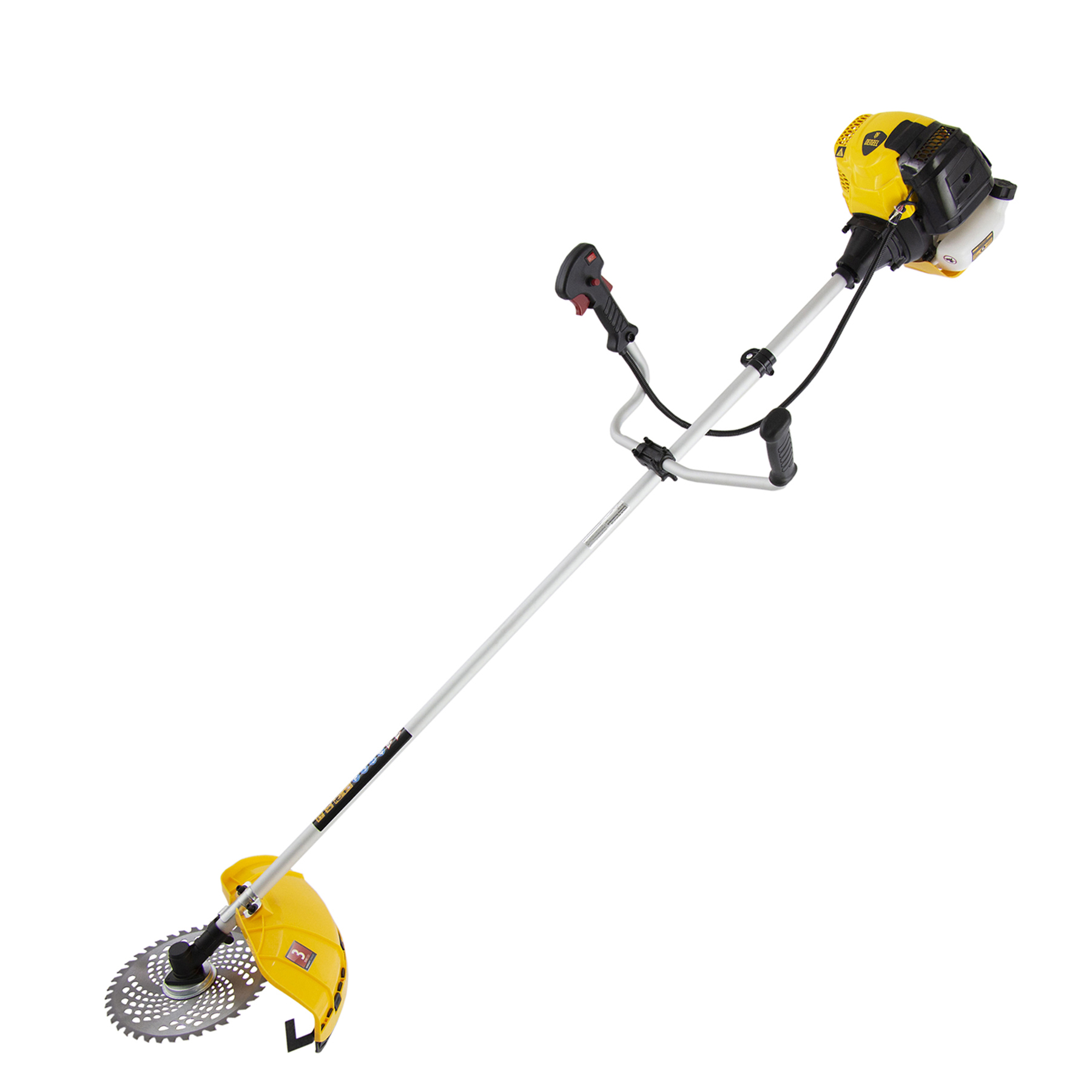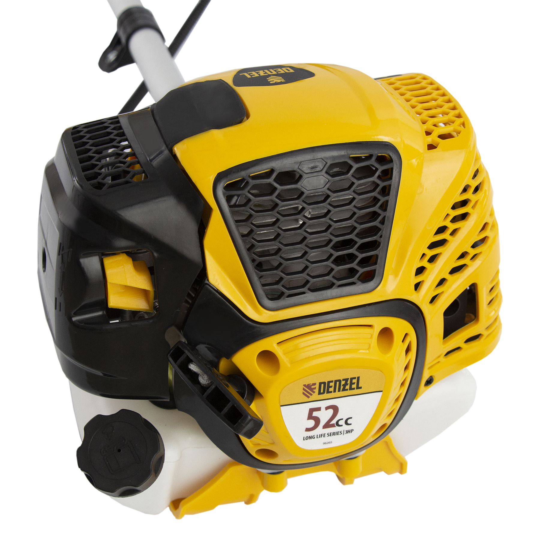 Бензиновый триммер Denzel DTL-52 96265, с увеличенным до 52 куб. см объемом двигателя и неразъемной штангой, состоит из 2 частей и отличается самыми высокими параметрами работы из линейки DTL. Подходит как для частичного подравнивания газона, так и скашивания травы всех типов, в том числе с жесткими древовидными стеблями (полыни, крапивы, лебеды, борщевика), а также срезания кустарника и молодых побегов деревьев с диаметром стволов до 10 мм. Два режущих инструмента — леска и пильный диск — работают на скорости 9500 об/мин и обеспечивают ширину скашивания 42 и 25,5 см соответственно. Двигатель мощностью 3 л.с. экономично потребляет топливо, поэтому часто заправлять бак не придется. Триммер не требует подключения к стационарному источнику питания и может использоваться в самом отдаленном уголке дачного участка.
