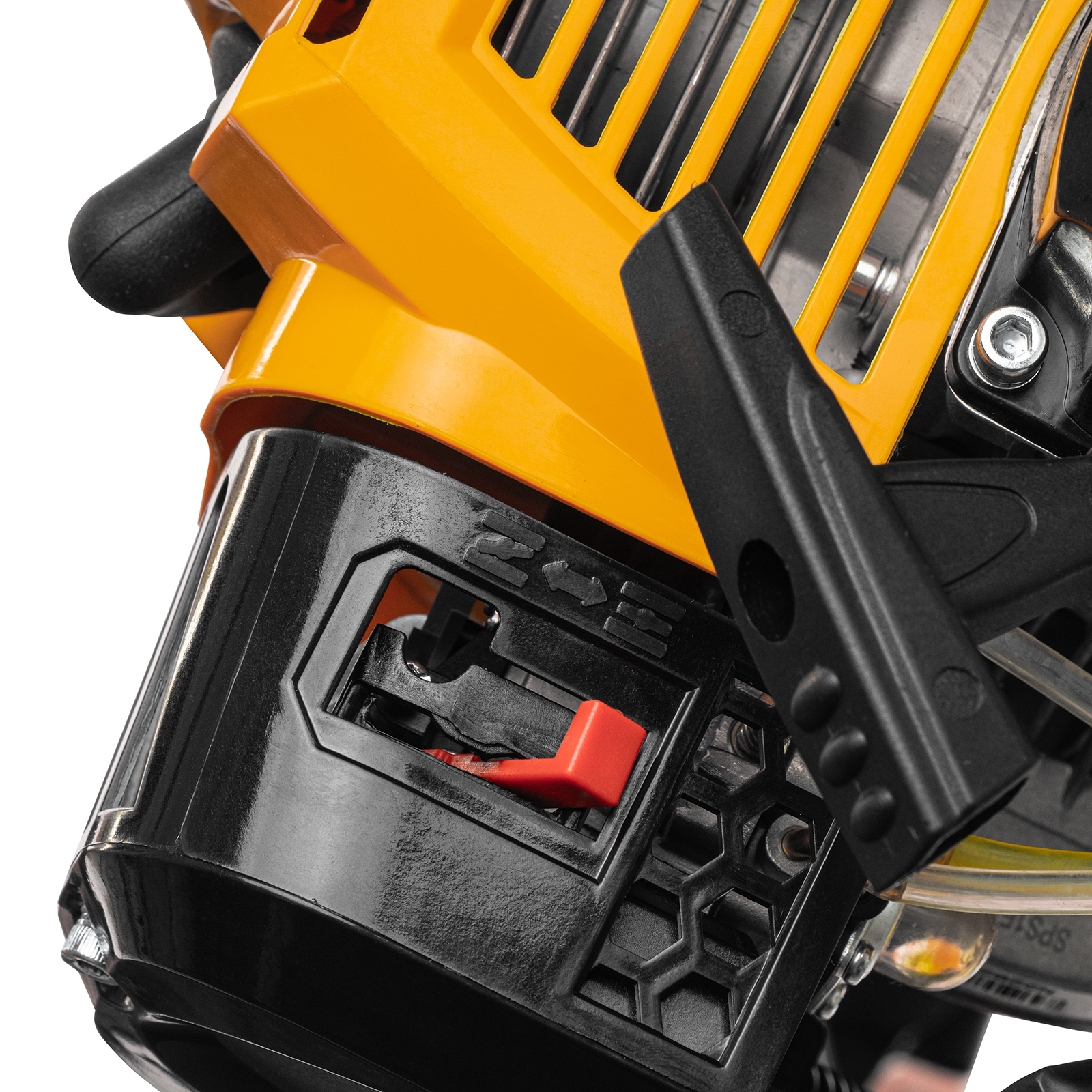- Защита от случайного пуска — блокиратор курка газа предотвращает включение триммера по неосторожности, обеспечивая безопасность пользователя.