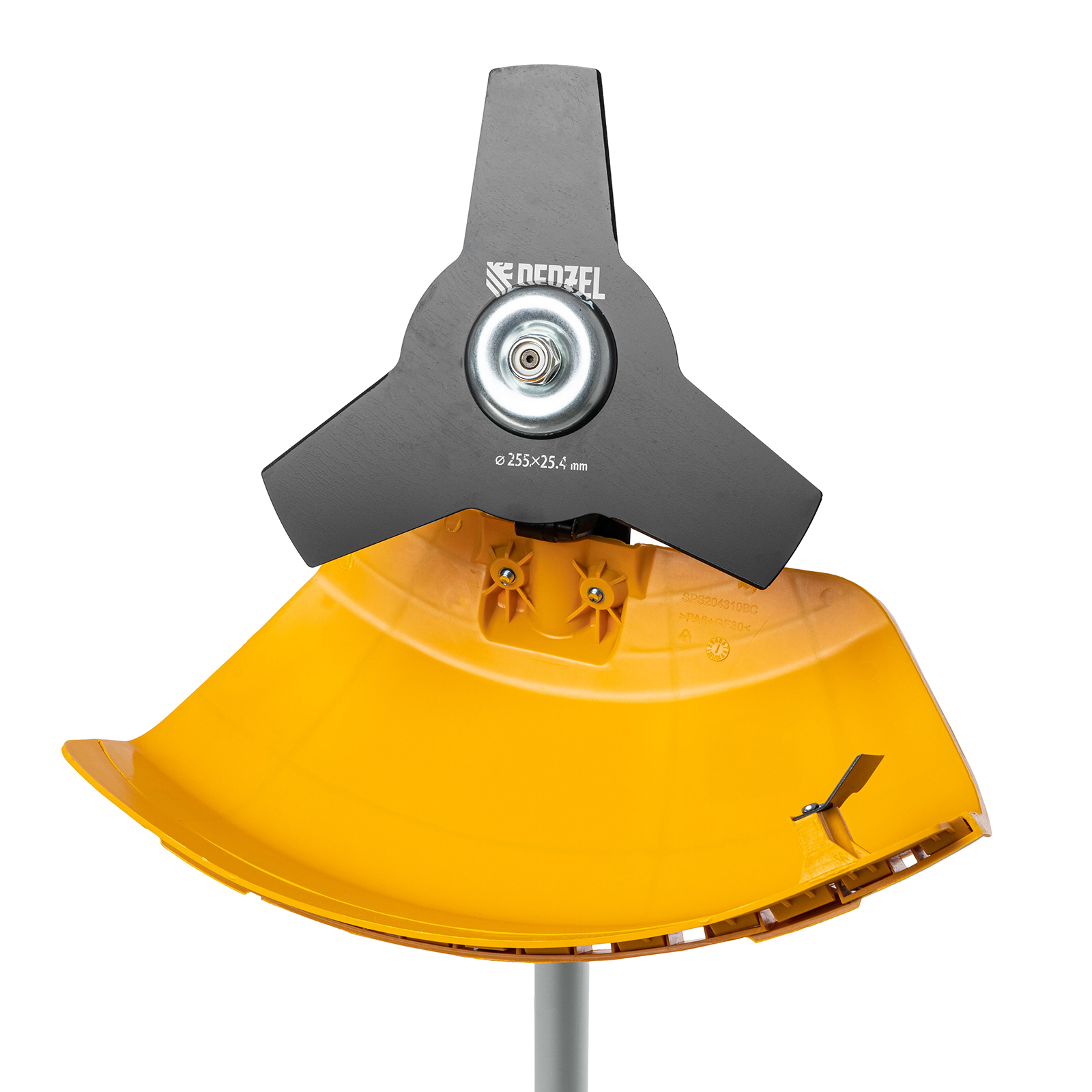 - Безопасная эксплуатация — прочный кожух, закрывающий оснастку, защищает пользователя от летящей травы, грязи и мелких камней.