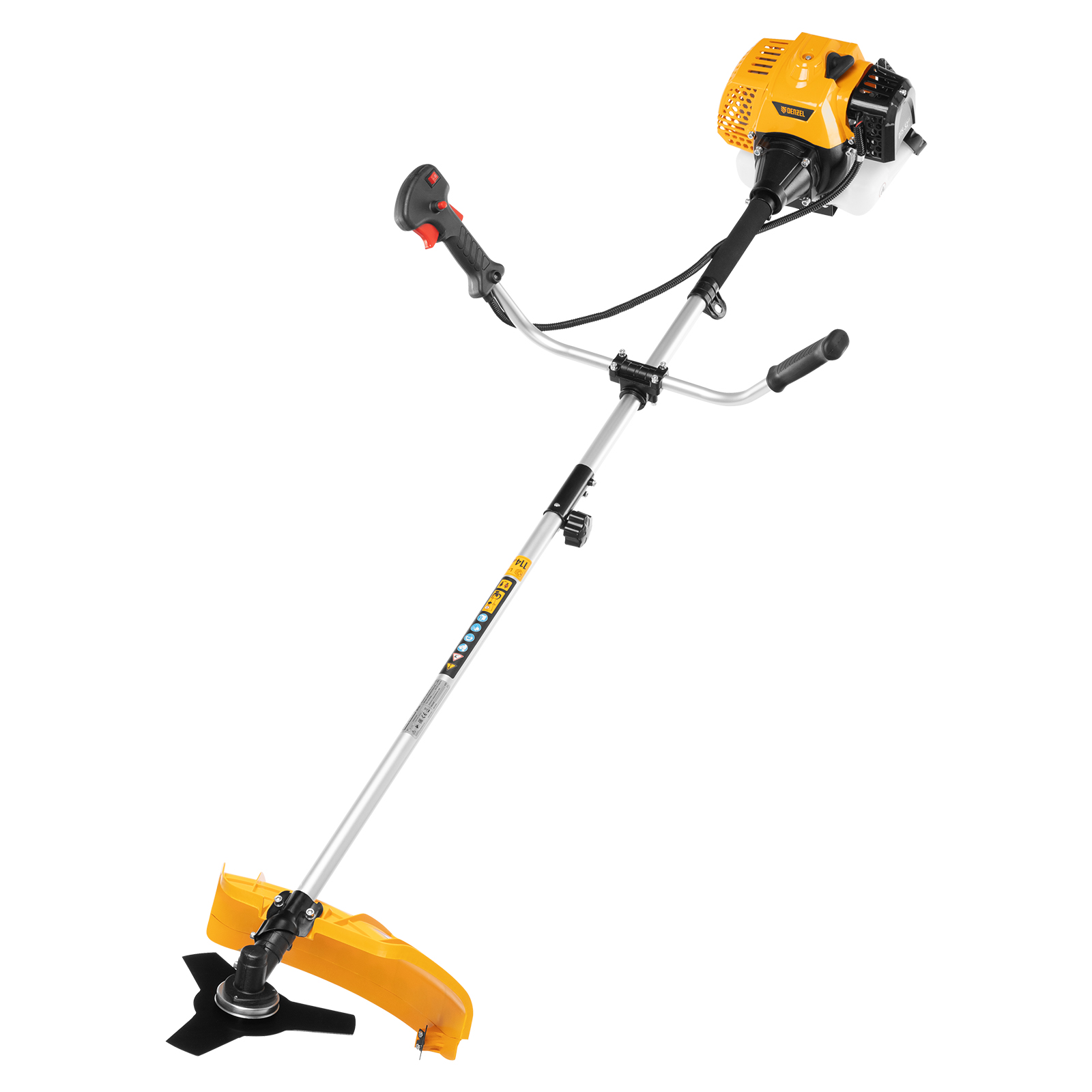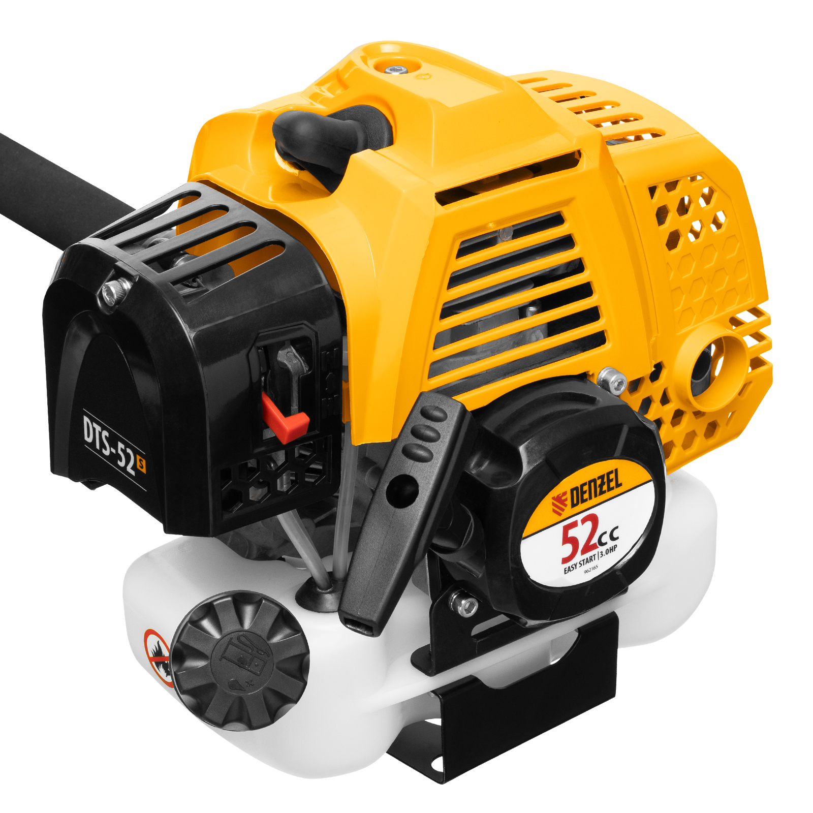 Бензиновый триммер Denzel DTS-52S 962165 с двигателем объемом 52 куб. см и разъемной штангой (состоит из 2 частей), используется для скашивания травы различных типов, в том числе с жесткими стеблями (полыни, крапивы, лебеды). Комплектуется двумя режущими оснастками — усиленной катушкой с леской и трехлопастным стальным ножом. Ширина скашивания леской составляет 42 см, а ножом — 25,5 см.,Двухтактный бензиновый двигатель мощностью 3 л.с. обеспечивает эффективное решение поставленных задач и полную автономность. Работать можно даже в самых отдаленных участках сада, не заботясь о наличии сети электропитания.