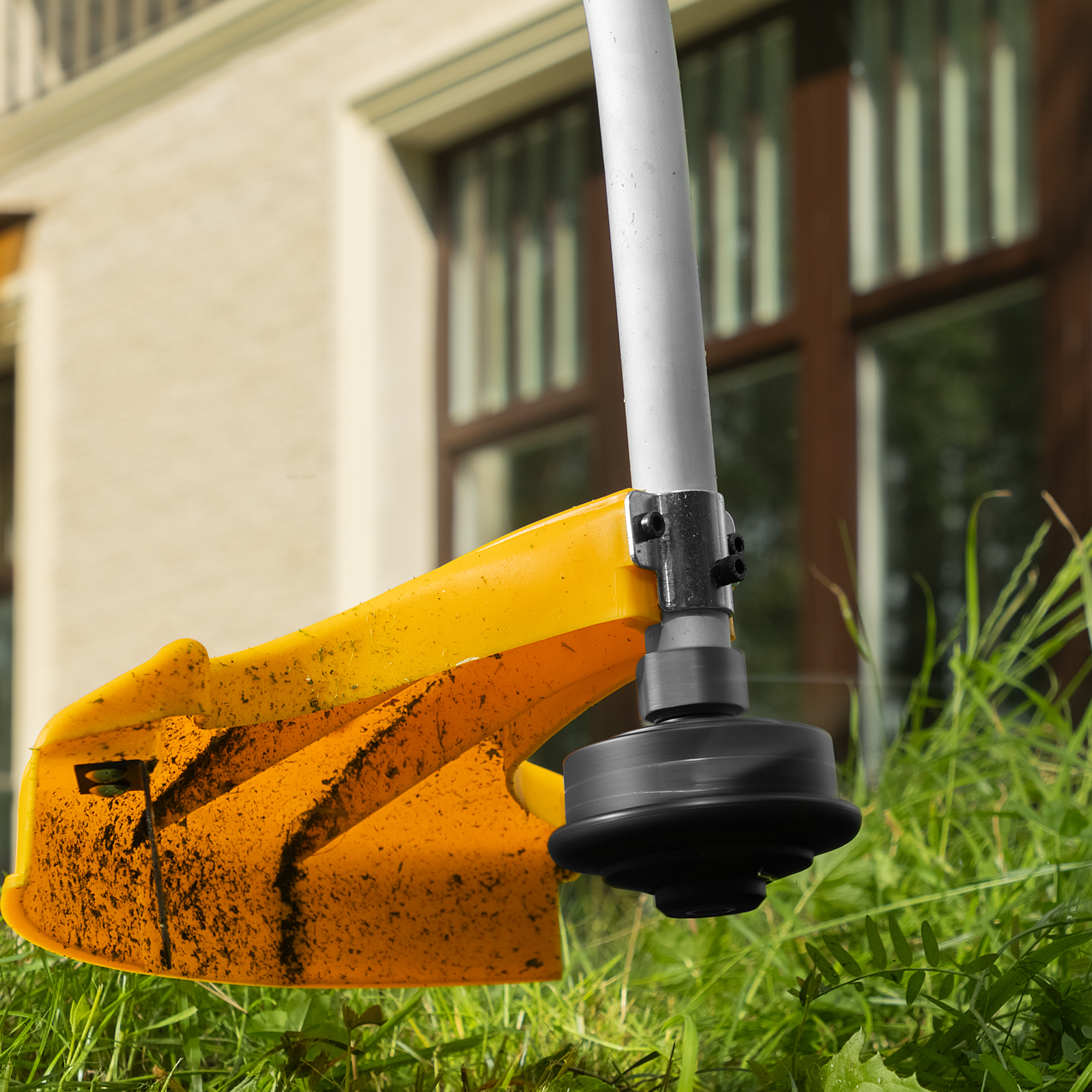 - Удобное хранение и транспортировка — благодаря разборной штанге триммер не занимает много места.