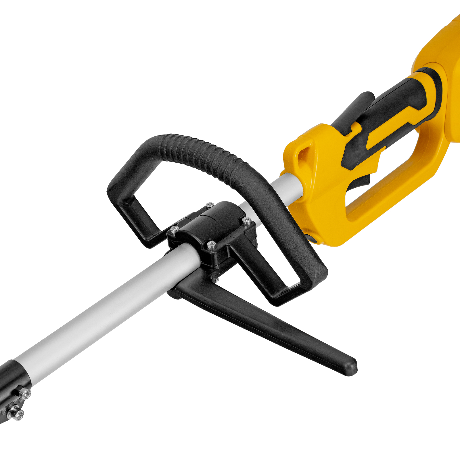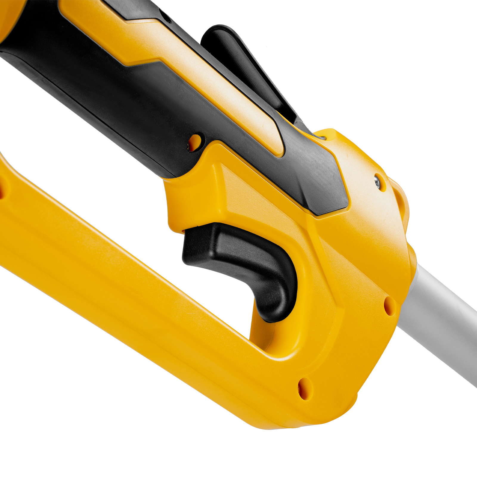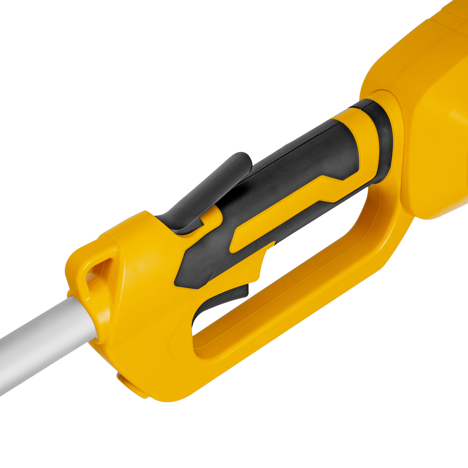 - Снижение нагрузки на спину — наплечный ремень равномерно распределяет вес садового электротриммера, что уменьшает усталость при длительной работе.
