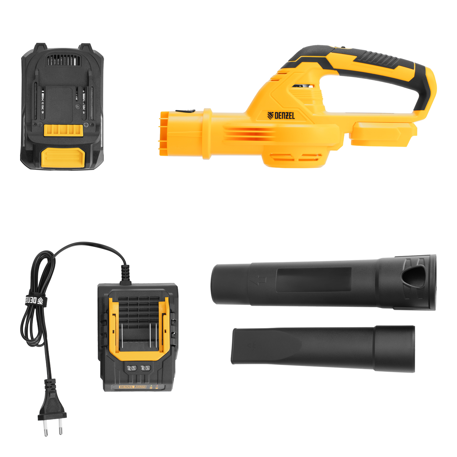 - Полная комплектация — воздуходувка поставляется с аккумулятором и зарядным устройством, поэтому полностью готова к эксплуатации.