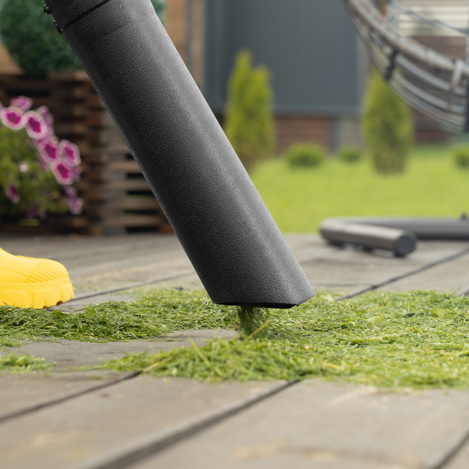 - Функция измельчения — собранный мусор можно использовать в качестве мульчи для удобрения растений.