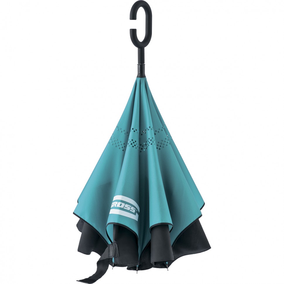 Зонт-трость обратного сложения Gross 69701 с эргономичной рукояткой с покрытием Soft Touch гораздо удобнее обычных зонтов, т.к. мокрая сторона при его закрытии остается внутри и вода не попадает на владельца, вещи и других людей. Конструкция устойчива к порывам ветра, поэтому спицы и купол прослужат долго.