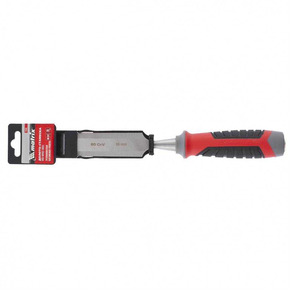 Долото-стамеска Matrix 24763 из стали 60 CrV, с полотном шириной 28 мм и трехкомпонентной обрезиненной рукояткой, используется в столярном и мебельном производстве. Позволяет выбрать углубления, снять фаски, зачистить пазы, создать декоративную резьбу на деревянной поверхности. Благодаря металлическому затыльнику долото-стамеску можно использовать с ударным инструментом для лучшего врезания в дерево. Инструмент отличается высоким качеством исполнения и подходит для профессионального использования.