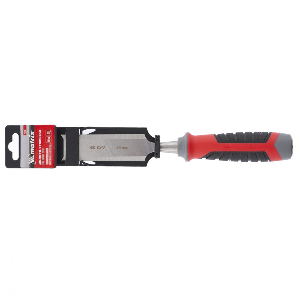 Долото-стамеска Matrix 24765 из стали 60 CrV, с полотном шириной 30 мм и трехкомпонентной обрезиненной рукояткой, используется в столярном и мебельном производстве. Позволяет выбрать углубления, снять фаски, зачистить пазы, создать декоративную резьбу на деревянной поверхности. Благодаря металлическому затыльнику долото-стамеску можно использовать с ударным инструментом для лучшего врезания в дерево. Инструмент отличается высоким качеством исполнения и подходит для профессионального использования.