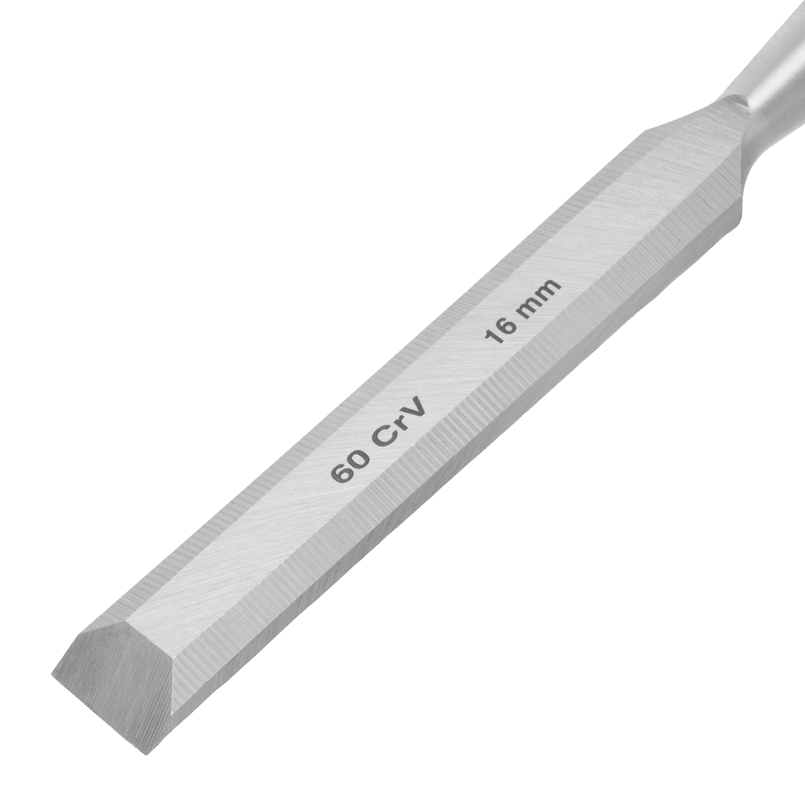 - Длительное сохранение режущих свойств — долото-стамеска обладает твердостью 65 HRC (0,7 длины рабочей части полотна), острое, как бритва, лезвие обработано на заводе под углом 20-35°, повторная заточка потребуется минимум через 6 месяцев.