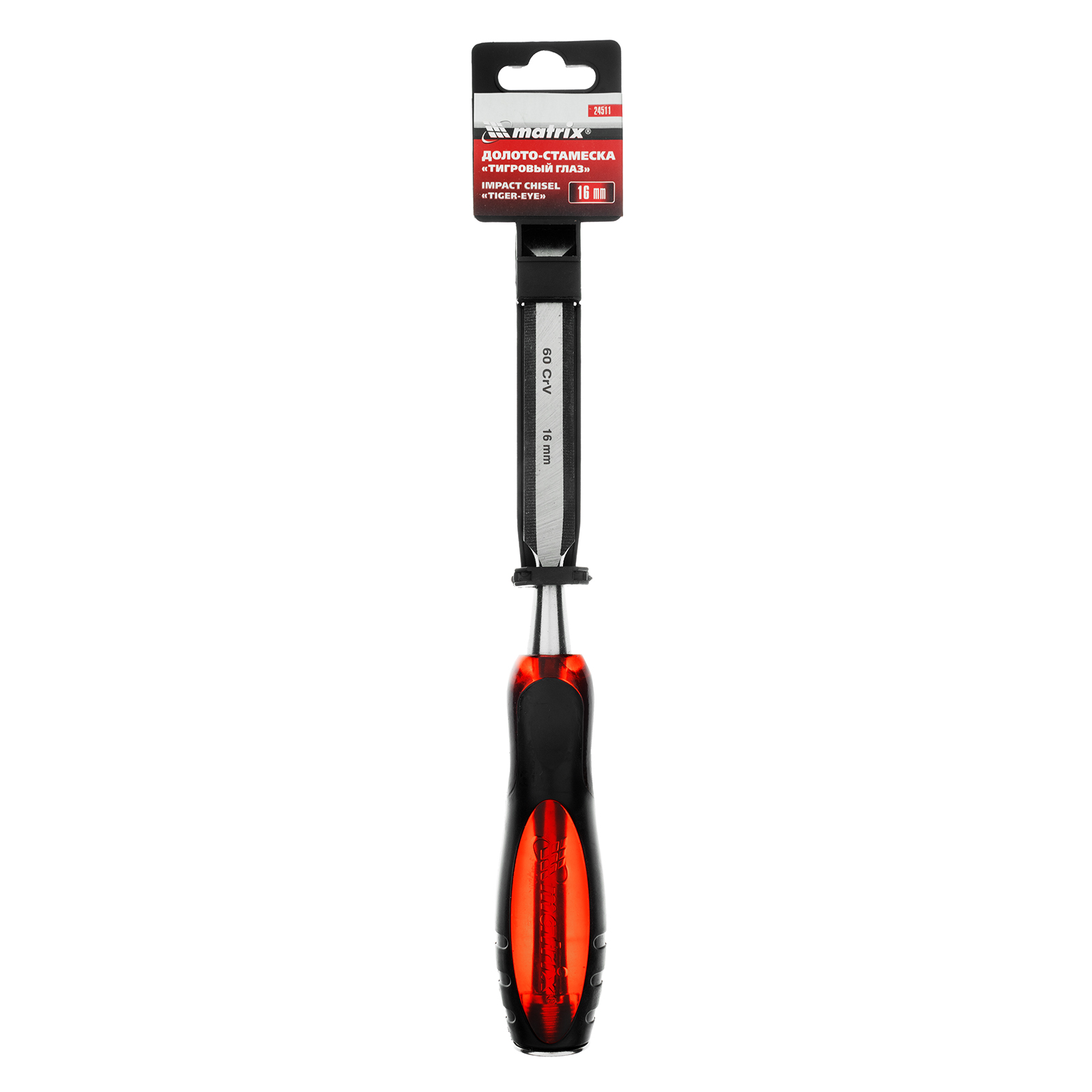 Долото-стамеска Matrix «Тигровый глаз» 24511 с полотном шириной 16 мм и двухкомпонентной обрезиненной рукояткой используется в столярном и плотницком деле, в производстве мебели. Позволяет вырезать углубления, формировать пазы, зачищать шипы и гнезда, снимать фаски. Инструмент выдерживает удары киянкой или молотком, т. к. металлический затыльник защищает его от деформации. Долото относится к профессиональному ручному инструменту, но может применяться и в домашних условиях.