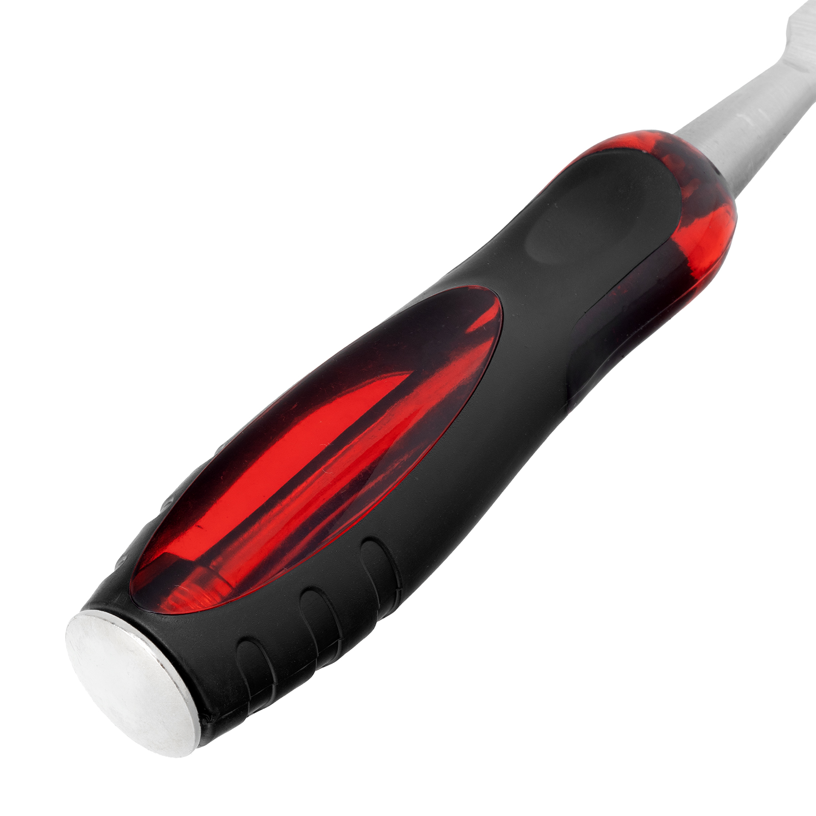 - Продуманная конструкция — металлический стержень, проходящий сквозь рукоятку, повышает прочность и долговечность инструмента.