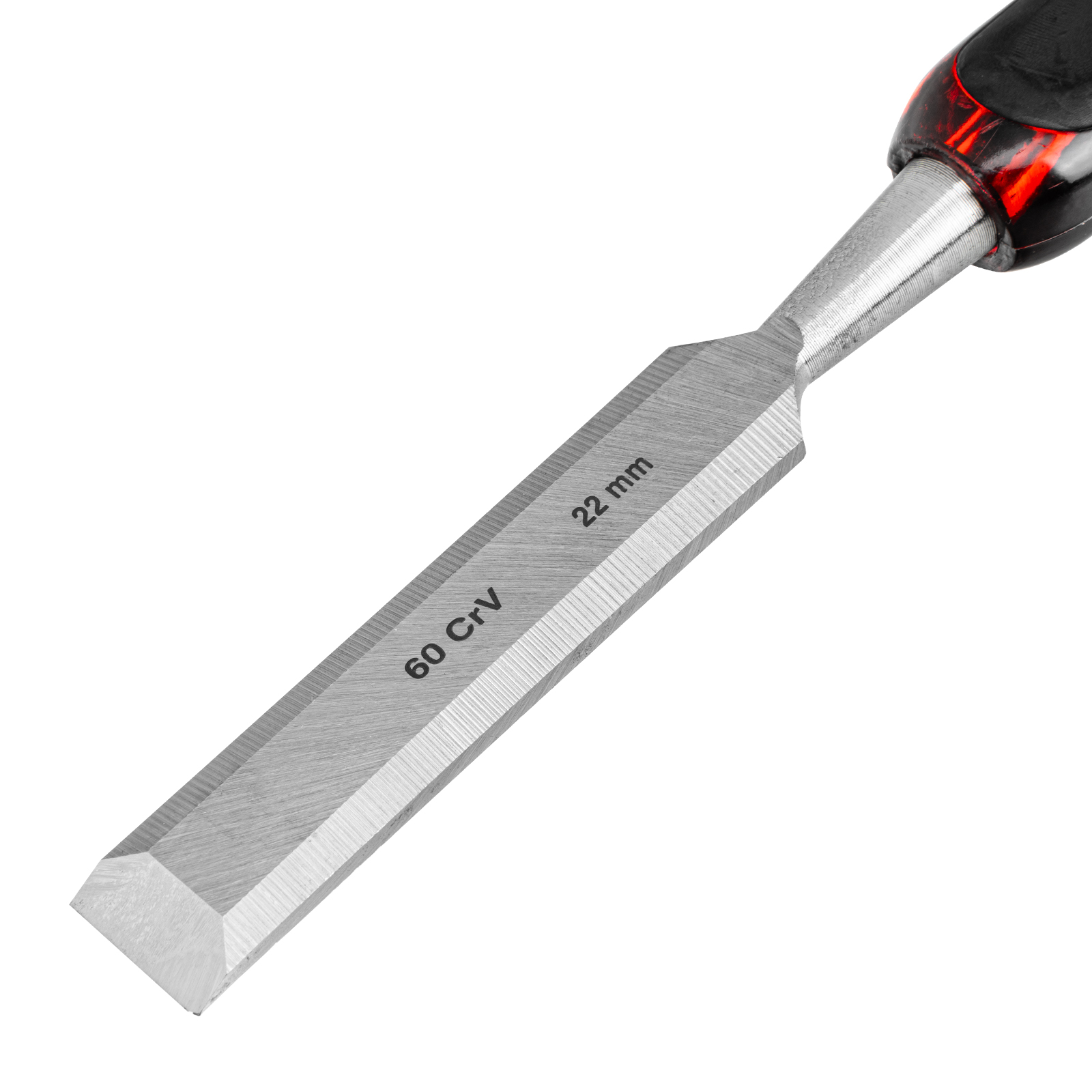 - Длительное сохранение режущих свойств — долото-стамеска обладает твердостью 65 HRC (0,7 длины рабочей части полотна), острое, как бритва, лезвие обработано на заводе под углом 20-35°, повторная заточка потребуется минимум через 6 месяцев.