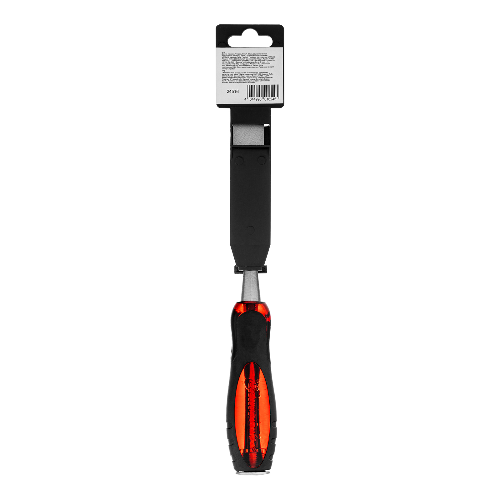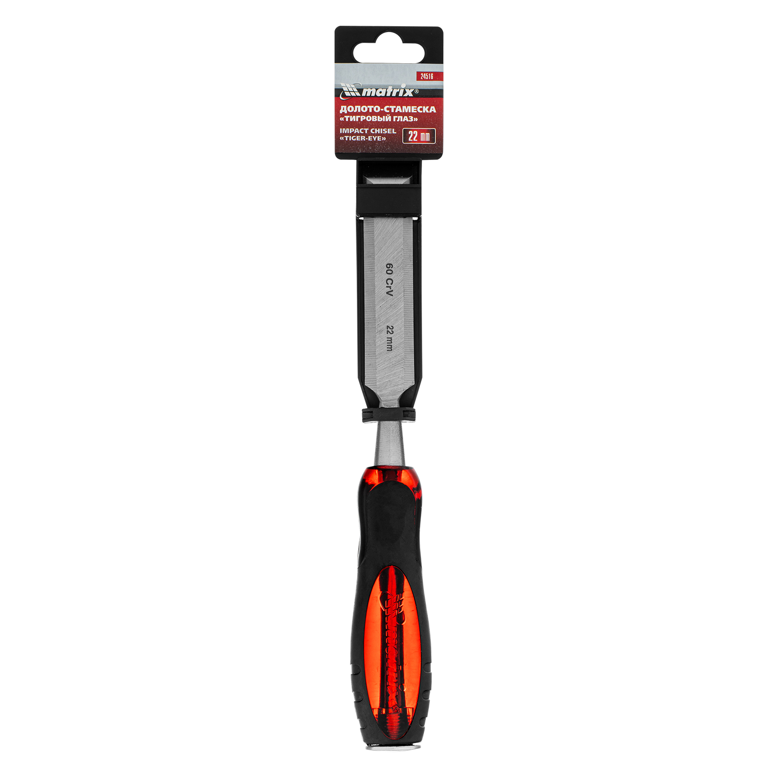 Долото-стамеска Matrix «Тигровый глаз» 24516 с полотном шириной 22 мм и двухкомпонентной обрезиненной рукояткой используется в столярном и плотницком деле, в производстве мебели. Позволяет вырезать углубления, формировать пазы, зачищать шипы и гнезда, снимать фаски. Инструмент выдерживает удары киянкой или молотком, т. к. металлический затыльник защищает его от деформации. Долото относится к профессиональному ручному инструменту, но может применяться и в домашних условиях.