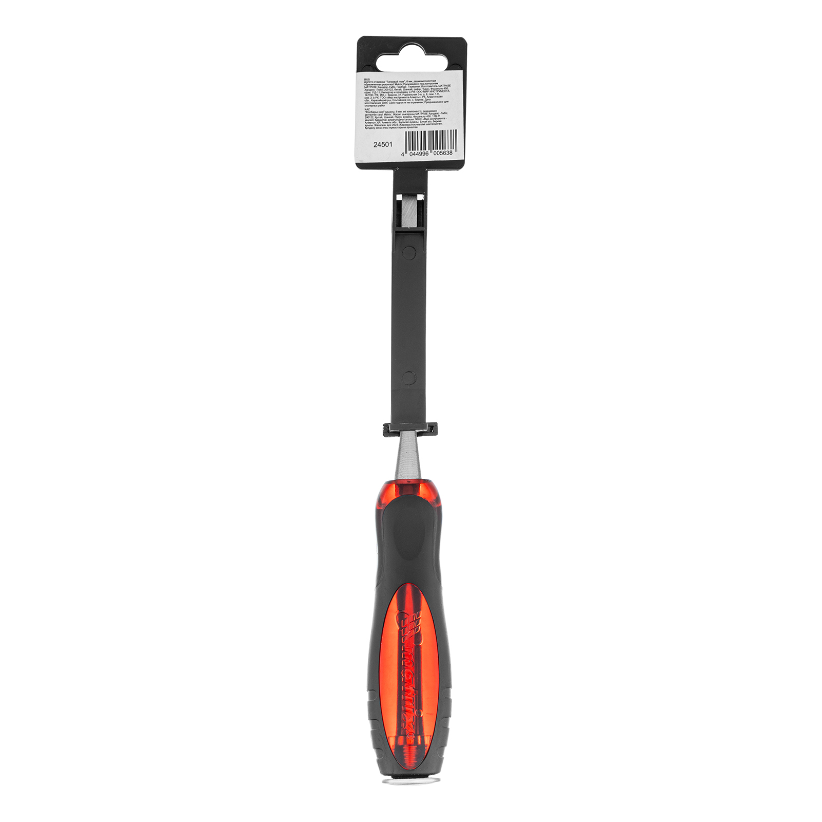 Долото-стамеска Matrix «Тигровый глаз» 24501 с полотном шириной 6 мм и двухкомпонентной обрезиненной рукояткой используется в столярном и плотницком деле, в производстве мебели. Позволяет вырезать углубления, формировать пазы, зачищать шипы и гнезда, снимать фаски. Инструмент выдерживает удары киянкой или молотком, т. к. металлический затыльник защищает его от деформации. Долото относится к профессиональному ручному инструменту, но может применяться и в домашних условиях.