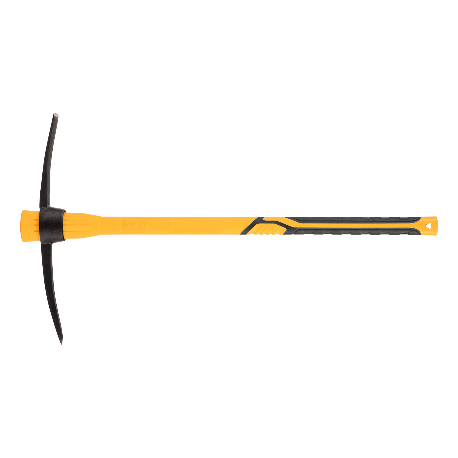 Кирка Denzel 21834 длиной 900 мм, с узкой рабочей частью, головой весом 1500 г и фибергласовой обрезиненной рукояткой, предназначена для работы по камню, рыхления каменистого, пересохшего земляного и глиняного грунта. Может использоваться для разрушения старой кирпичной кладки и колки льда. Инструмент будет полезен на строительной площадке и дачном участке.