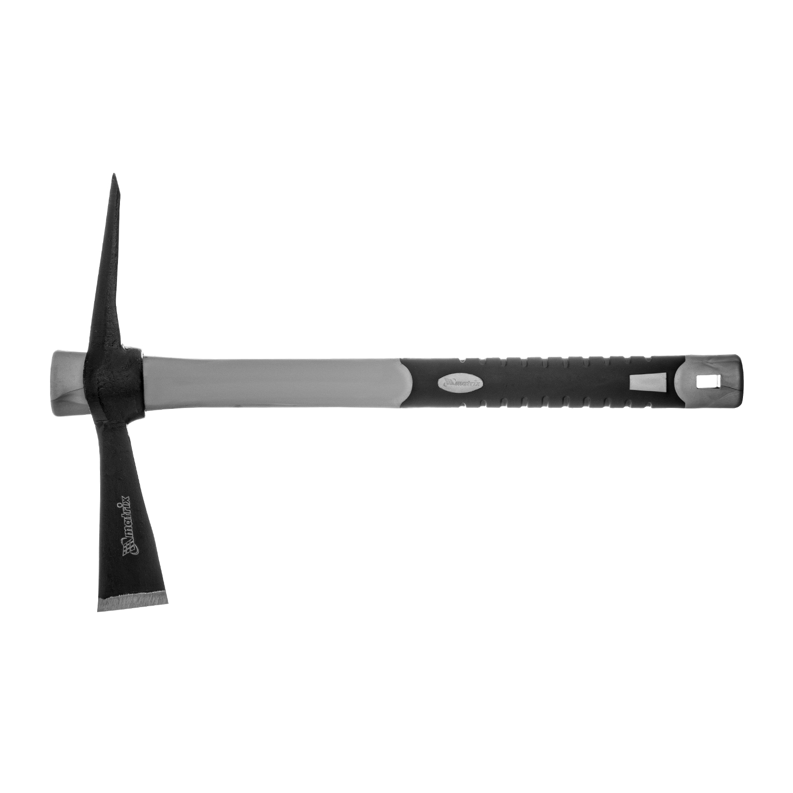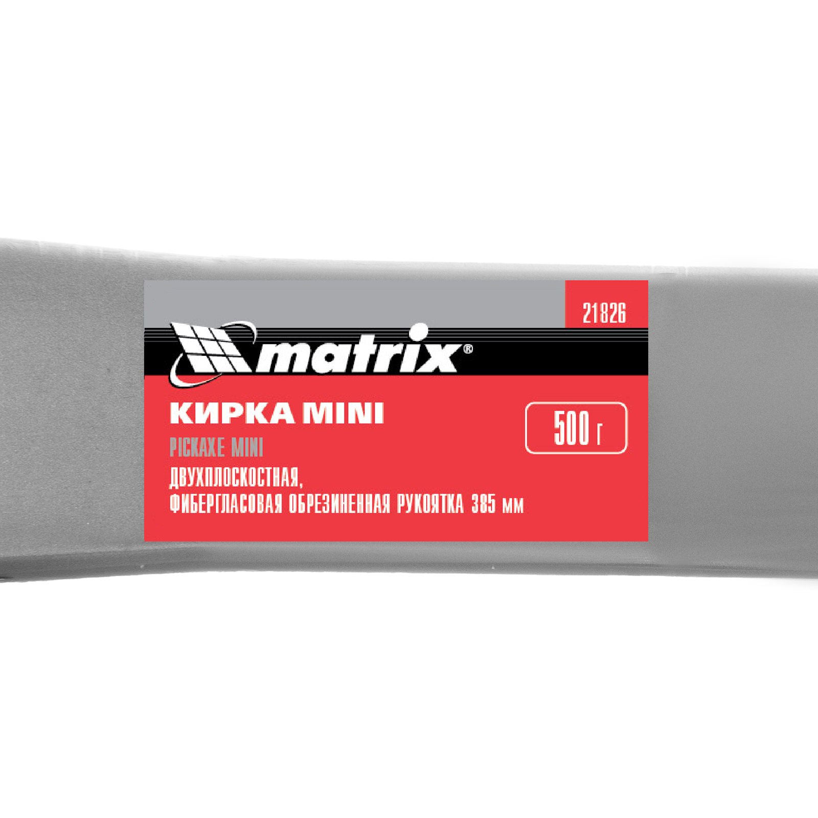 Двухплоскостная кирка Matrix MINI 21826 с головой весом 500 г и фибергласовой обрезиненной рукояткой длиной 385 мм применяется для мелких садовых работ. Одна сторона заточена под лопатку и предназначена для разбивания грунта, вторая — под топор, используется для перерубания корней. Инструмент оптимально подходит для работы одной рукой.