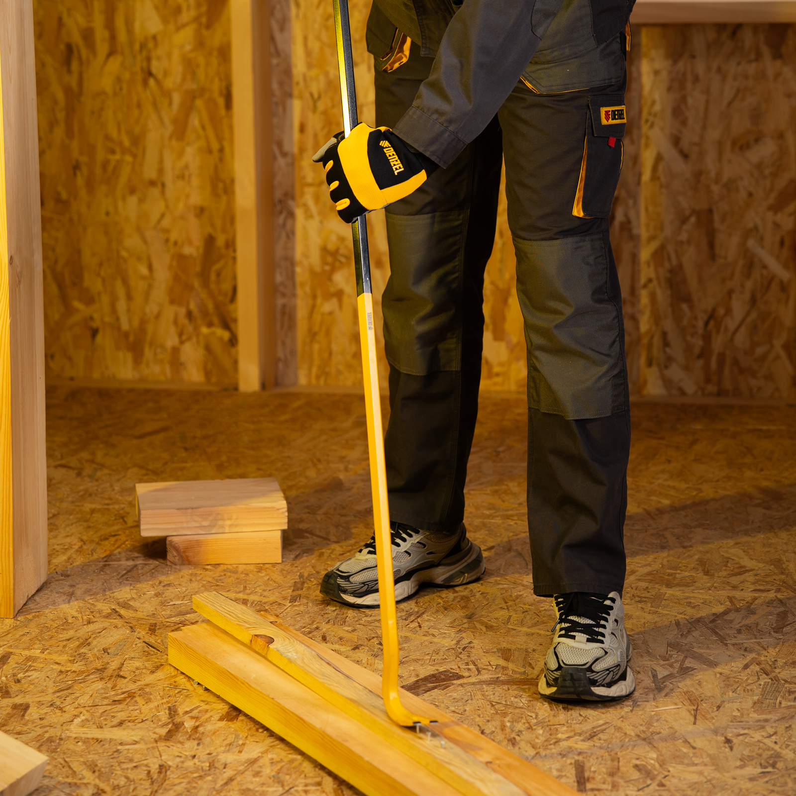- Яркий цвет — лом-гвоздодер хорошо заметен среди других инструментов.