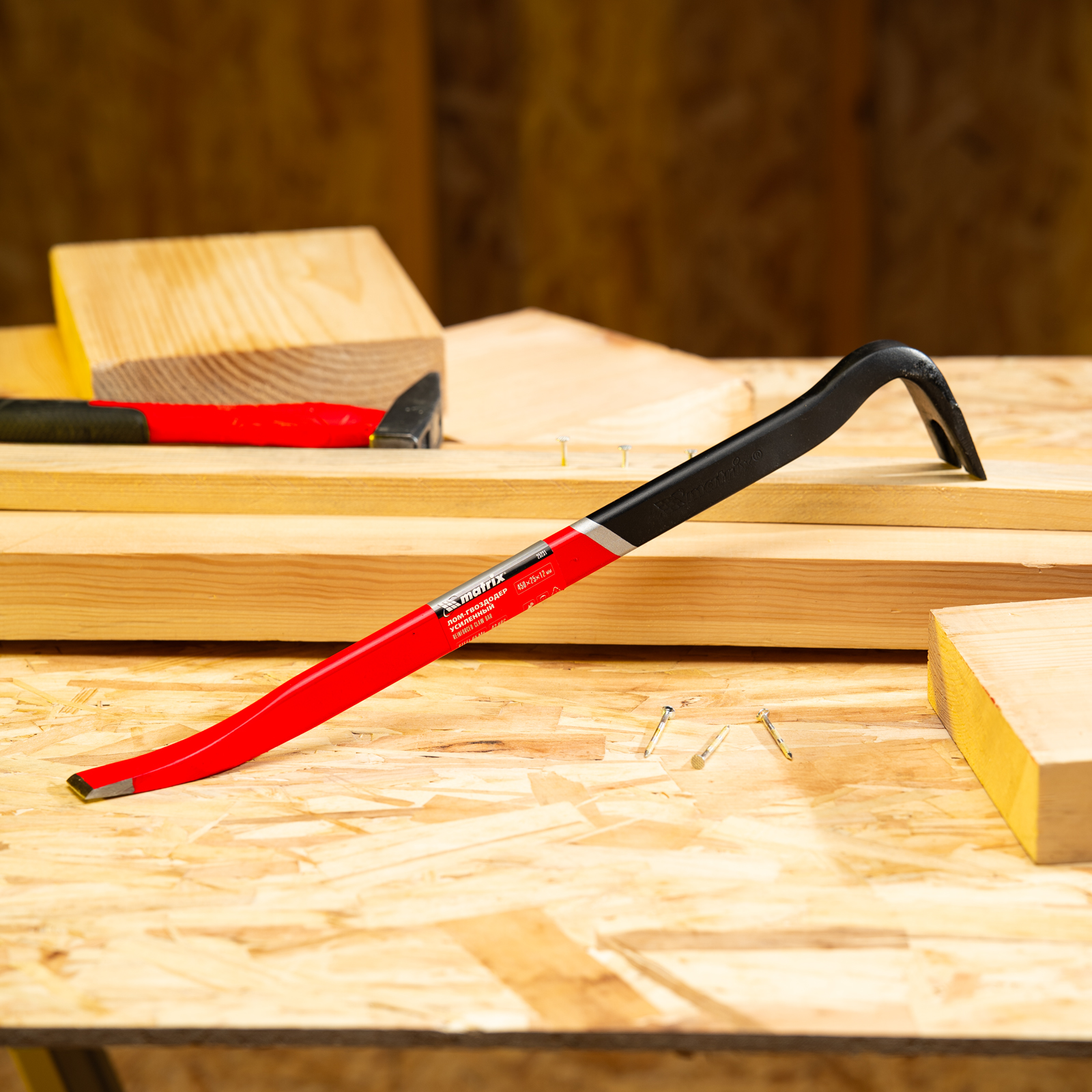 Усиленный лом-гвоздодер Matrix 25231 размером 450 х 25 х 12 мм предназначен для демонтажа различных конструкций. Им можно извлекать гвозди, разбирать ограждения и деревянную тару, демонтировать старую обшивку стен или крыши. Тело инструмента имеет овальную форму, поэтому выдерживает повышенные нагрузки. Лом-гвоздодер необходим на строительной площадке, пригодится также и в быту.