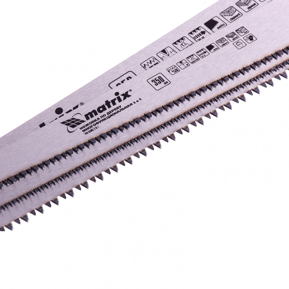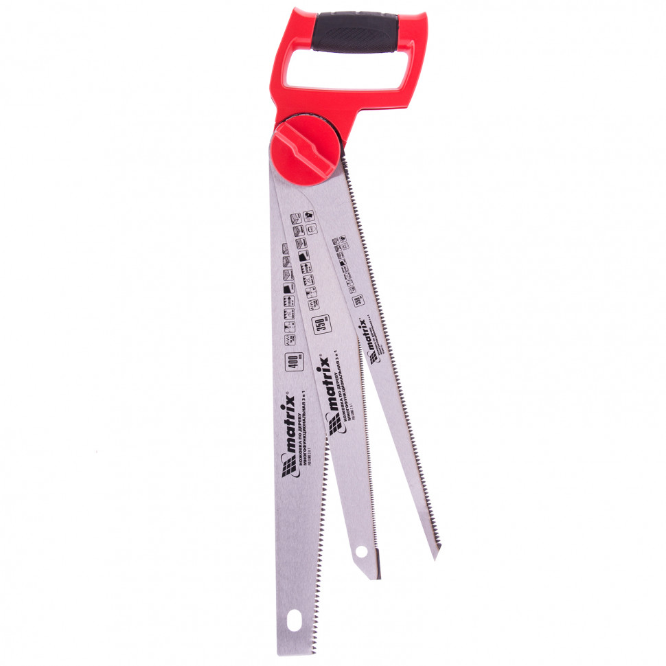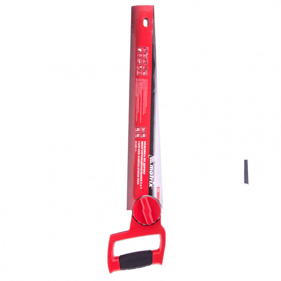 Ножовка Matrix 23575 с металлической обрезиненной рукояткой предназначена для продольного распила древесины. Представляет собой многофункциональный инструмент: в комплекте 3 рабочих полотна, каждое из которых фиксируется под 1 из 5 углов относительно рукоятки. Такое решение позволяет максимально эффективно выполнять столярные и плотницкие работы.