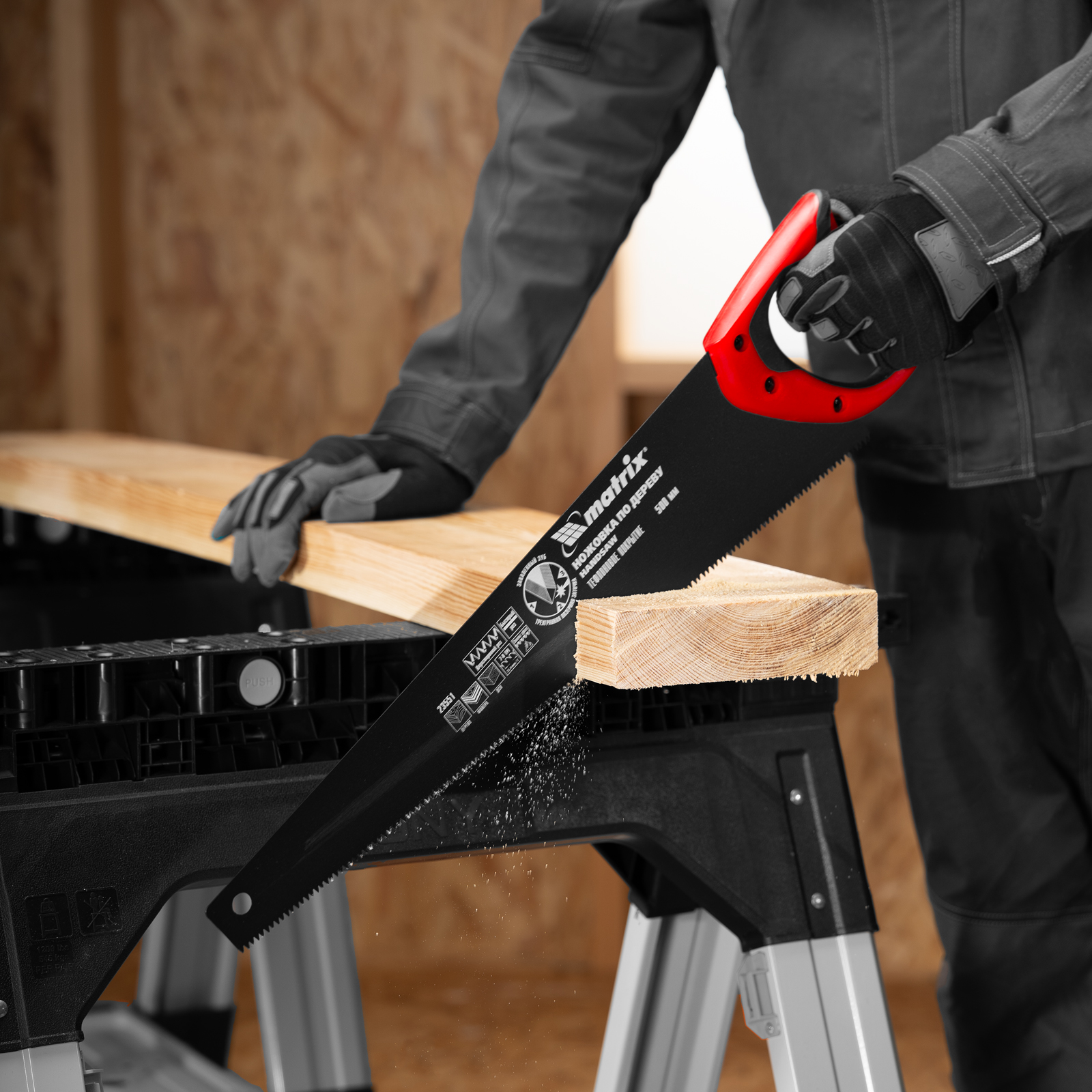Ножовка по дереву Matrix 23551 с полотном длиной 500 мм, с калеными зубьями с шагом 7-8 TPI и 3D-заточкой, с тефлоновым покрытием полотна и 2-компонентной рукояткой, пилит древесину, фанеру и ДСП. Подходит для продольного и поперечного пиления, используется для быстрой распиловки заготовок. Трехгранная заточка зубьев обеспечивает инструменту повышенную производительность. Ножовка будет полезна столяру, плотнику, а также пригодится в домашнем хозяйстве.