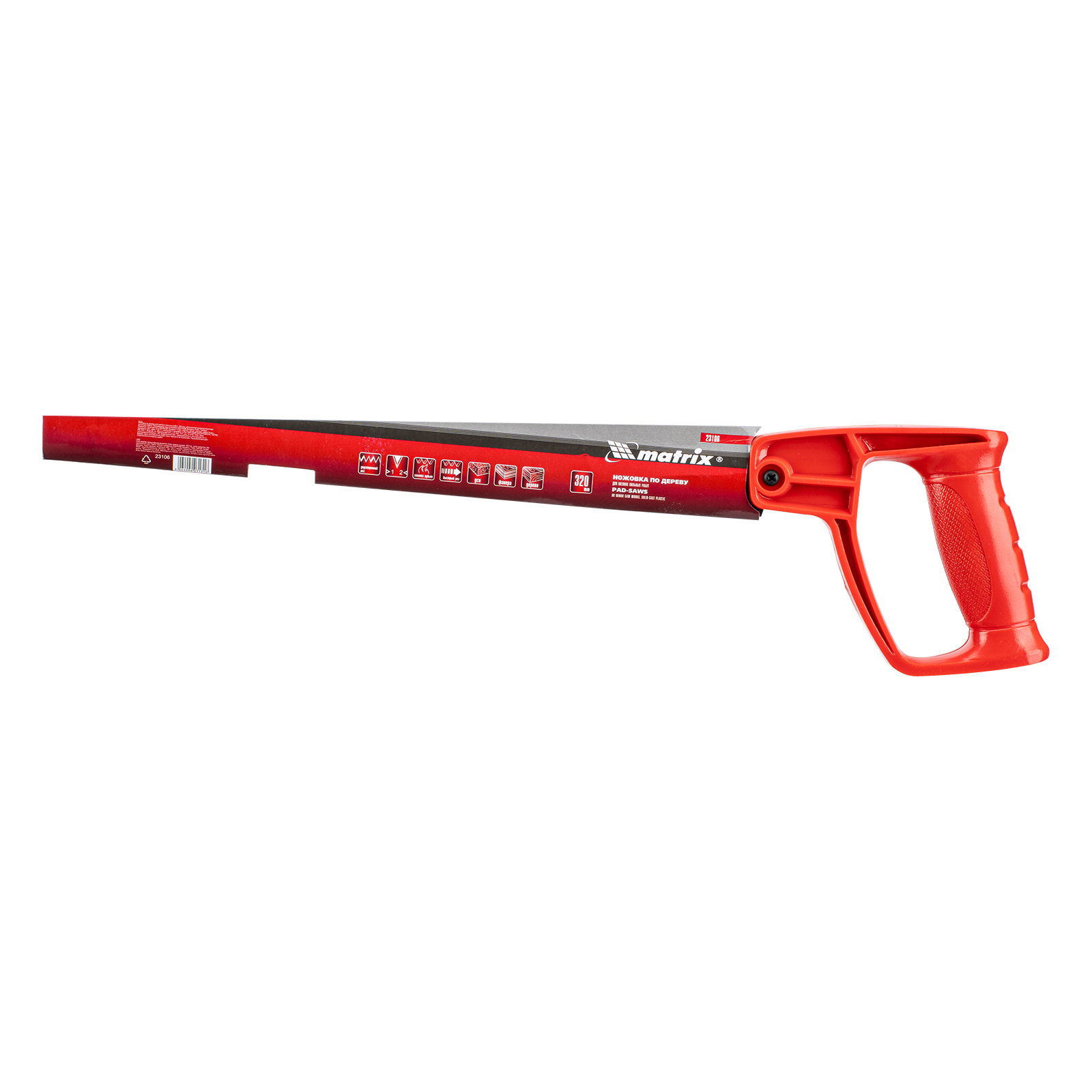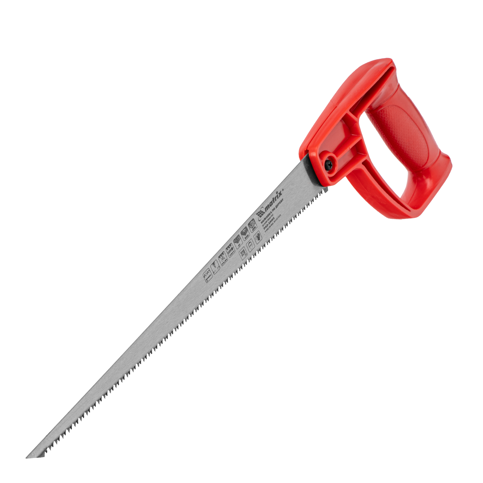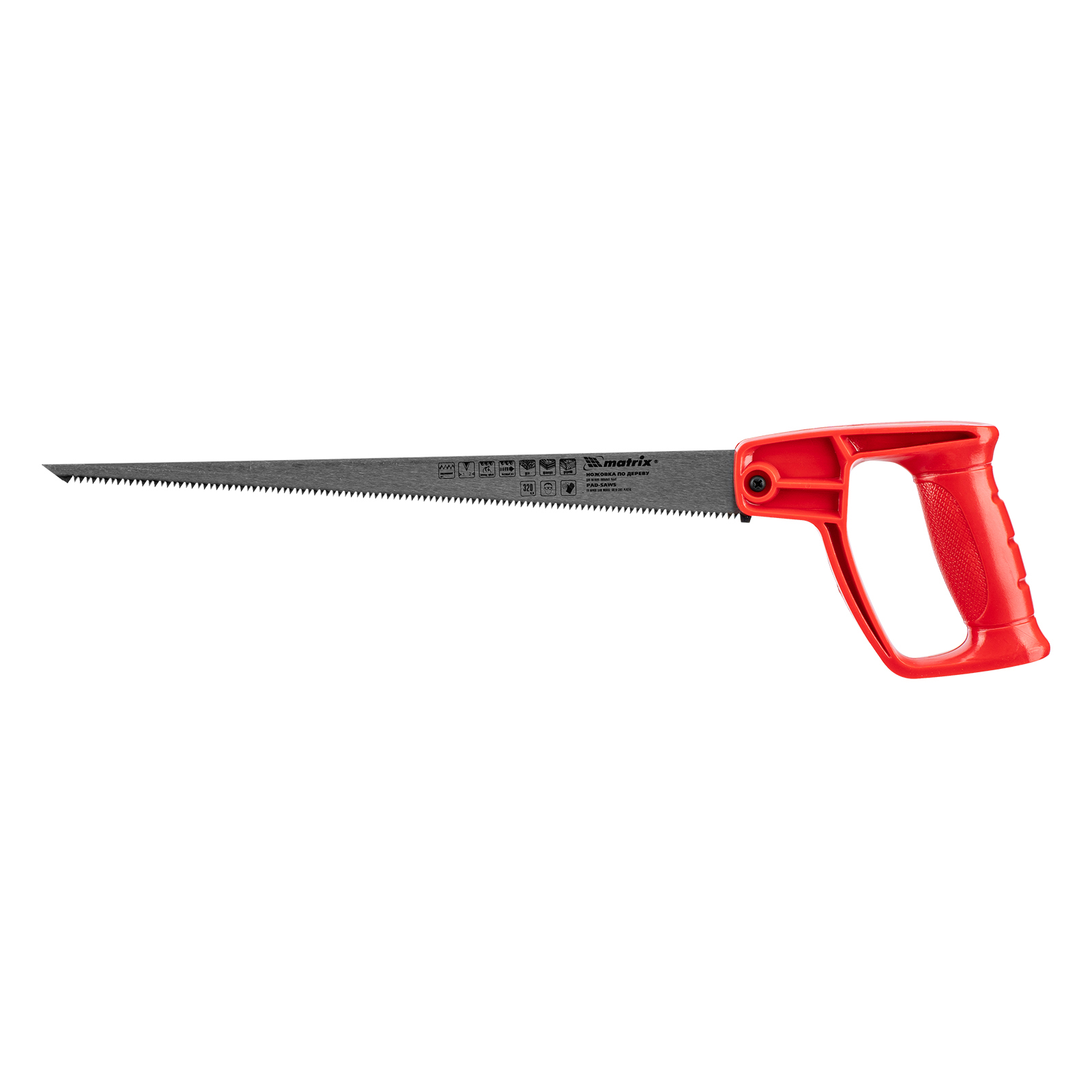 Ножовка по дереву Matrix 23106 с полотном длиной 320 мм и цельнолитой однокомпонентной рукояткой, предназначена для мелких пильных работ и используется в столярном деле. Зубья с двухгранной заточкой имеют шаг 8 TPI, что обеспечивает быстрый рез. Если режущая кромка затупится, ее можно переточить. Ножовкой пилят древесину, фанеру и ДСП.
