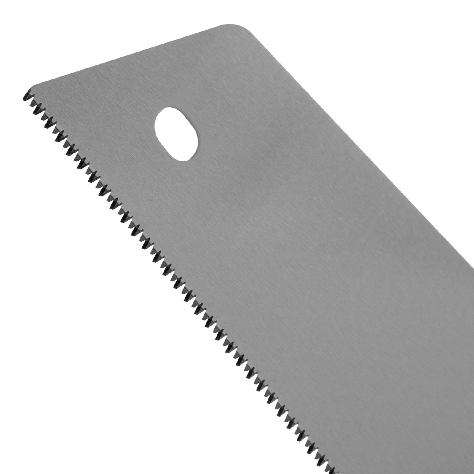 Ножовка по дереву Gross PIRANHA 24117 с усиленным трапециевидным полотном длиной 500 мм, калеными зубьями с 3D-заточкой и шагом 11-12 TPI, с двухкомпонентной рукояткой, используется для выполнения столярных работ. Ей пилят древесину различных пород, МДФ, ДСП, ДВП, ламинат, а также пенополистирол, полиуретан и другие синтетические материалы. Ножовка подходит для продольного и поперечного пиления. Благодаря мелким зубьям с шагом 11-12 TPI выполняет точный и чистый рез. Инструмент рекомендован для профессионального применения, но может использоваться и в быту.