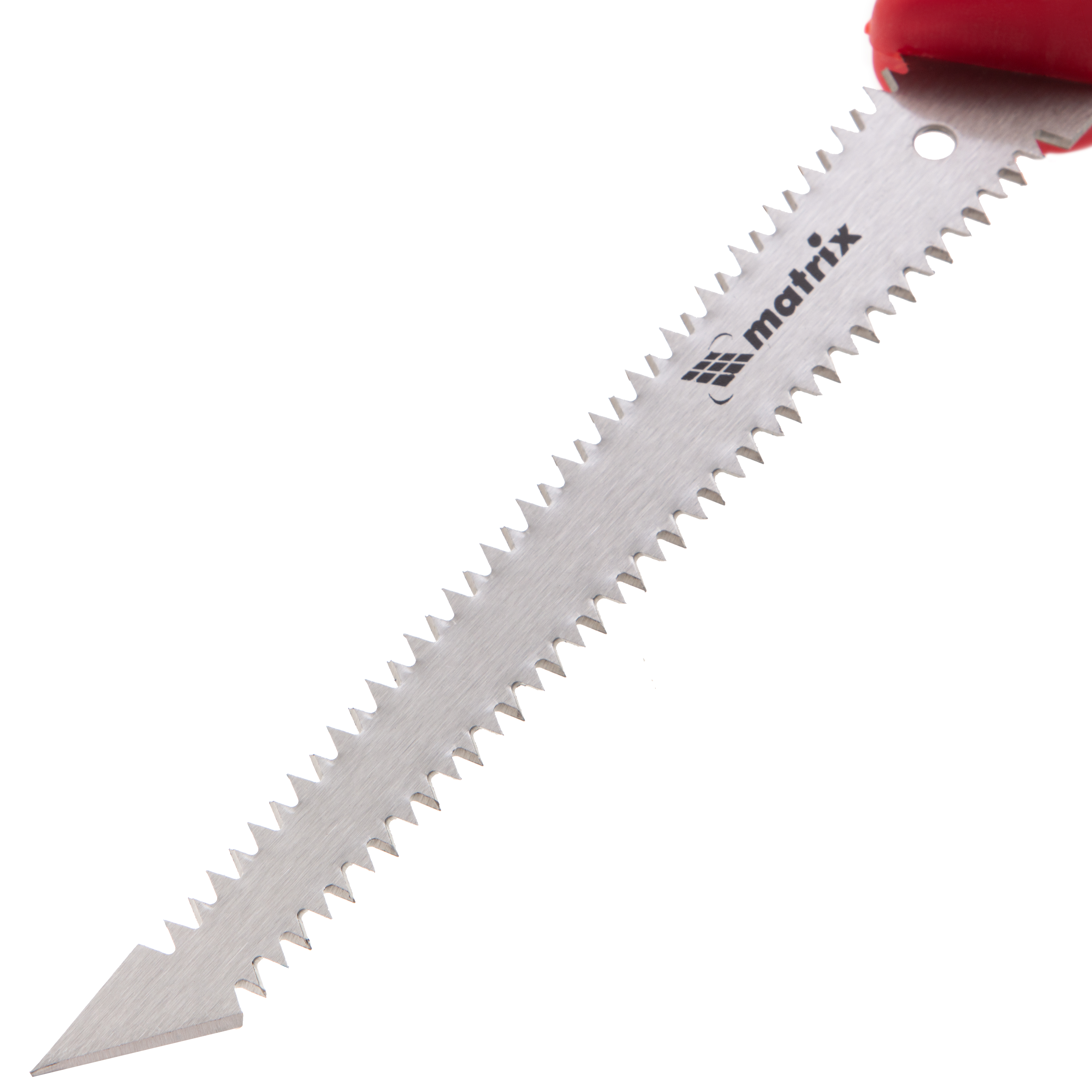 - Прочность и износостойкость — полотно изготовлено из пружинной стали 65Mn, зубья твердостью 50-55 HRC долго сохраняют режущую способность.