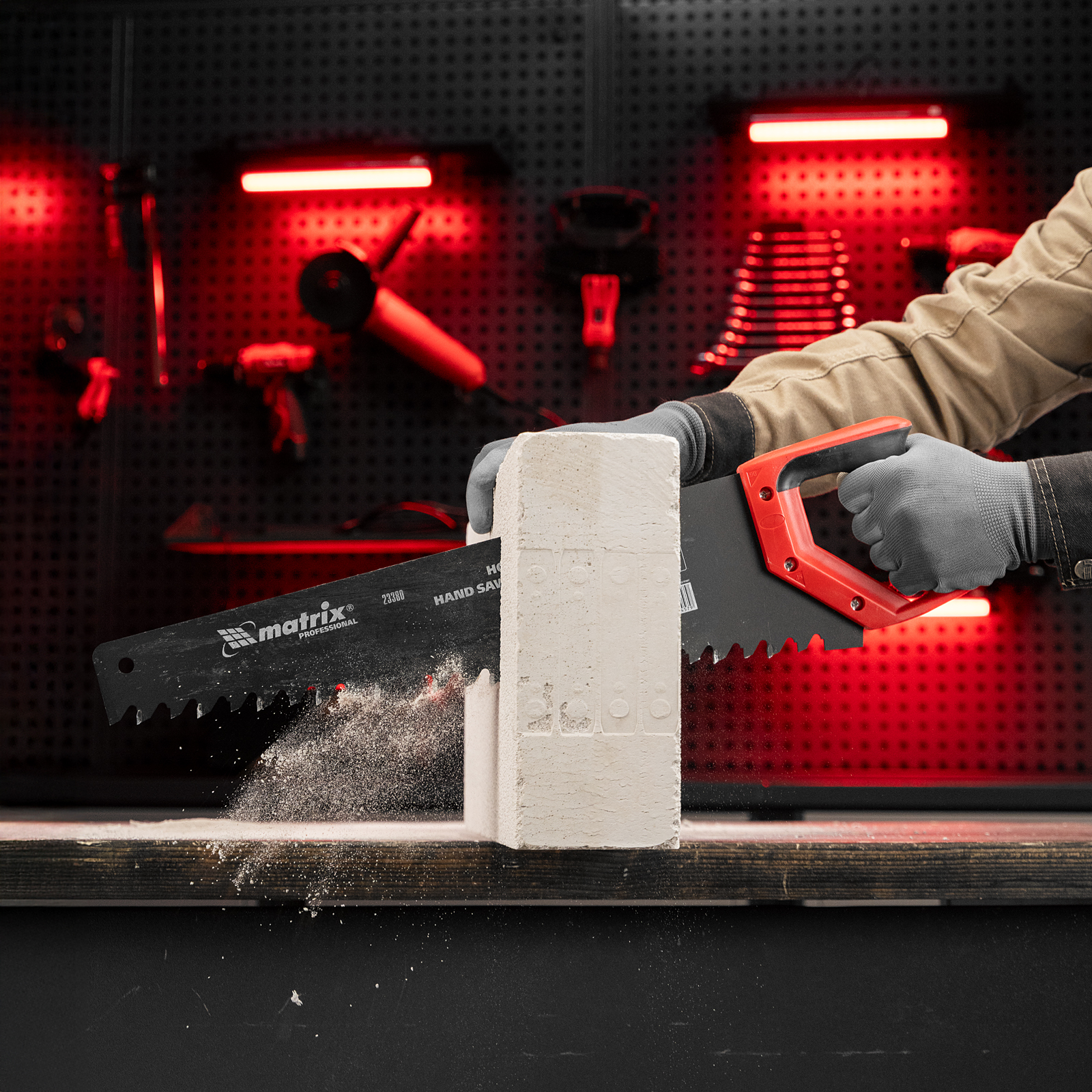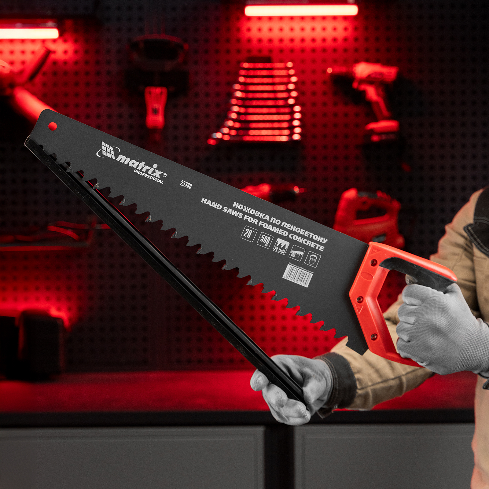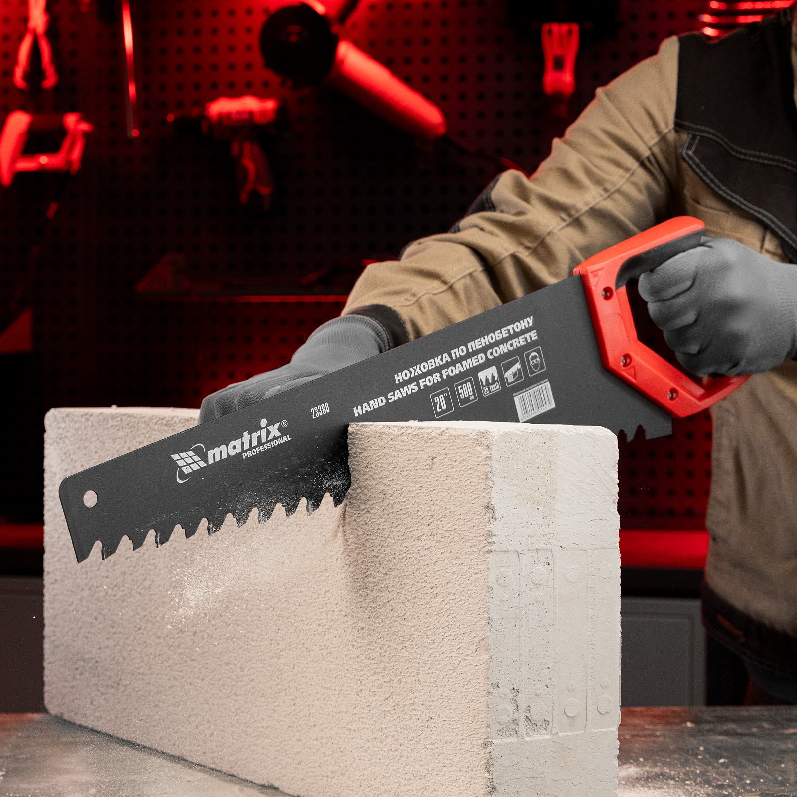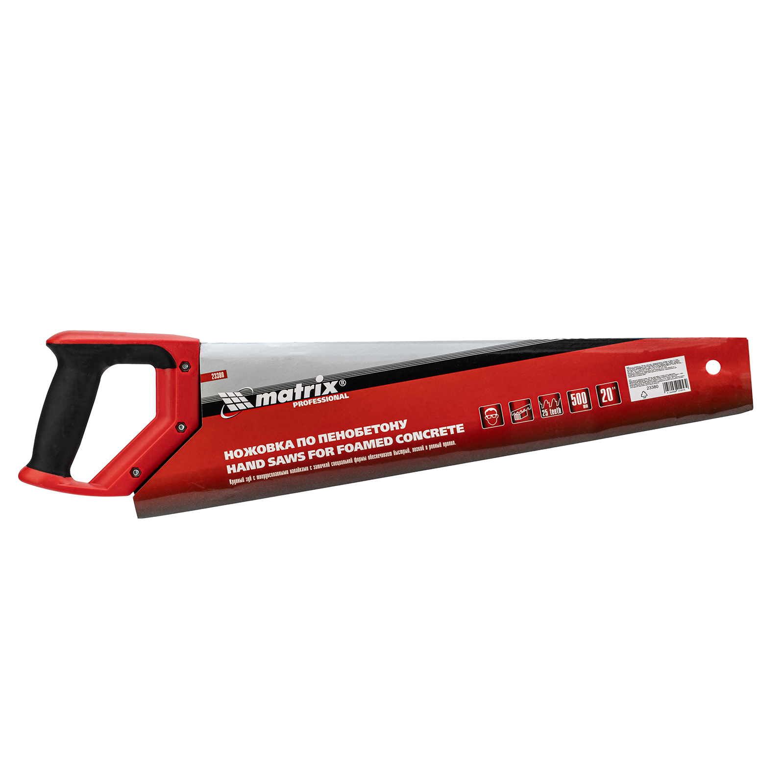 Ножовка по пенобетону Matrix 23380 с полотном длиной 500 мм, с защитным покрытием, с твердосплавными напайками на зубьях и 2-компонентной рукояткой, предназначена для распиливания пеноблоков. Зубья с шагом 38 мм имеют напайки из карбида вольфрама, заточенные под специальным углом, что обеспечивает эффективность работы с твердым материалом. Ножовка используется во время строительства различных сооружений.