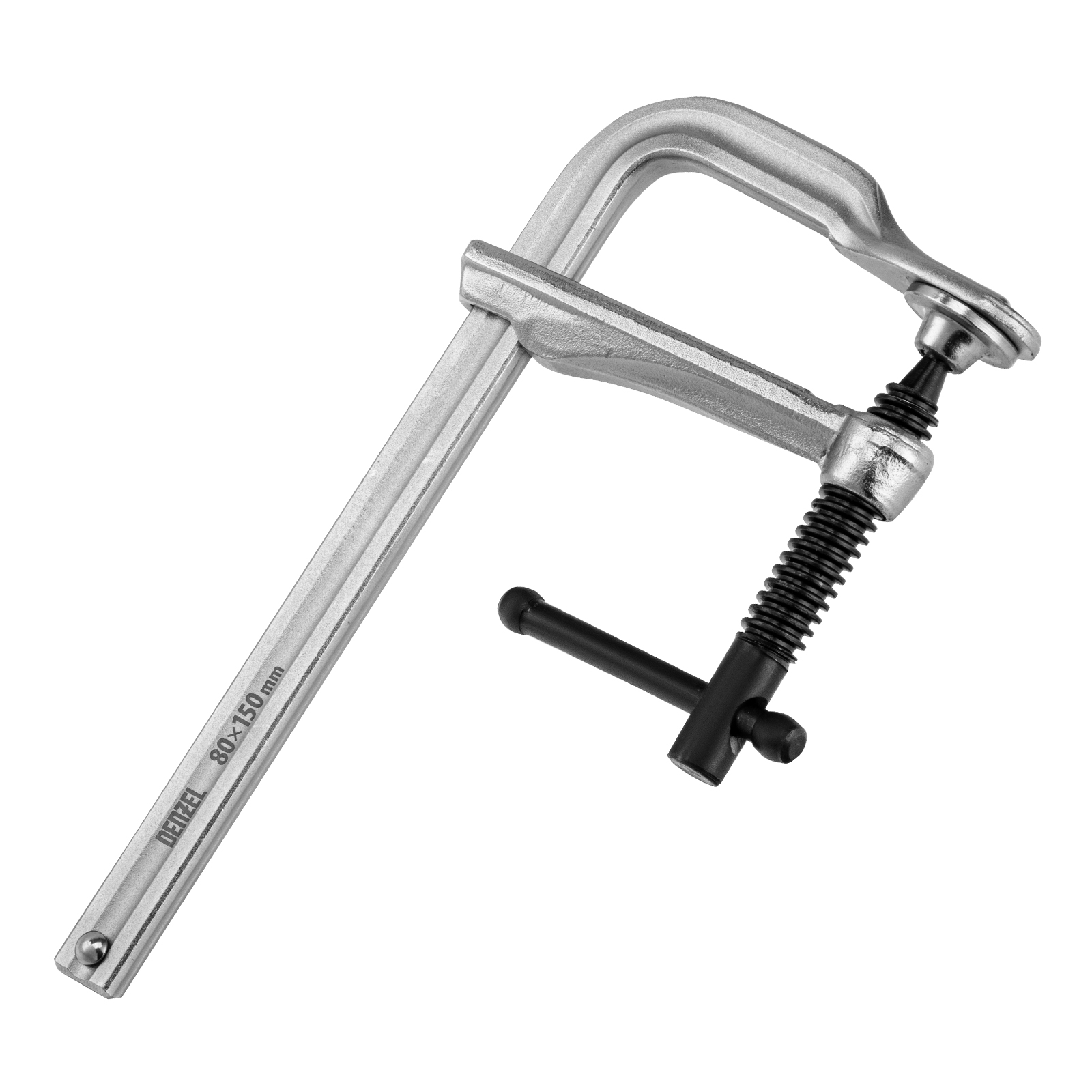 Кованая F-образная струбцина Denzel 20464 с глубиной зажима 80 мм, усиленная, предназначена для фиксации деталей шириной до 150 мм и материалов при проведении слесарных, столярных и сварочных работ. Тавровый профиль обеспечивает устойчивость конструкции к изгибу, что позволяет фиксировать детали со значительным усилием. Струбцина подходит для профессионального применения.
