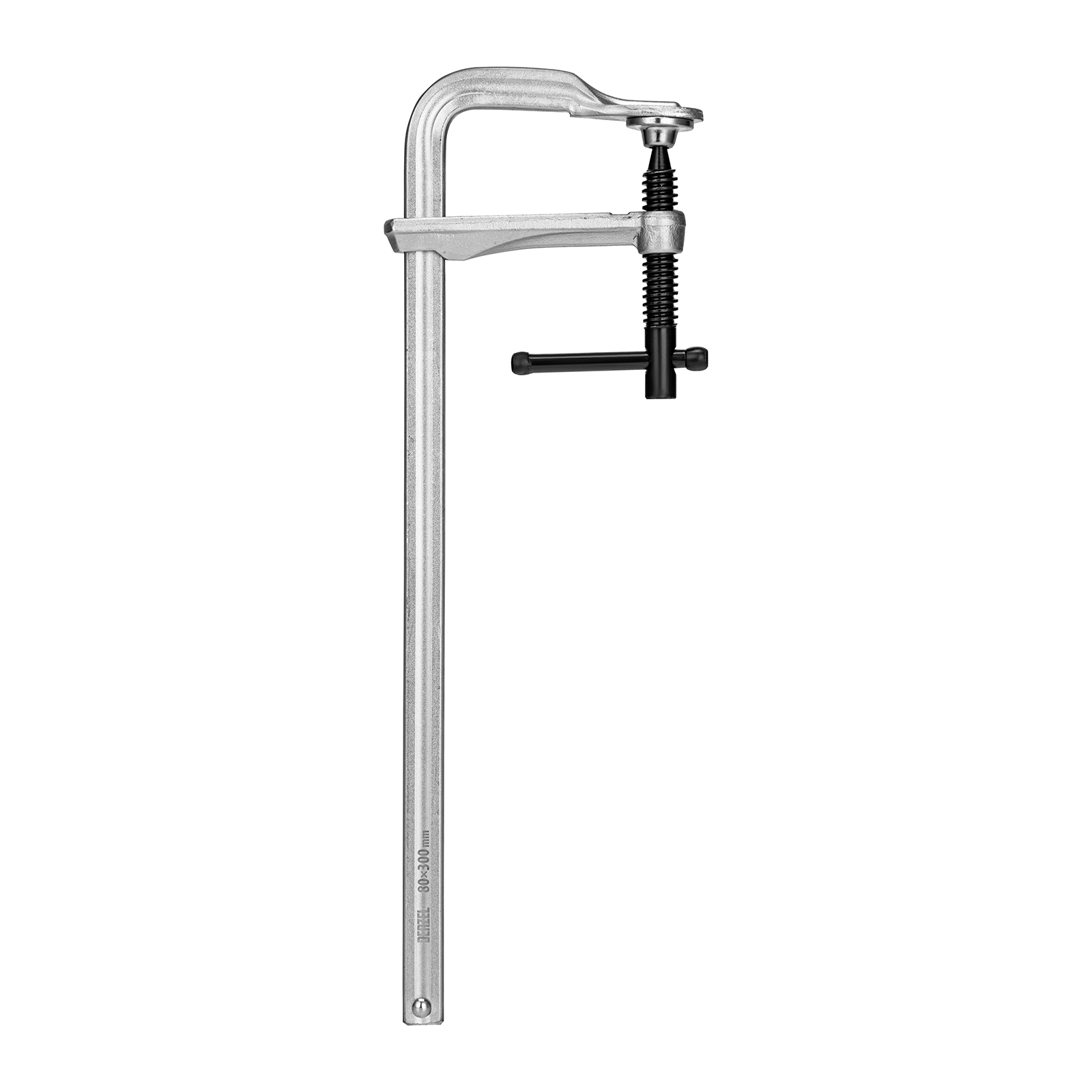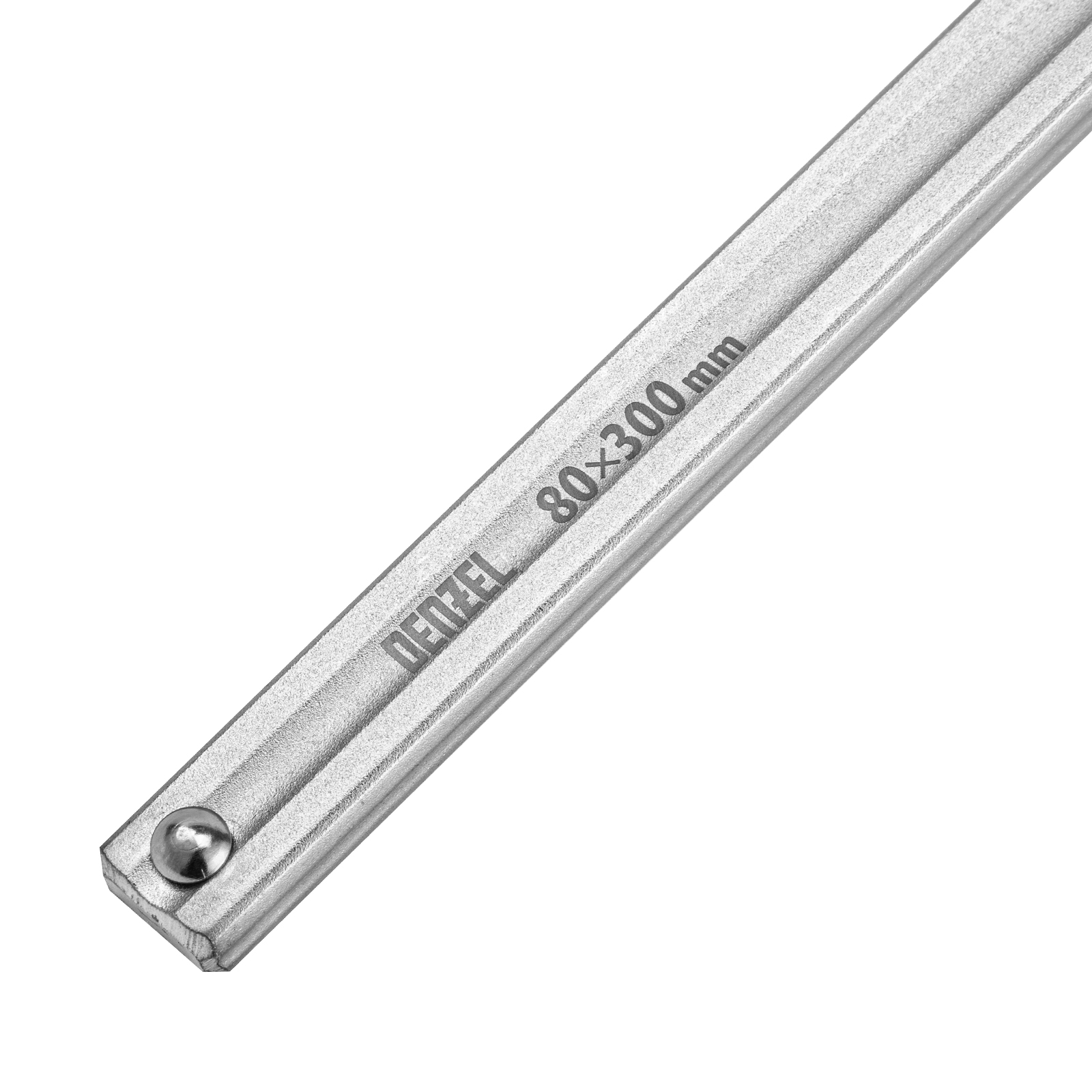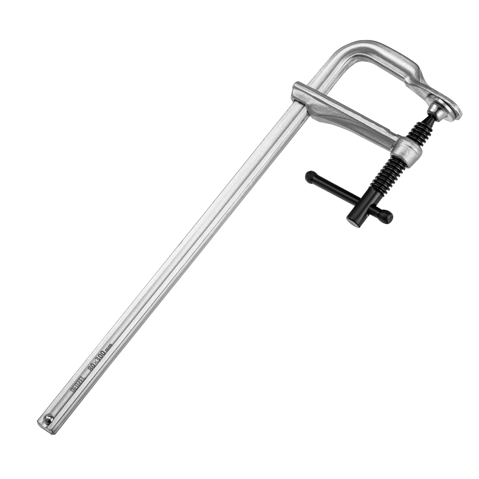 Кованая F-образная струбцина Denzel 20466 с глубиной зажима 80 мм, усиленная, предназначена для фиксации деталей шириной до 300 мм и материалов при проведении слесарных, столярных и сварочных работ. Тавровый профиль обеспечивает устойчивость конструкции к изгибу, что позволяет фиксировать детали со значительным усилием. Струбцина подходит для профессионального применения.