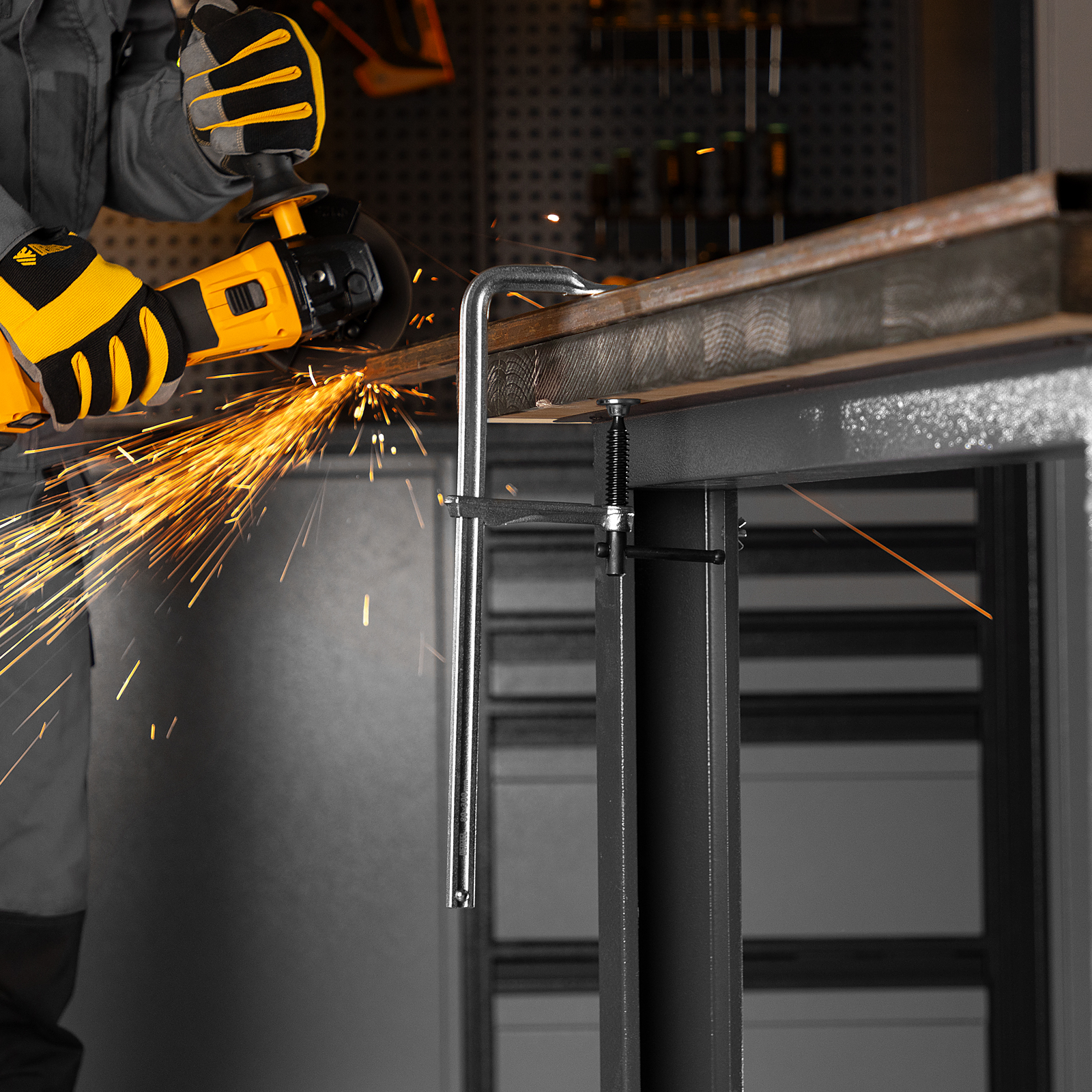 - Хромированное покрытие надежно защищает струбцину от коррозии.
