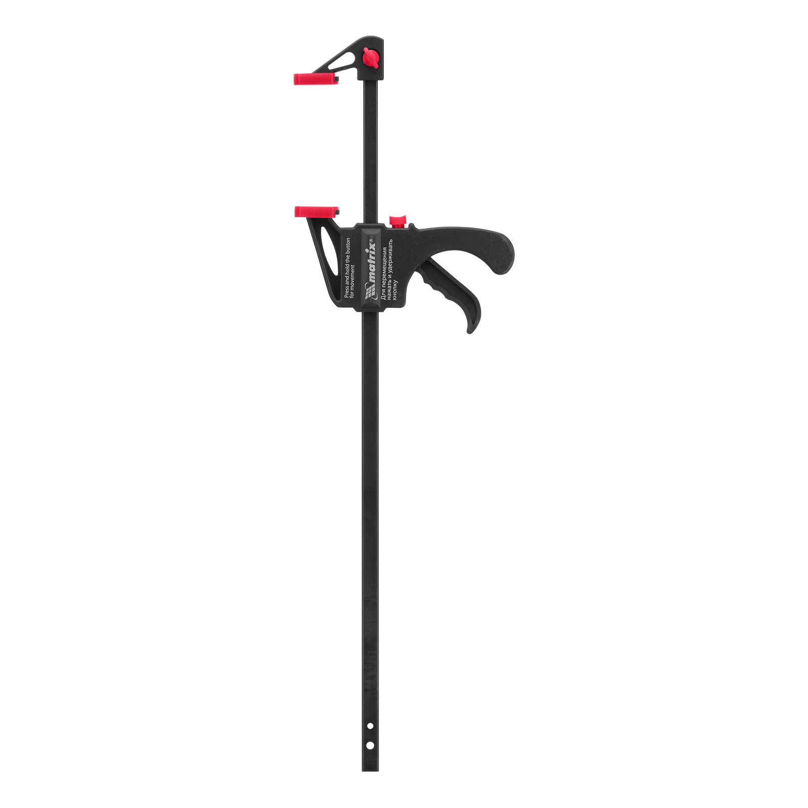 Универсальная F-образная быстрозажимная струбцина Matrix 20573 размером 300 х 415 х 45 мм, в пластиковом корпусе, используется в столярном деле. Позволяет быстро и надежно фиксировать заготовки с целью для последующего склеивания, сверления, шлифовки, пиления и другой обработки. Компактный размер упрощает работу с инструментом.