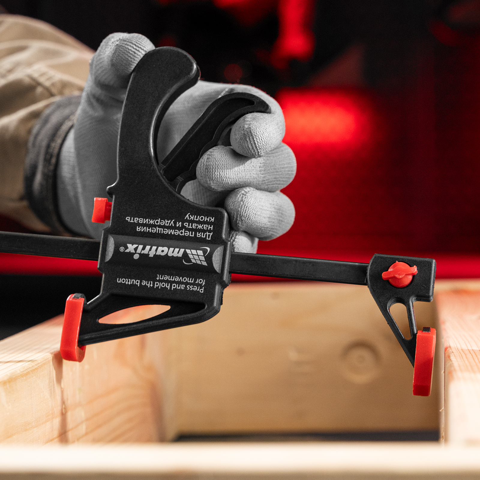 Универсальная F-образная быстрозажимная струбцина Matrix 20574 размером 450 х 565 х 45 мм, в пластиковом корпусе, используется в столярном деле. Позволяет быстро и надежно фиксировать заготовки с целью для последующего склеивания, сверления, шлифовки, пиления и другой обработки. Компактный размер упрощает работу с инструментом.