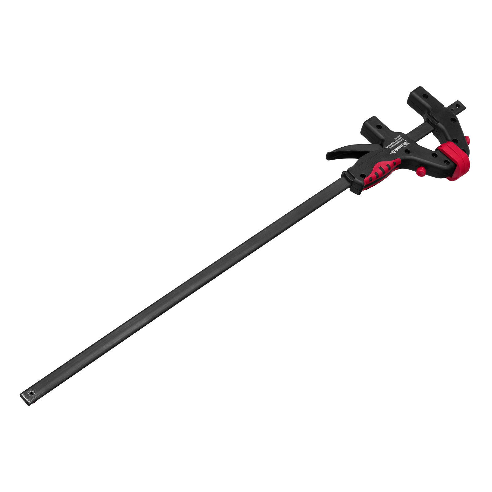 Универсальная F-образная быстрозажимная струбцина Matrix 20546 размером 600 х 915 х 90 мм, в пластиковом корпусе, используется в столярном деле. Позволяет быстро фиксировать заготовки с целью их соединения или обработки — склеивания, сверления, шлифовки, пиления и других видов работ. Подвижная губка перемещается вдоль штанги при помощи пластинчатого механизма, а фиксатор препятствует разжиманию струбцины. Массивная конструкция обеспечивает надежность инструмента.