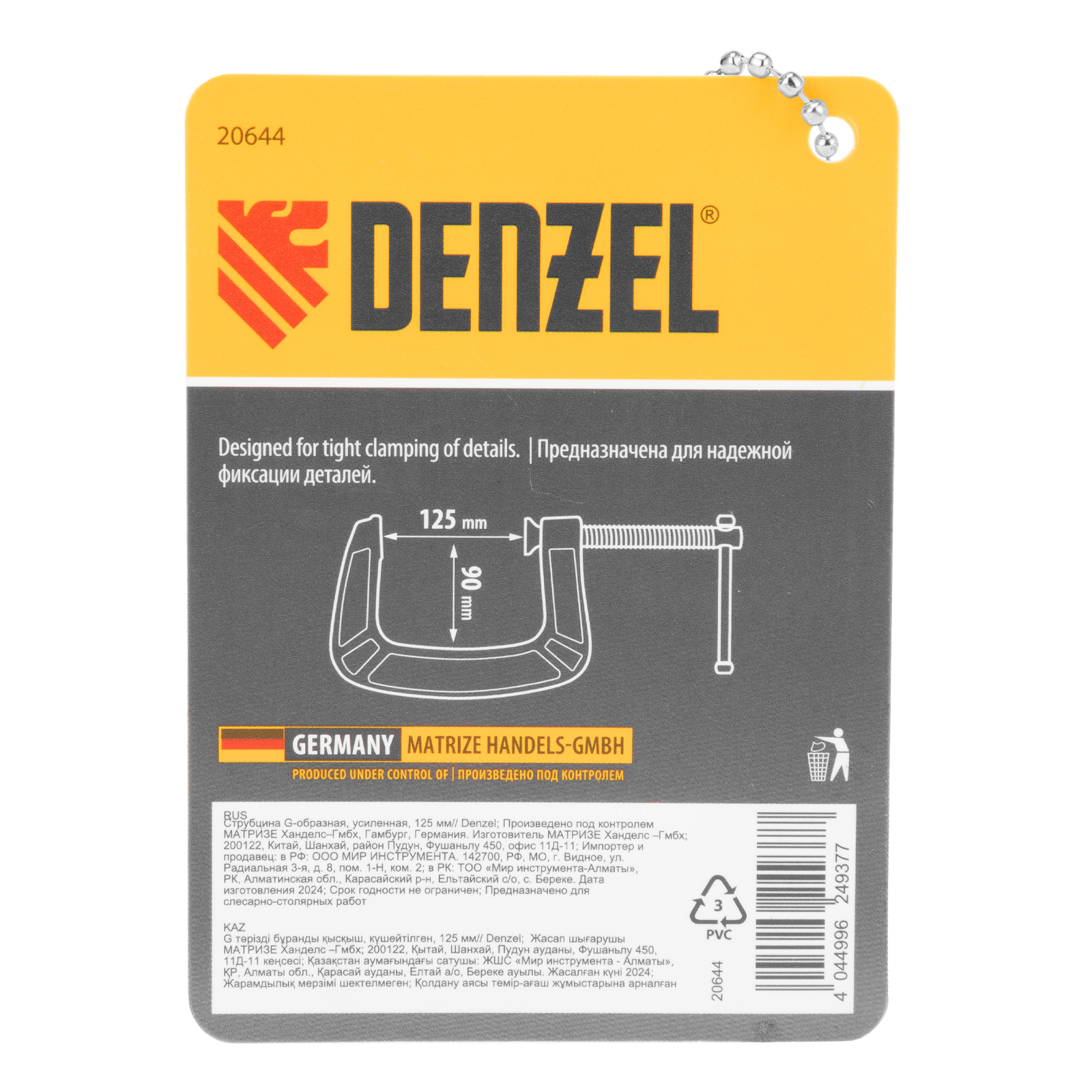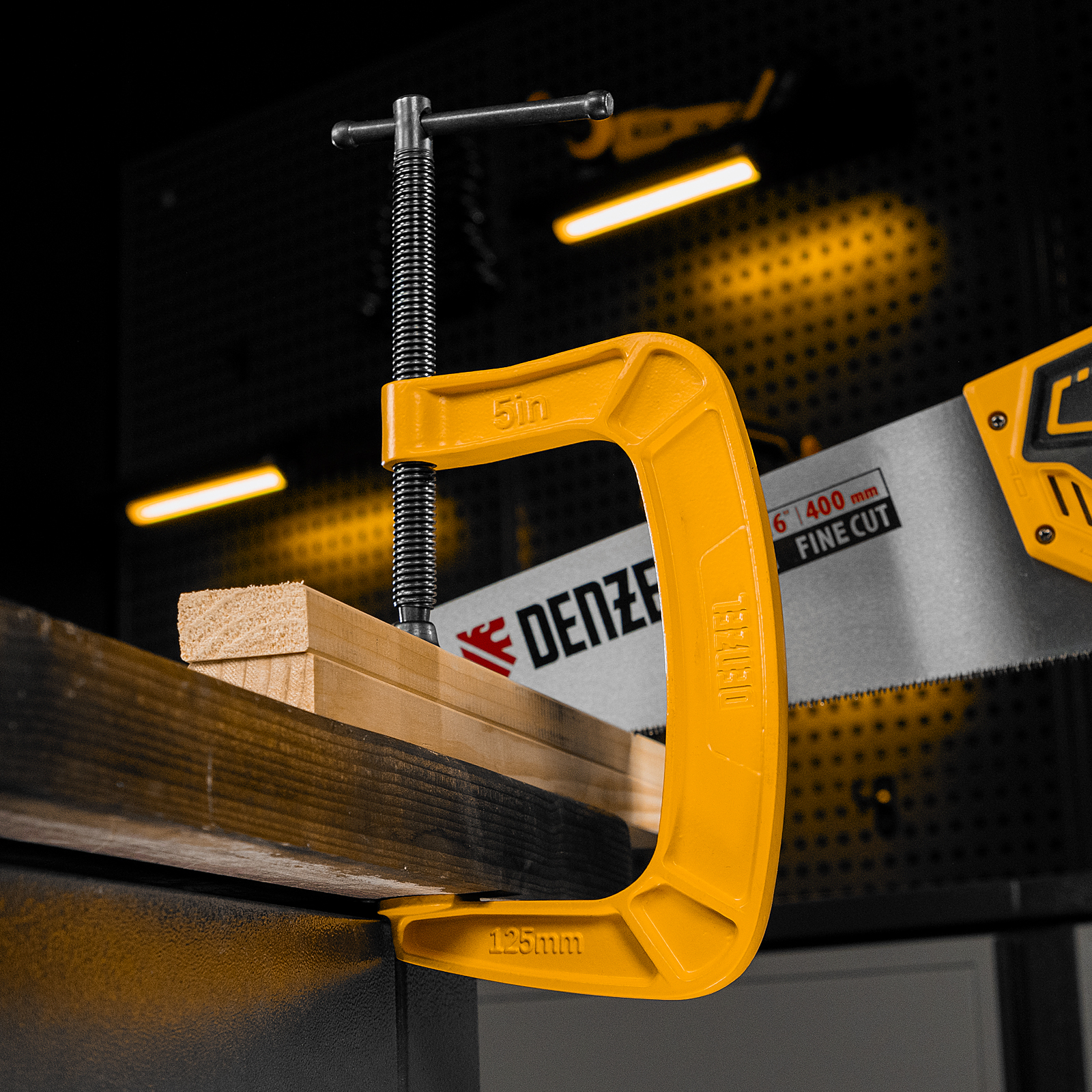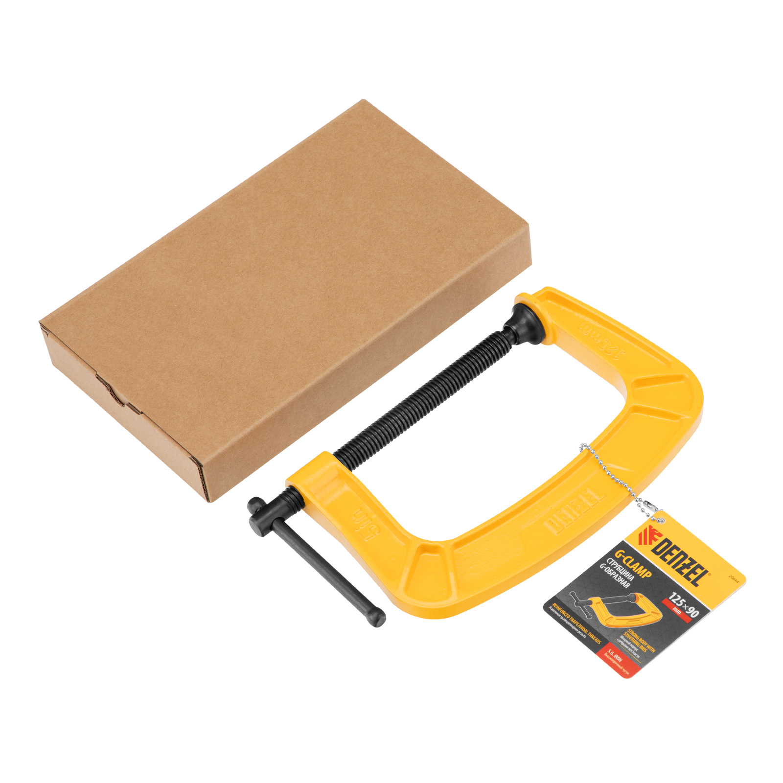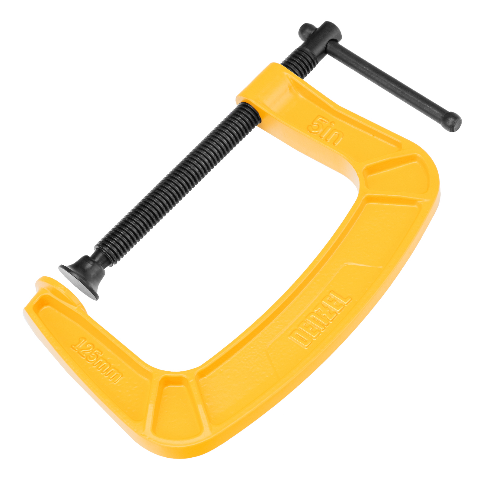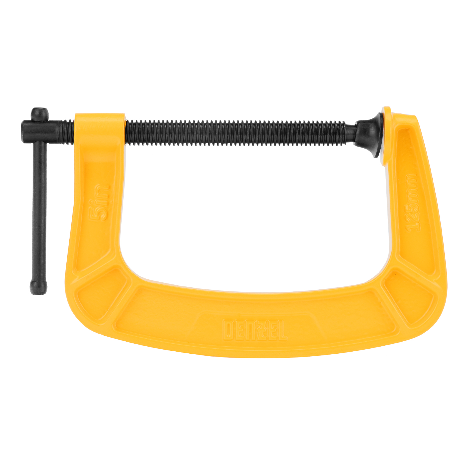 G-образная струбцина Denzel 20644 с максимальной шириной зажима 125 мм используется для фиксации заготовок или закрепления их на верстаке, станке или между собой. Позволяет склеивать детали, а также сверлить их, шлифовать, опиливать и проводить другие работы. Может использоваться во время выполнения сварочных работ. Винт с трапециевидной резьбой обеспечивает надежную фиксацию предметов. Струбцина применяется в слесарном и столярном деле, будет полезна также домашнем хозяйстве.
