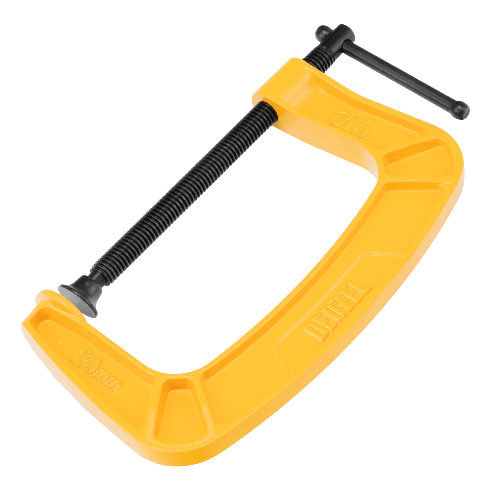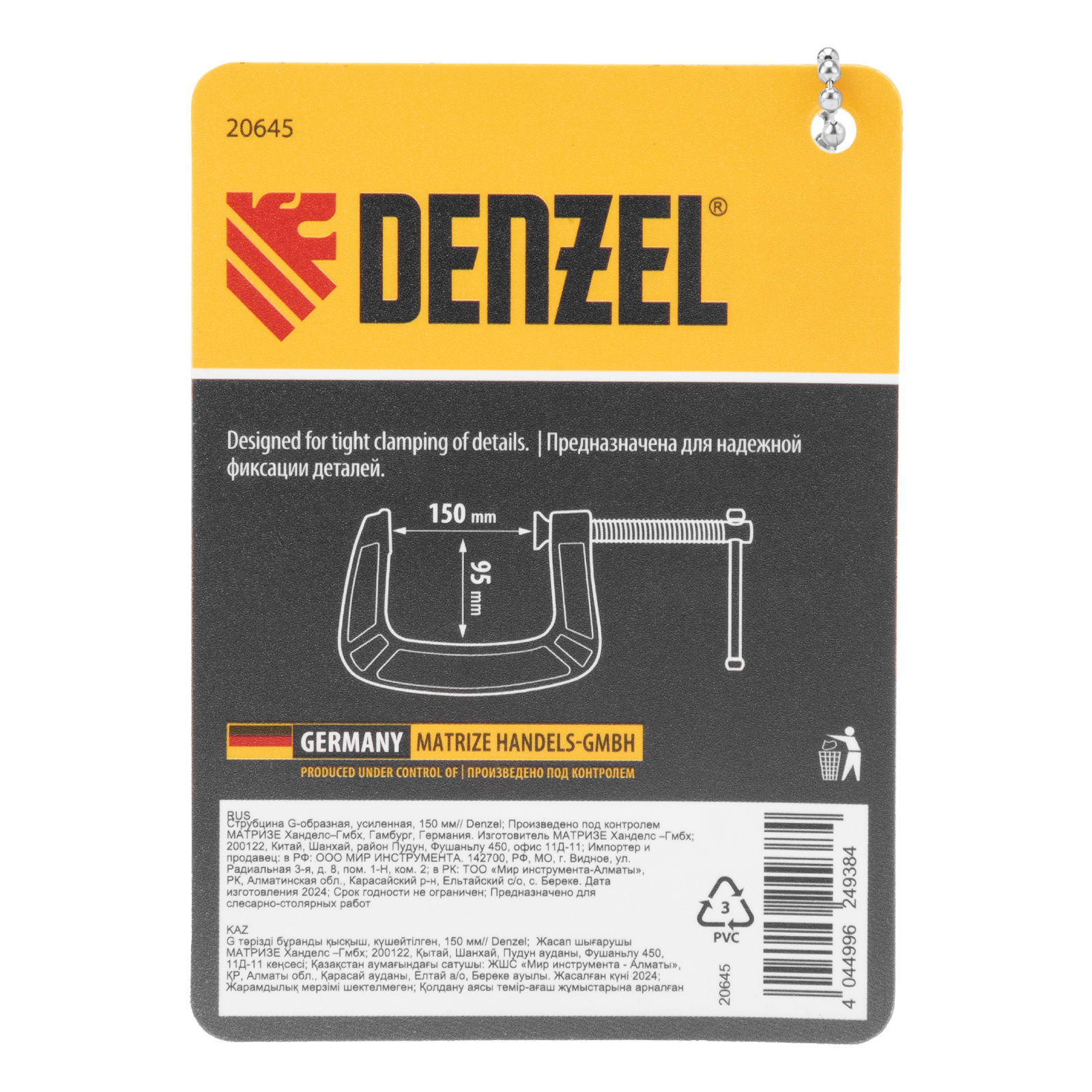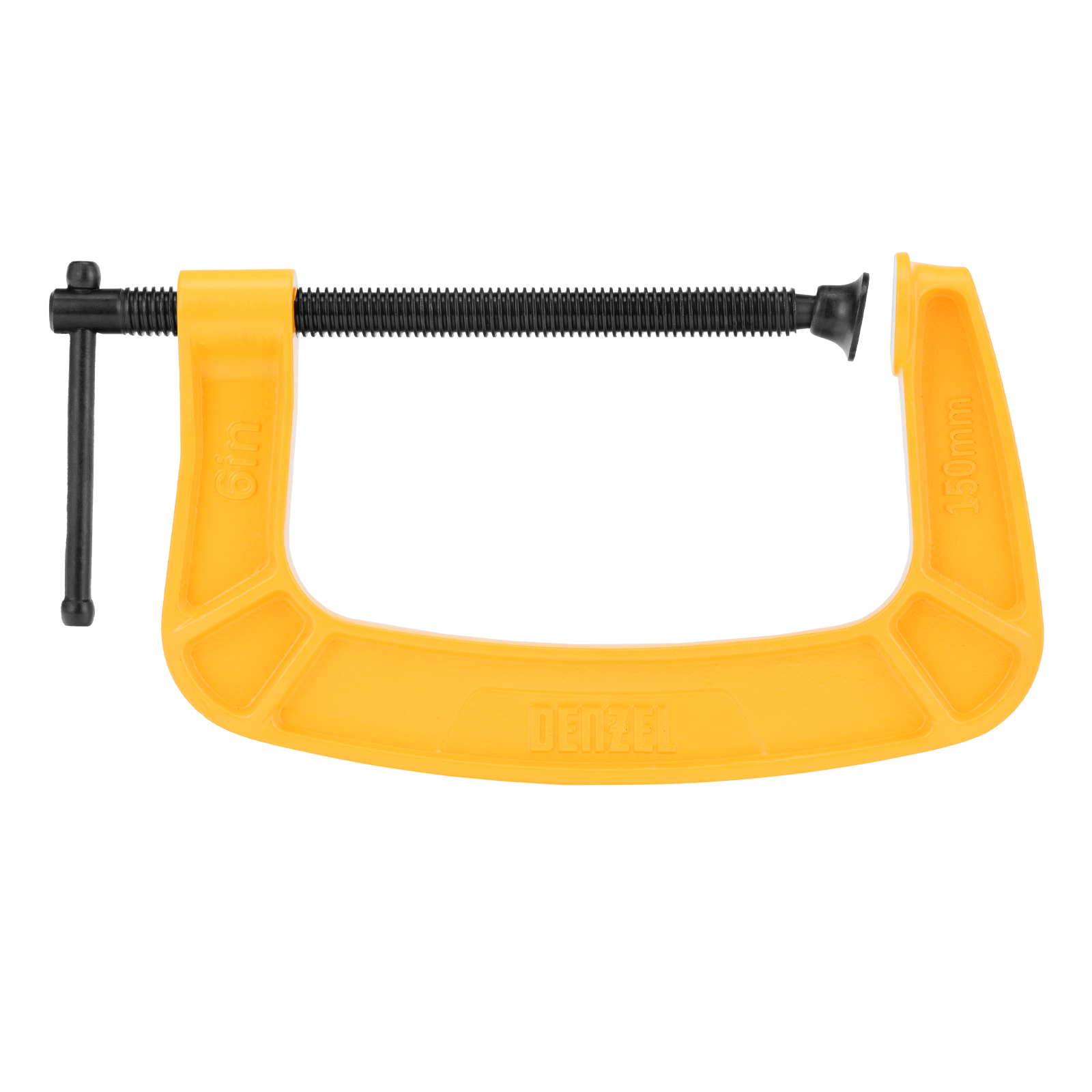 G-образная струбцина Denzel 20645 с максимальной шириной зажима 150 мм используется для фиксации заготовок или закрепления их на верстаке, станке или между собой. Позволяет склеивать детали, а также сверлить их, шлифовать, опиливать и проводить другие работы. Может использоваться во время выполнения сварочных работ. Винт с трапециевидной резьбой обеспечивает надежную фиксацию предметов. Струбцина применяется в слесарном и столярном деле, будет полезна также домашнем хозяйстве.