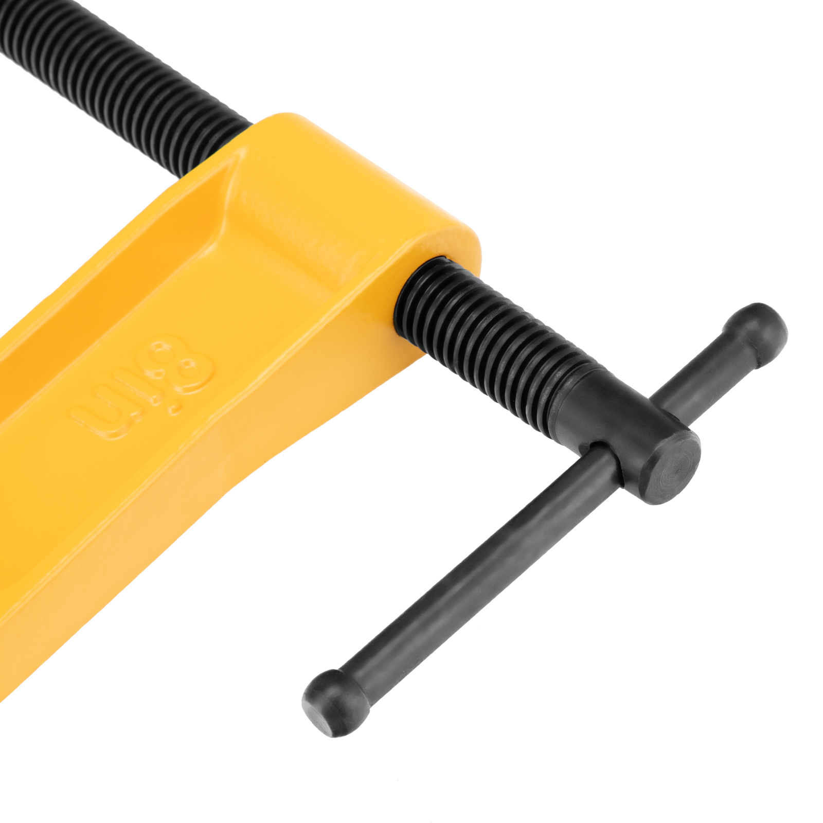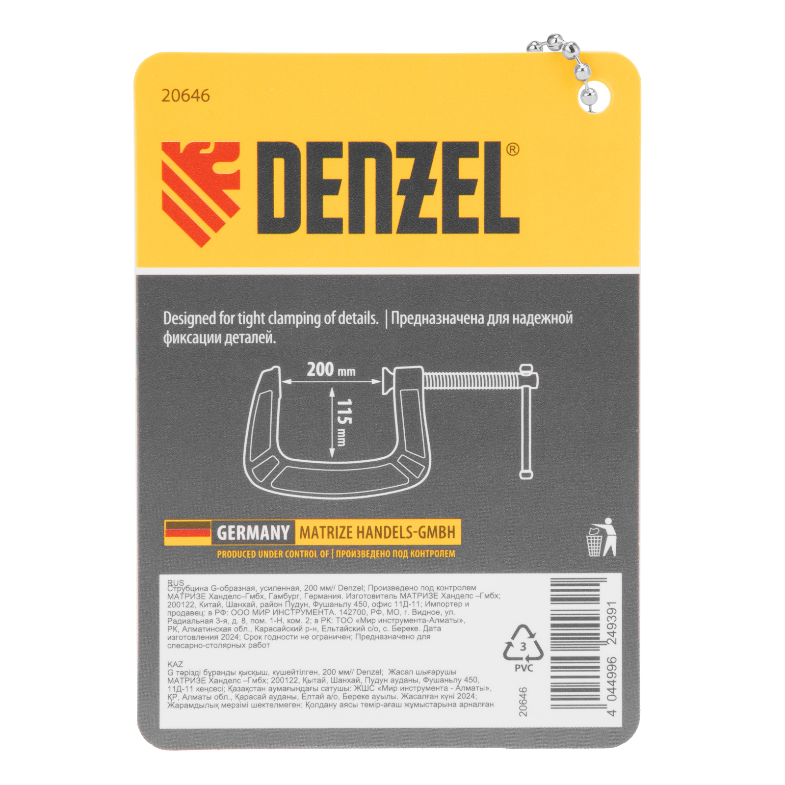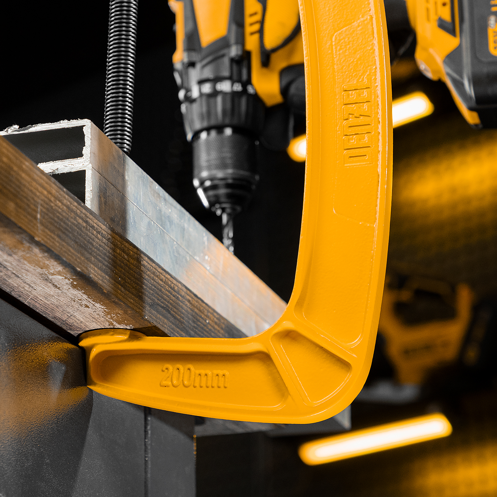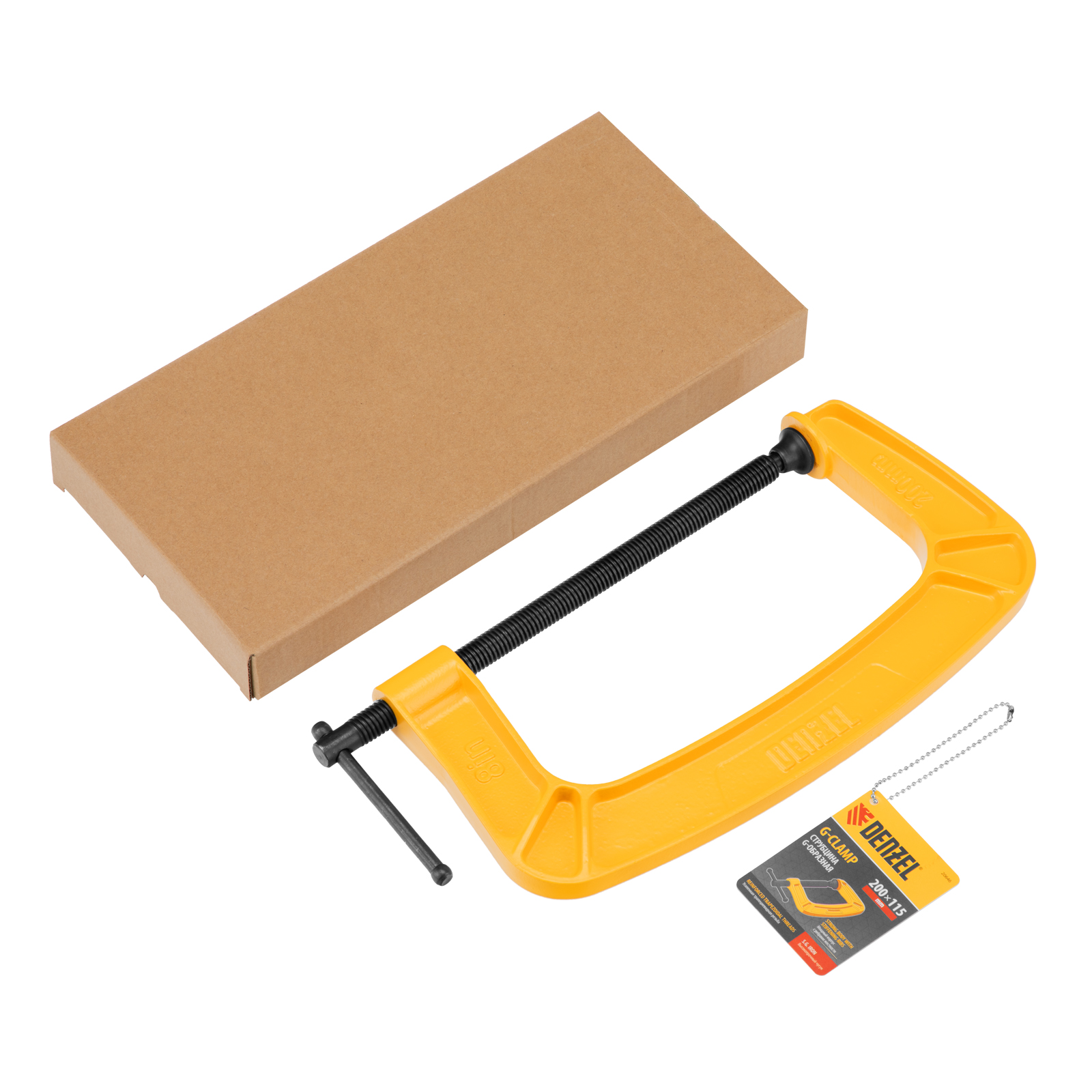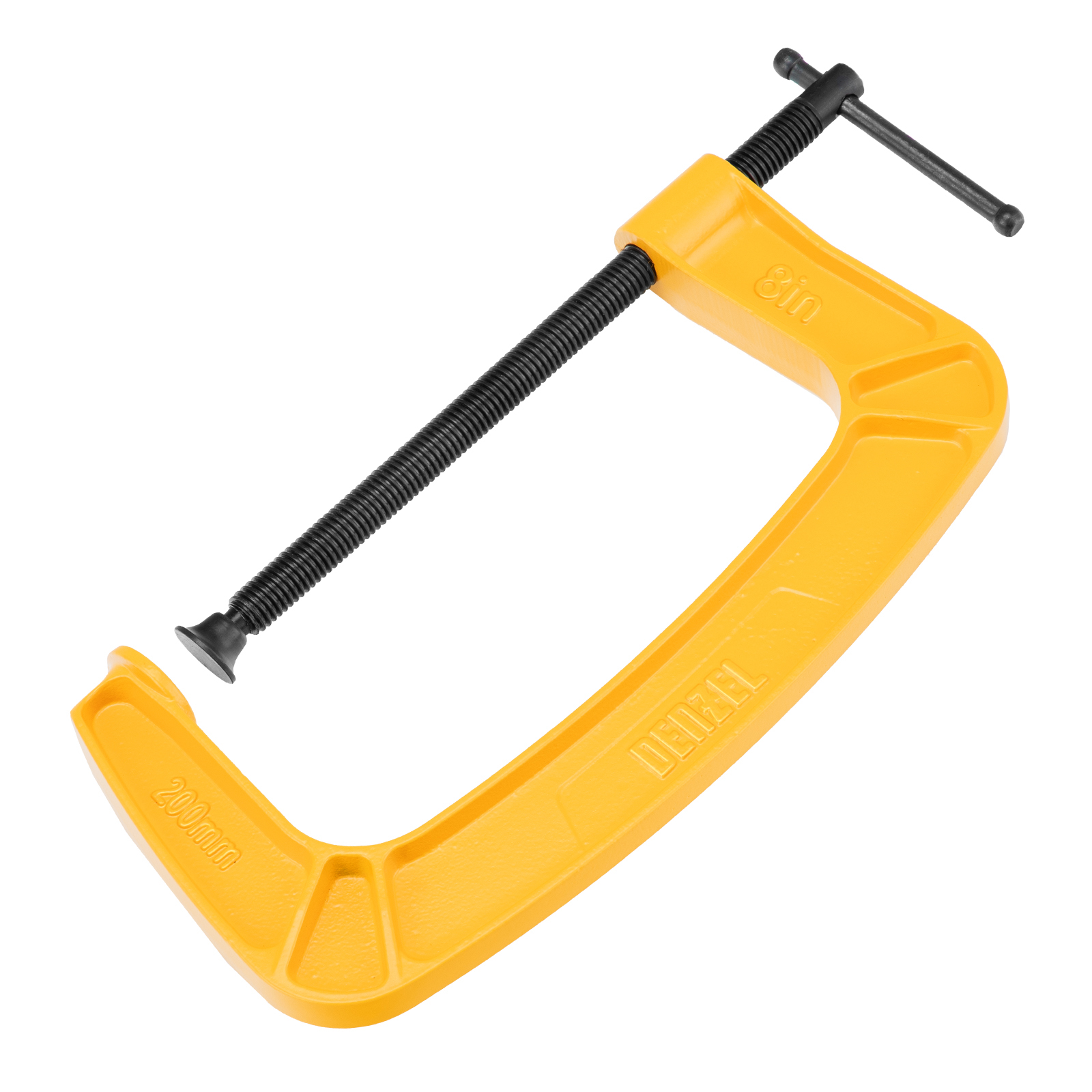G-образная струбцина Denzel 20646 с максимальной шириной зажима 200 мм используется для фиксации заготовок или закрепления их на верстаке, станке или между собой. Позволяет склеивать детали, а также сверлить их, шлифовать, опиливать и проводить другие работы. Может использоваться во время выполнения сварочных работ. Винт с трапециевидной резьбой обеспечивает надежную фиксацию предметов. Струбцина применяется в слесарном и столярном деле, будет полезна также домашнем хозяйстве.