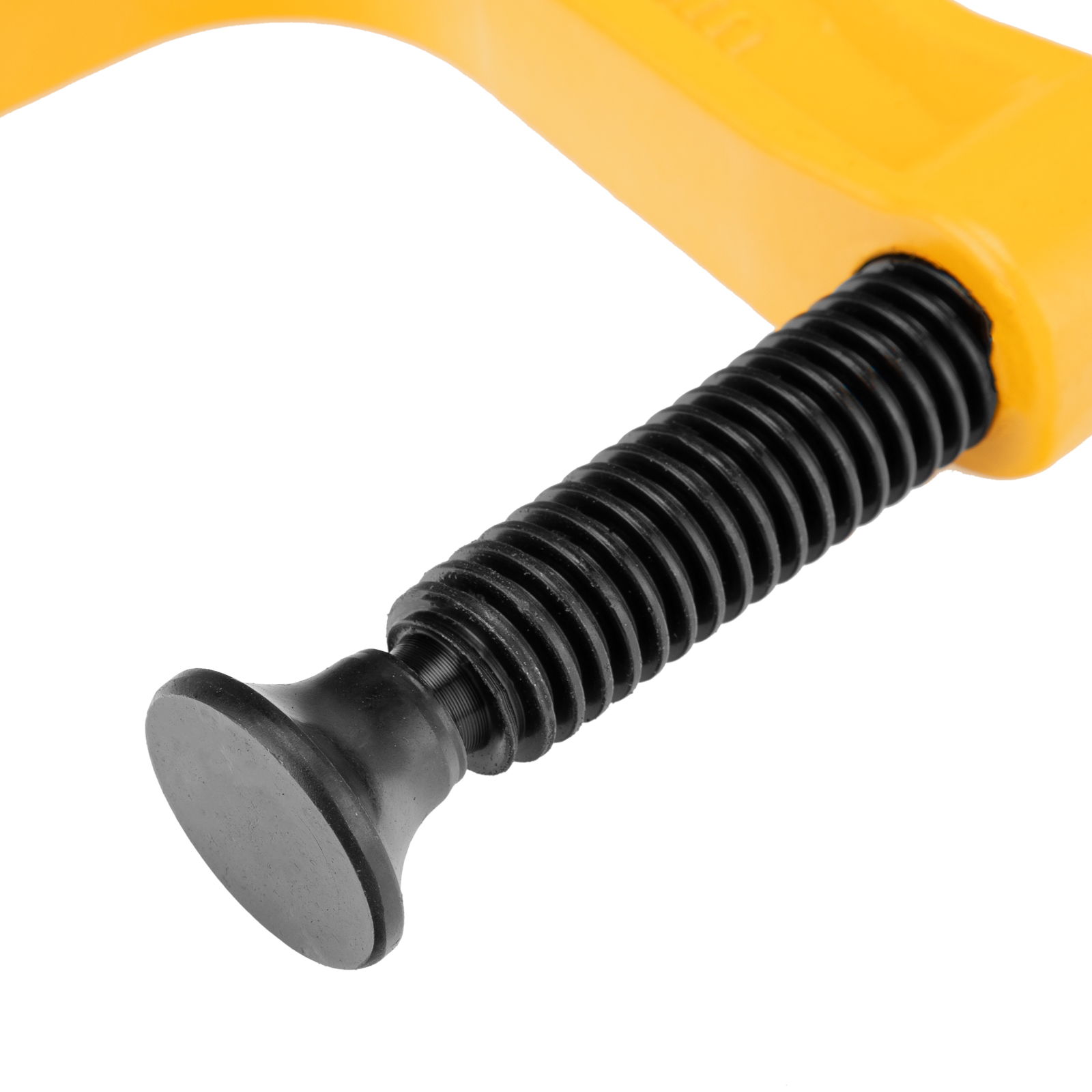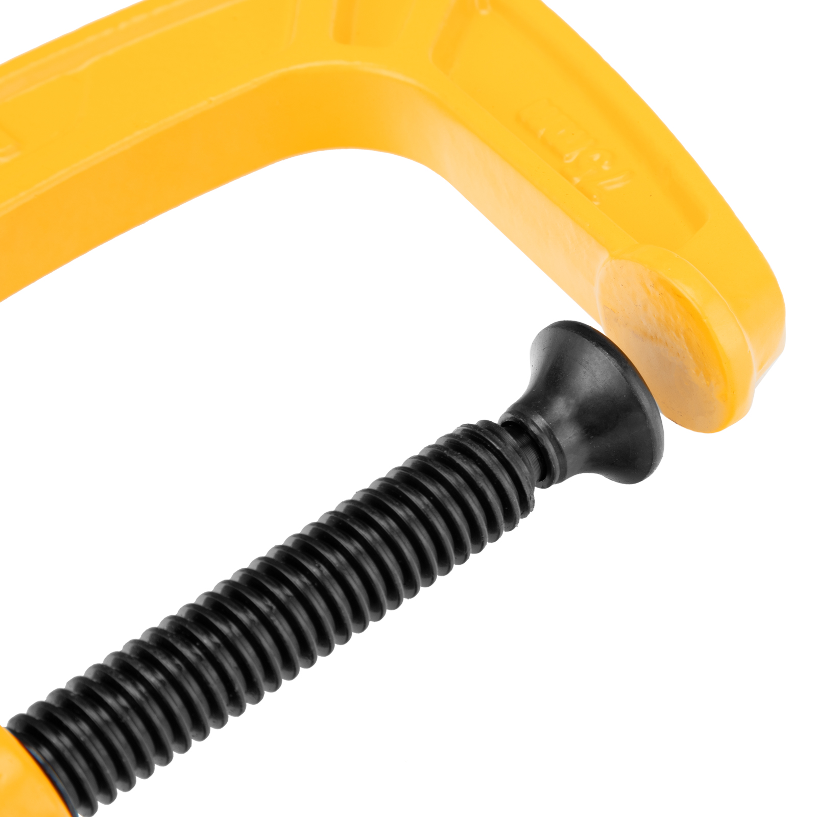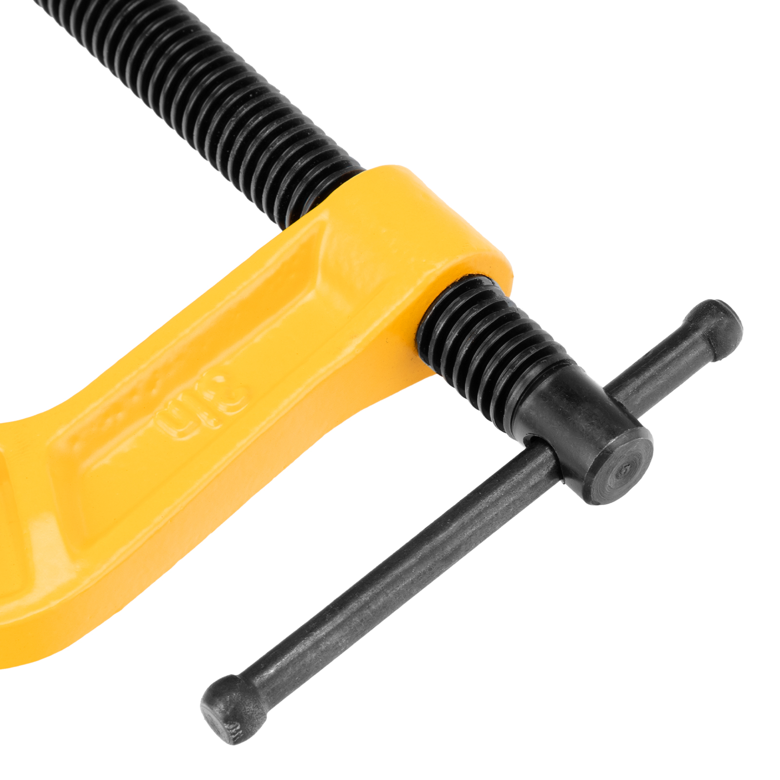 G-образная струбцина Denzel 20642 с максимальной шириной зажима 75 мм используется для фиксации заготовок или закрепления их на верстаке, станке или между собой. Позволяет склеивать детали, а также сверлить их, шлифовать, опиливать и проводить другие работы. Может использоваться во время выполнения сварочных работ. Винт с трапециевидной резьбой обеспечивает надежную фиксацию предметов. Струбцина применяется в слесарном и столярном деле, будет полезна также домашнем хозяйстве.